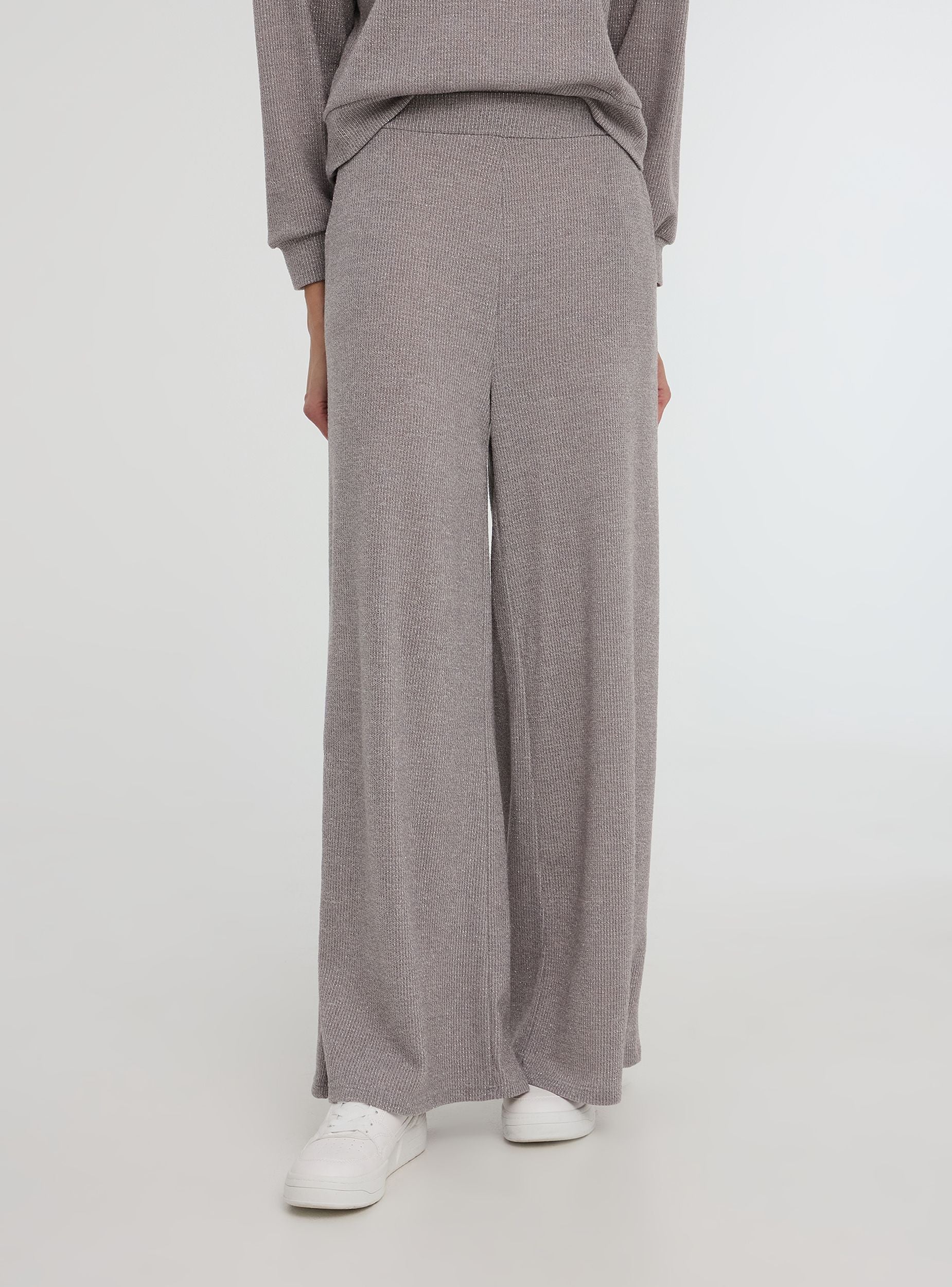 Pantaloni tricot pentru femei, caracterizați printr-un elegant efect strălucitor care conferă o luminozitate sofisticată culorii uni. Croiala wide leg, cu picior larg și drept, creează un look modern și confortabil, perfect pentru cei care doresc o piesă versatilă de asortat în diverse ocazii. Structura moale a tricotului îi face ideali pentru un look casual chic, garantând în același timp un confort absolut. Ideali pentru a crea ținute distinctive, acești pantaloni știu cum să pună în valoare orice siluetă cu stil și simplitate.Detalii