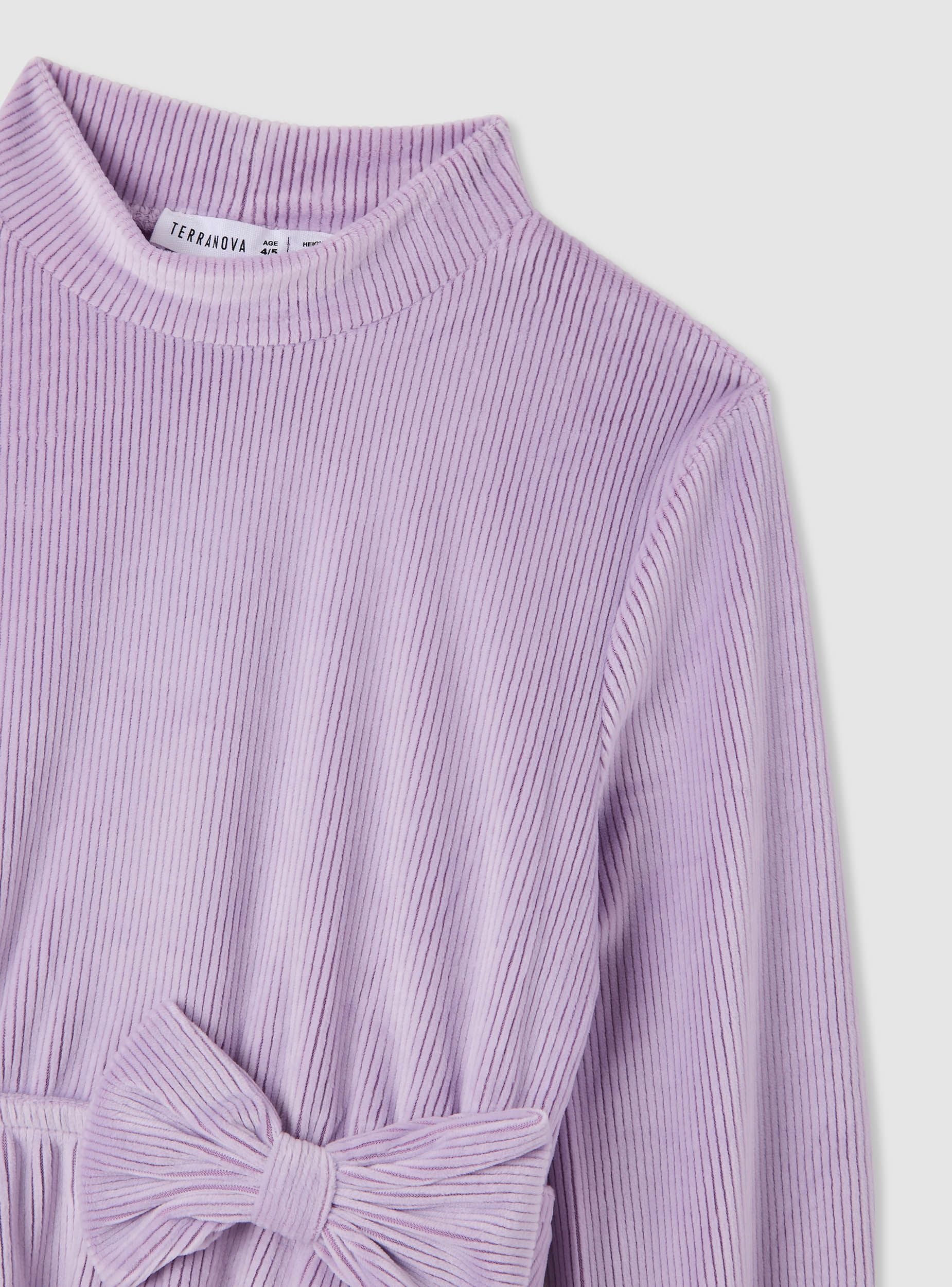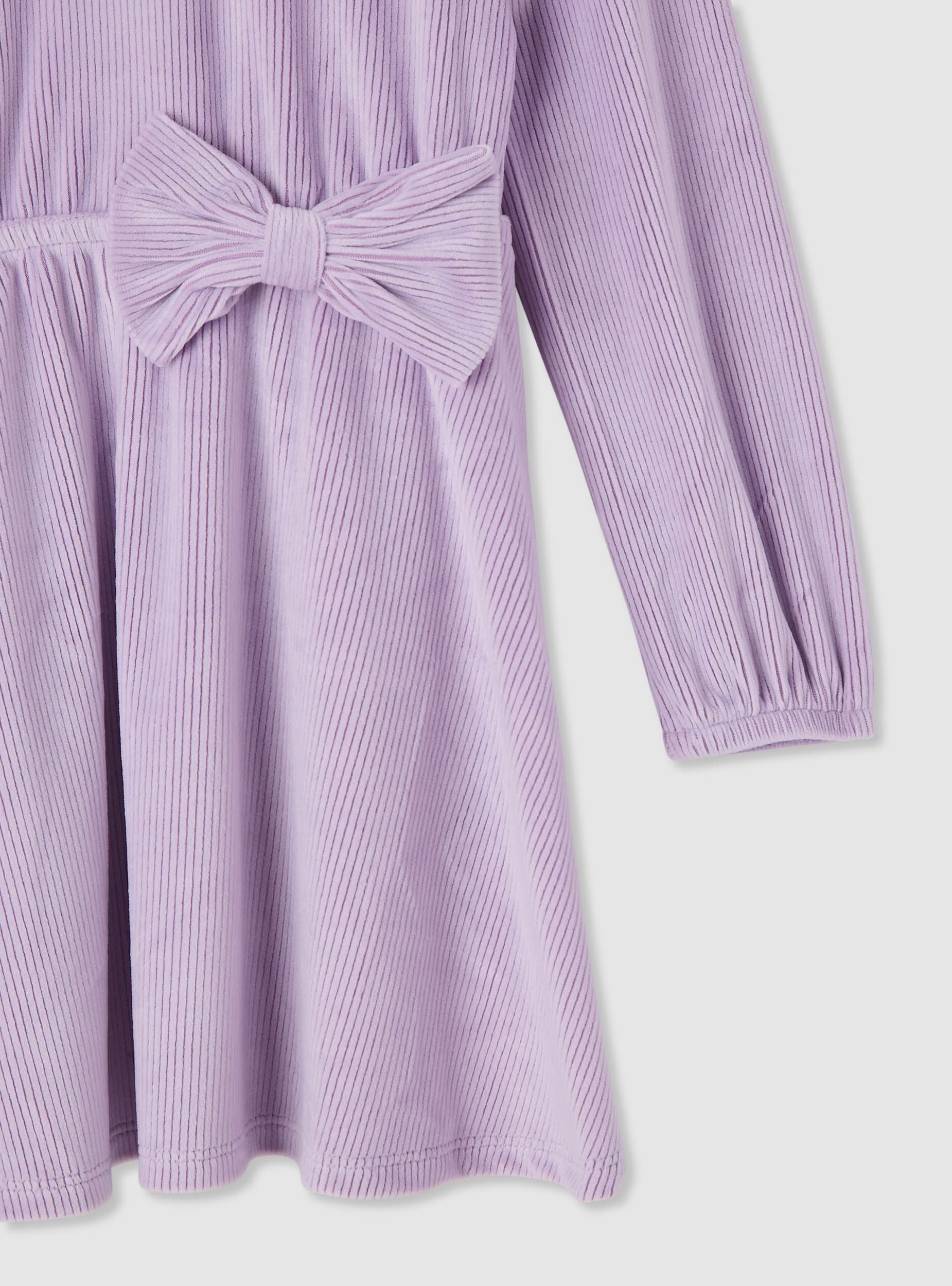 Rochie pentru fetițe din material cu rețea, uni, perfectă pentru cele mai dulci și elegante ținute de iarnă. Designul cu guler înalt asigură căldură și confort, în timp ce mânecile lungi oferă o acoperire ideală în zilele reci. Croiala evazată este evidențiată de o fundă drăguță aplicată în talie, care adaugă o notă romantică și feminină. Ușor de asortat cu colanți și botine pentru o ținută completă.Detalii