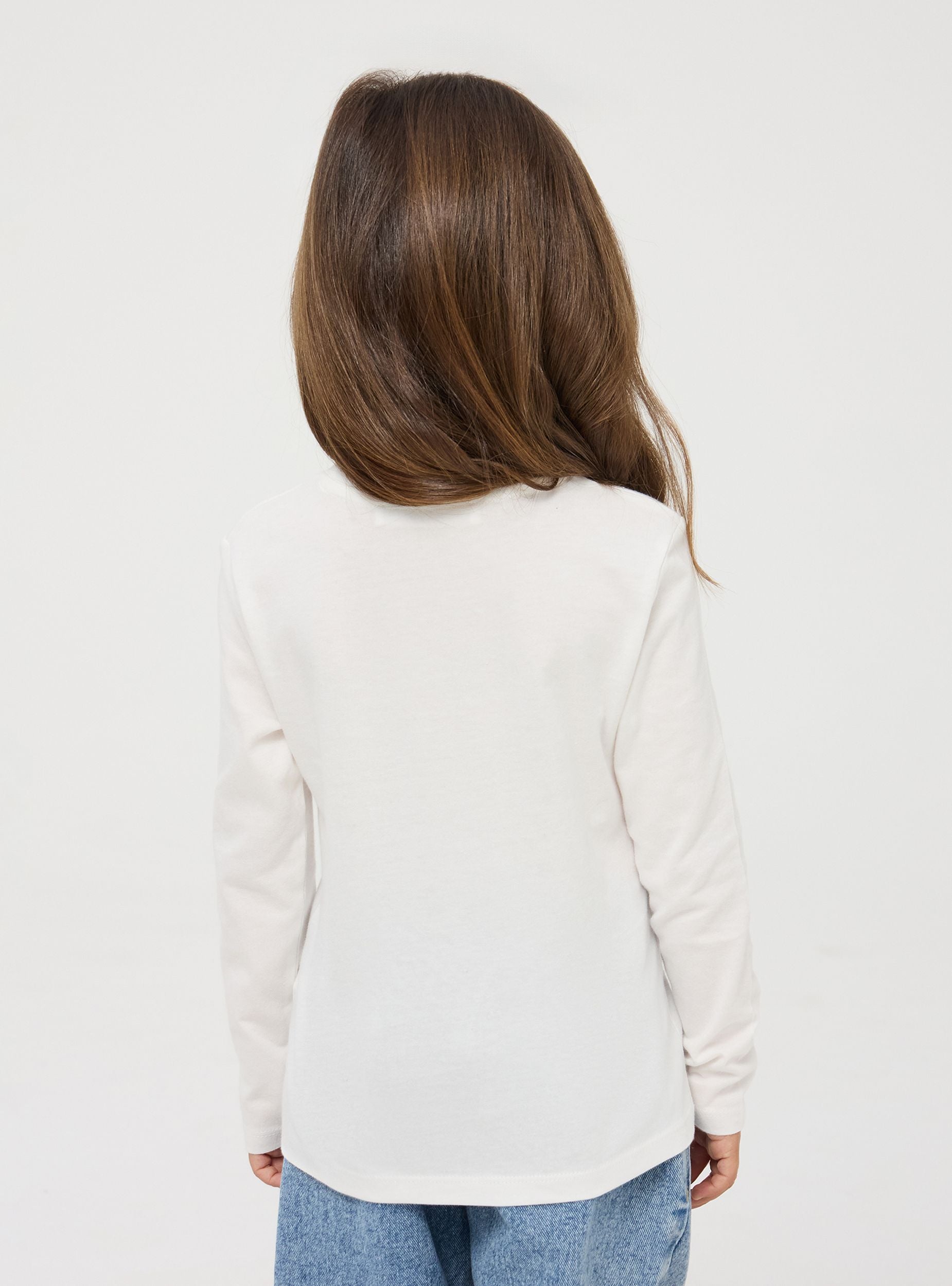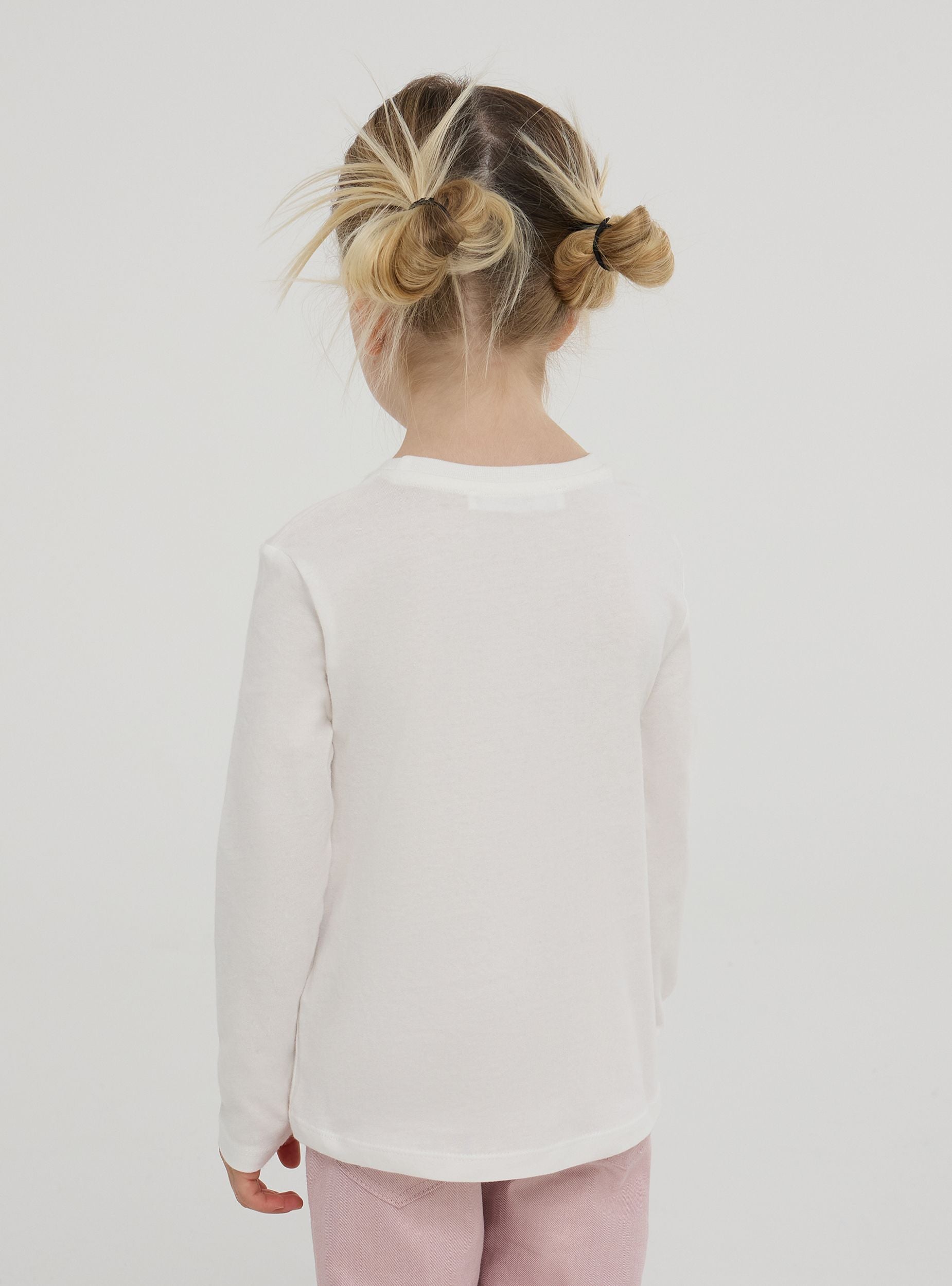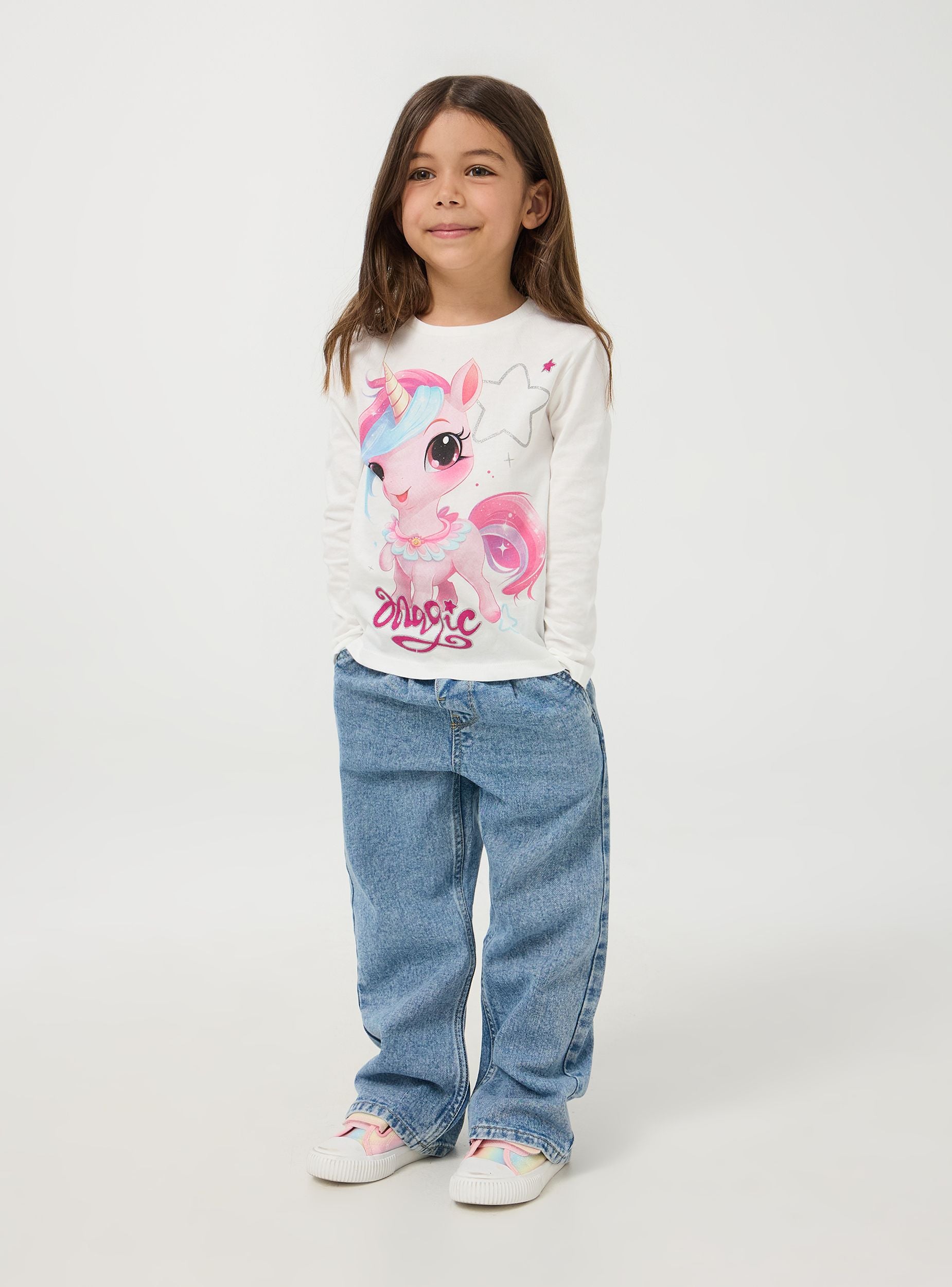 Bluză pentru fetițe cu mâneci lungi și decolteu rotund, caracterizată printr-un imprimeu frontal viu cu un unicorn cu sclipici, care adaugă o notă magică ținutei. Croiala este comodă, ideală pentru activitățile zilnice și pentru a asigura un confort maxim. Perfectă pentru un look casual, această bluză poate fi asortată cu blugi, pantaloni sau fuste pentru a crea o ținută distractivă și la modă.Detalii