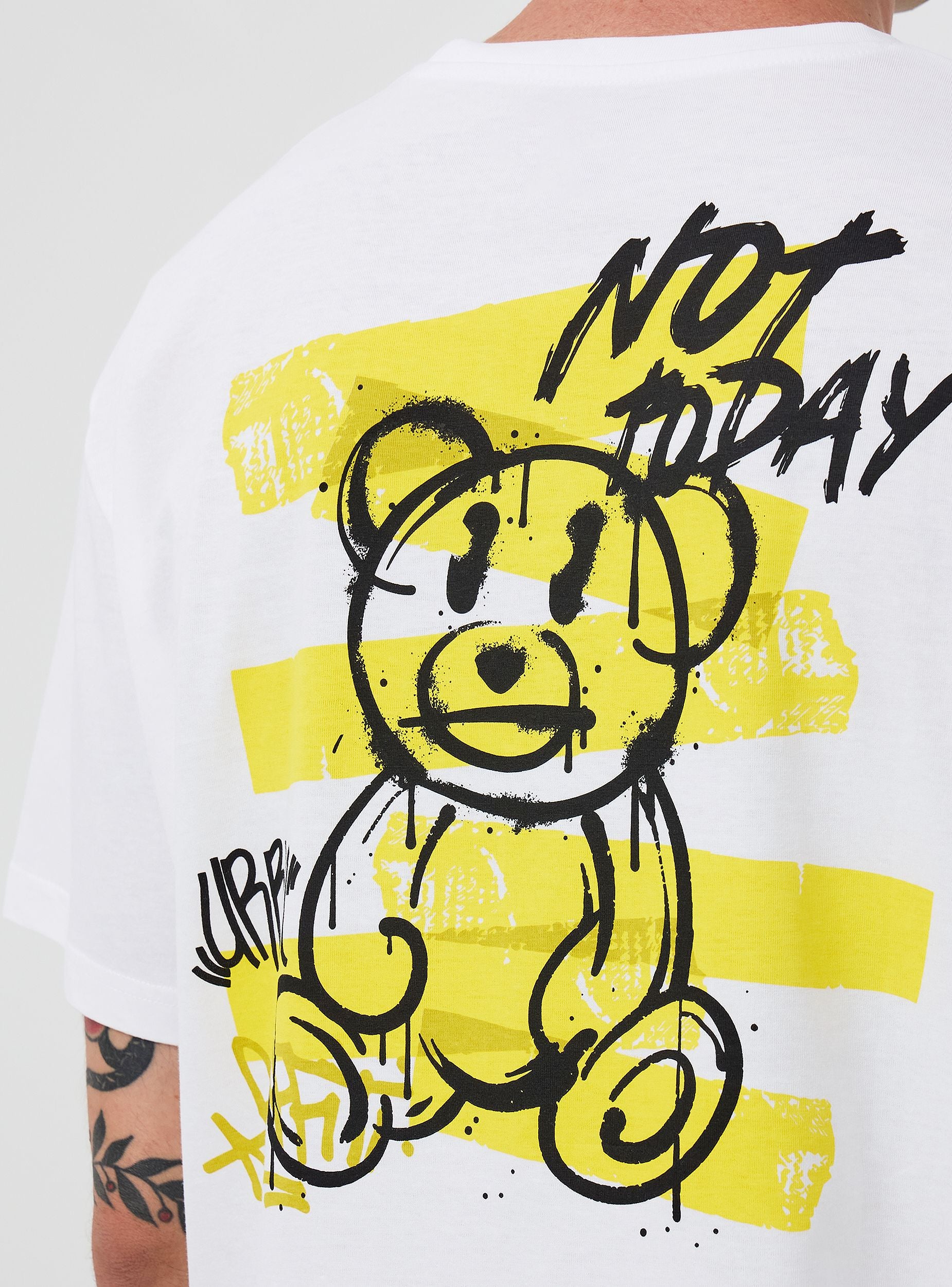 Tricou pentru bărbați din jerseu de bumbac, cu imprimeu mic cu ursuleț pe partea din față și unul mai mare pe spate. Model cu guler rotund și mâneci scurte. Croială regular.Detalii