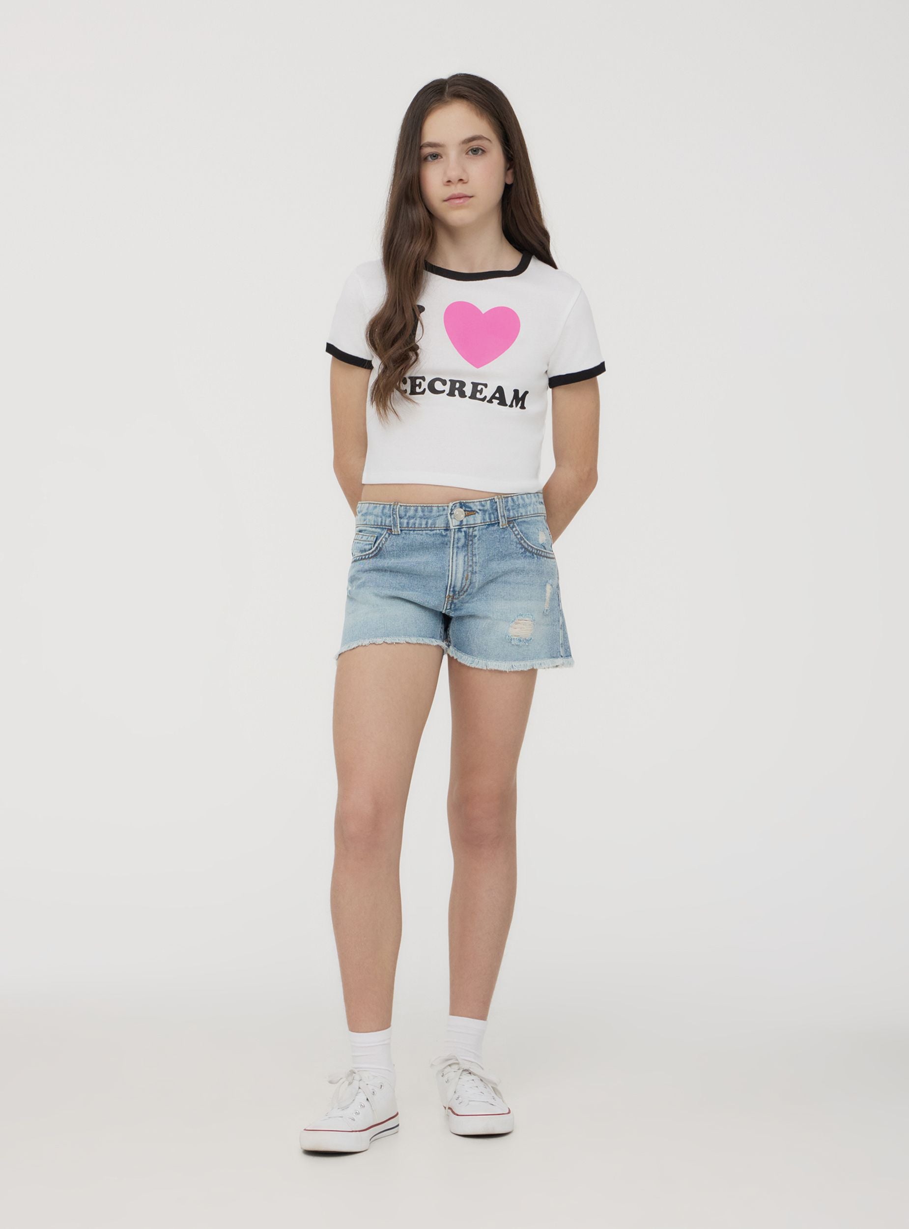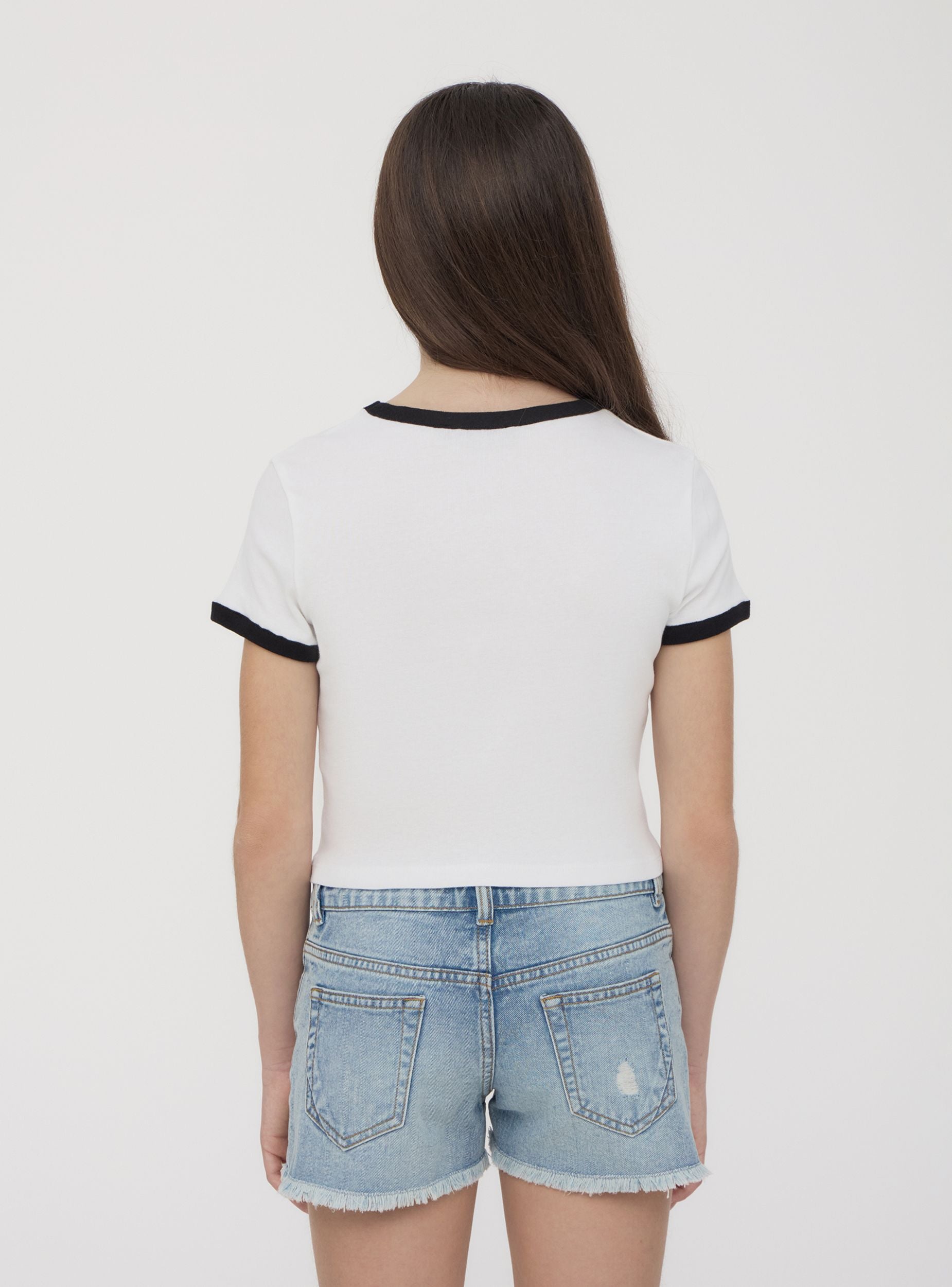 Tricou de fete cu mâneci scurte, guler rotund și margini contrastante, perfect pentru un look casual și plin de viață. Imprimeul amuzant adaugă o notă de originalitate, făcându-l ideal pentru timpul liber și zilele de joacă. Ușor de asortat cu pantaloni scurți, blugi sau fuste, este o piesă versatilă care adaugă culoare și personalitate ținutei.