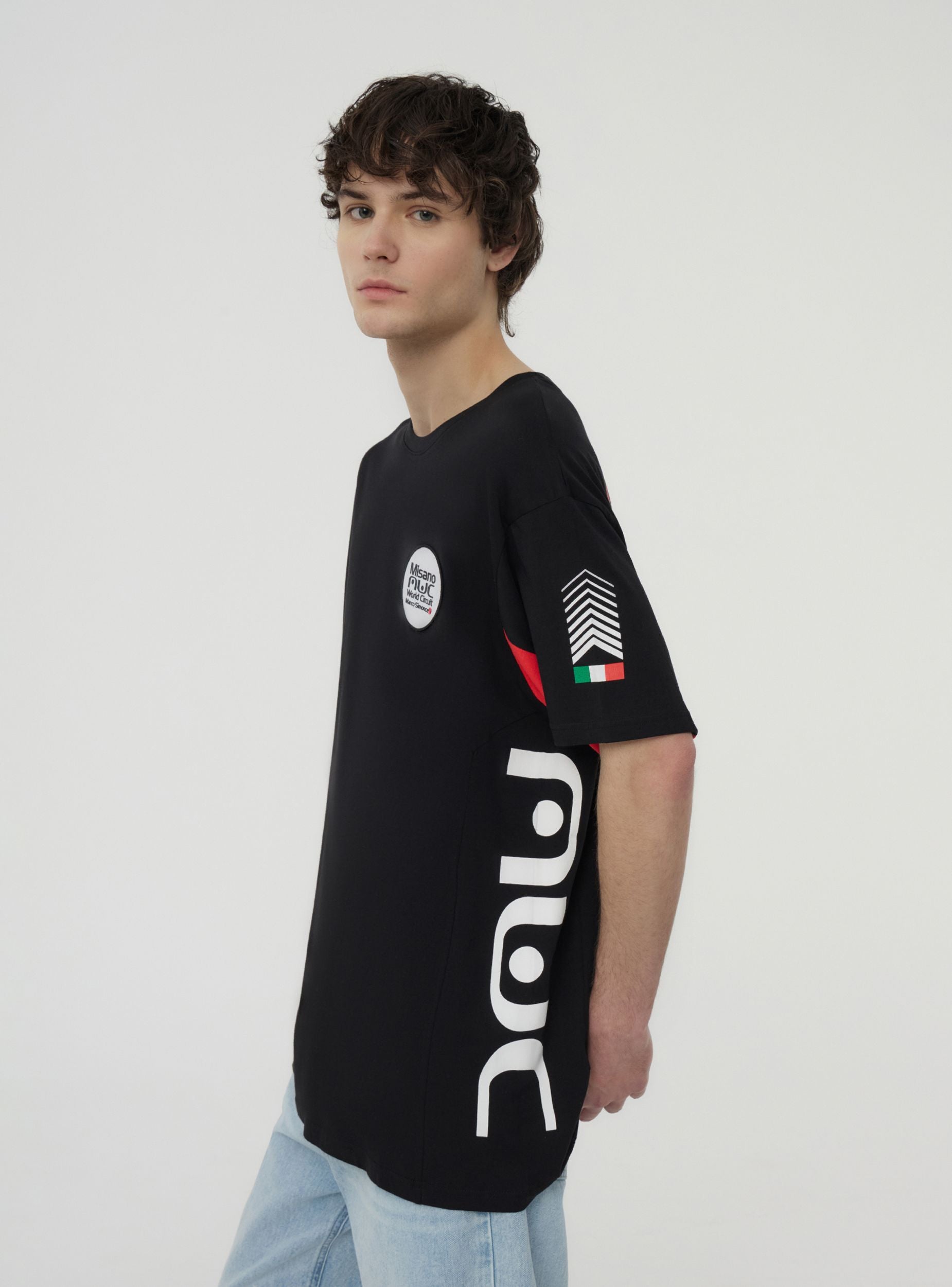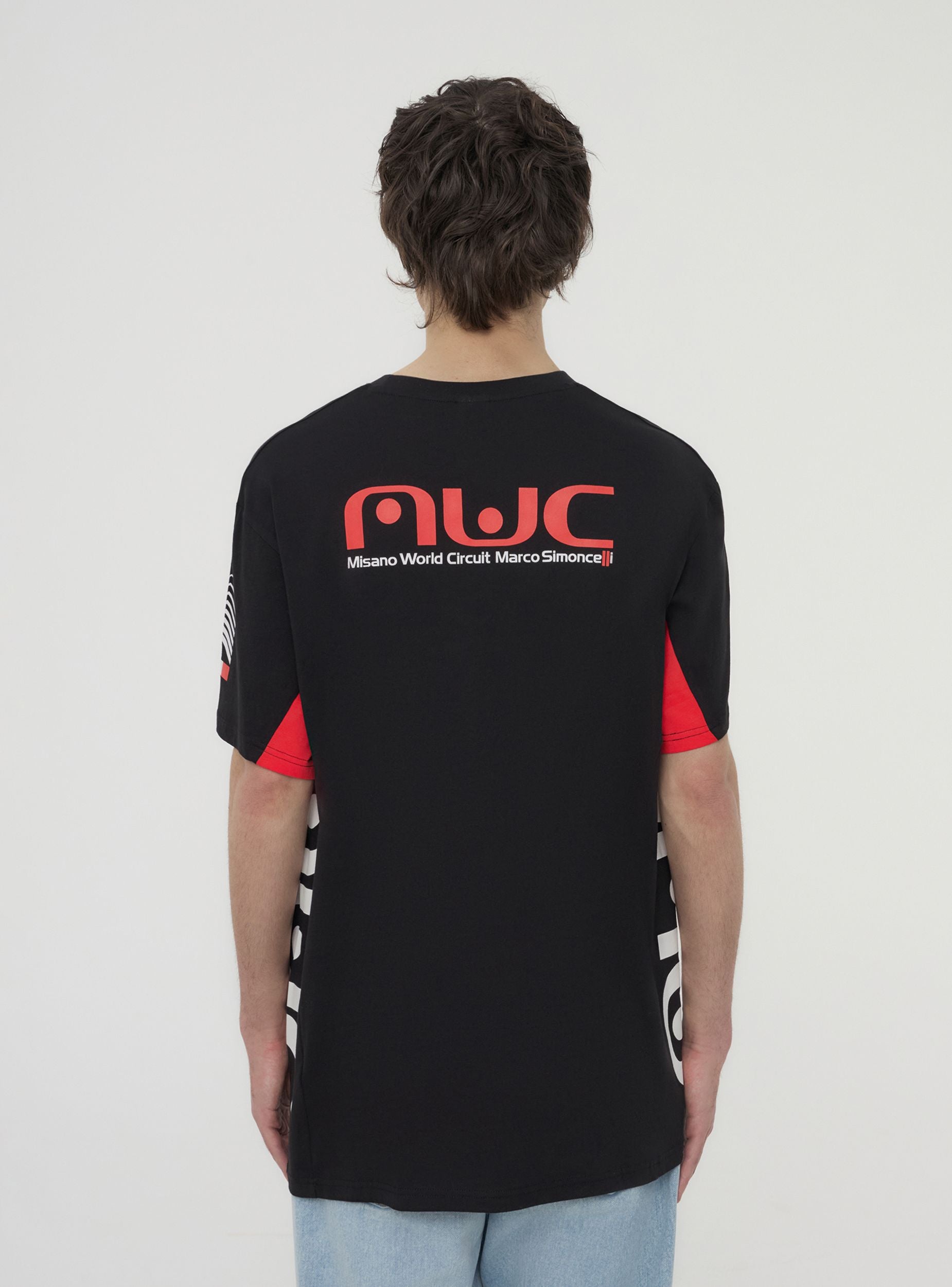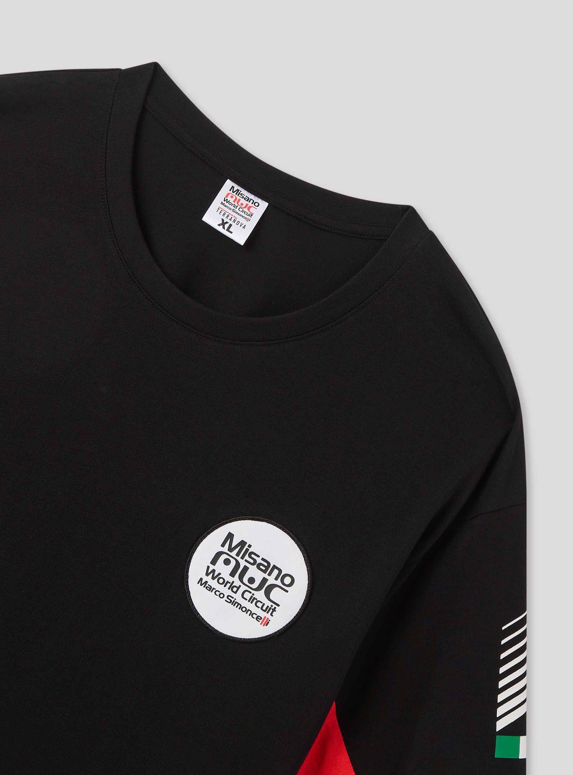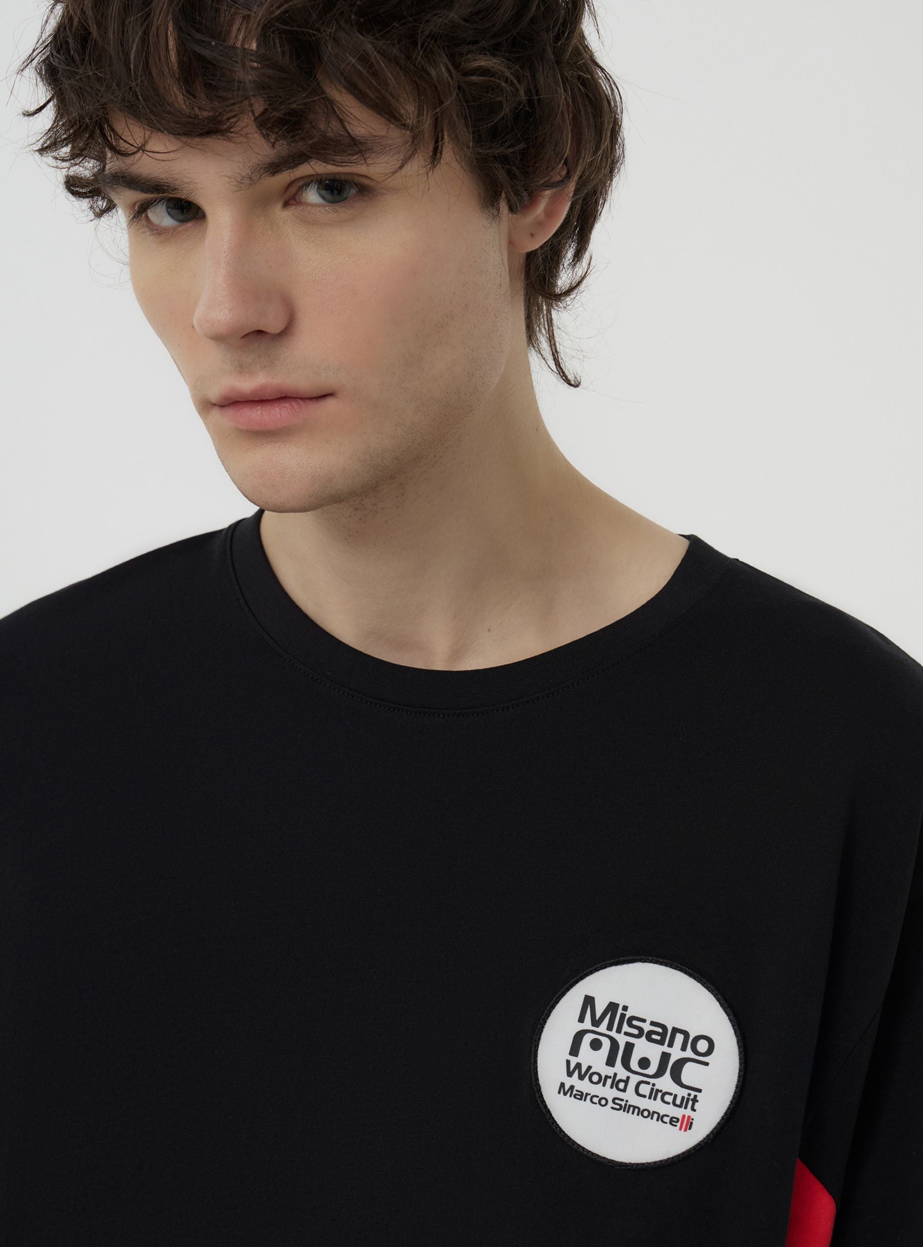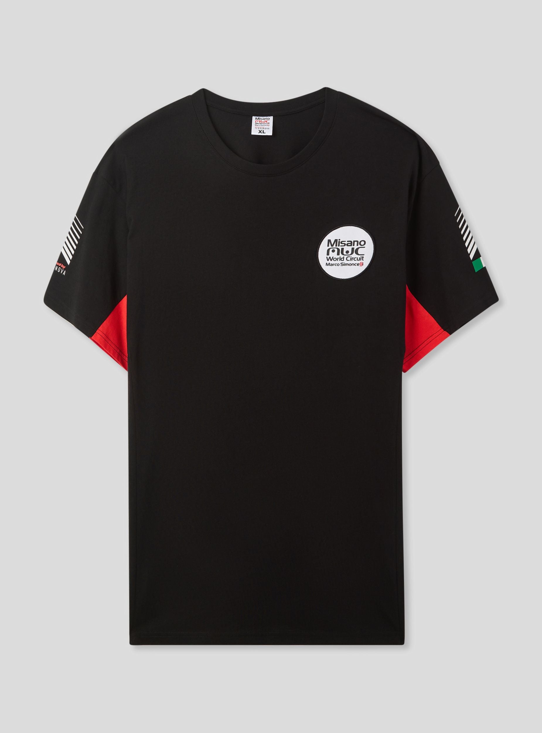 Tricou pentru bărbați cu imprimeu al logo-ului Misano World Circuit pe partea laterală și patch cu logo pe față. Pe spate se află un alt imprimeu cu logo. Modelul are guler rotund, mâneci scurte și un design cu efect block color. Croiala este regular, oferind un aspect casual și confortabil, ideal pentru pasionații de motorsport.Detalii