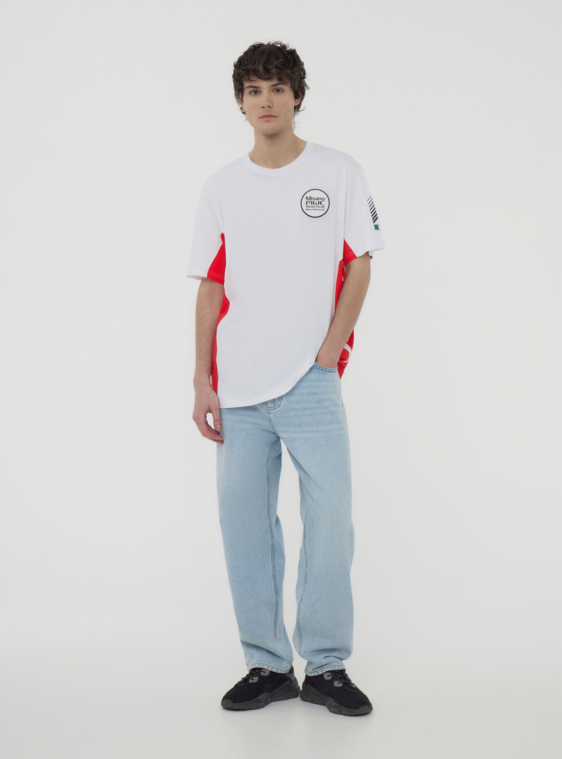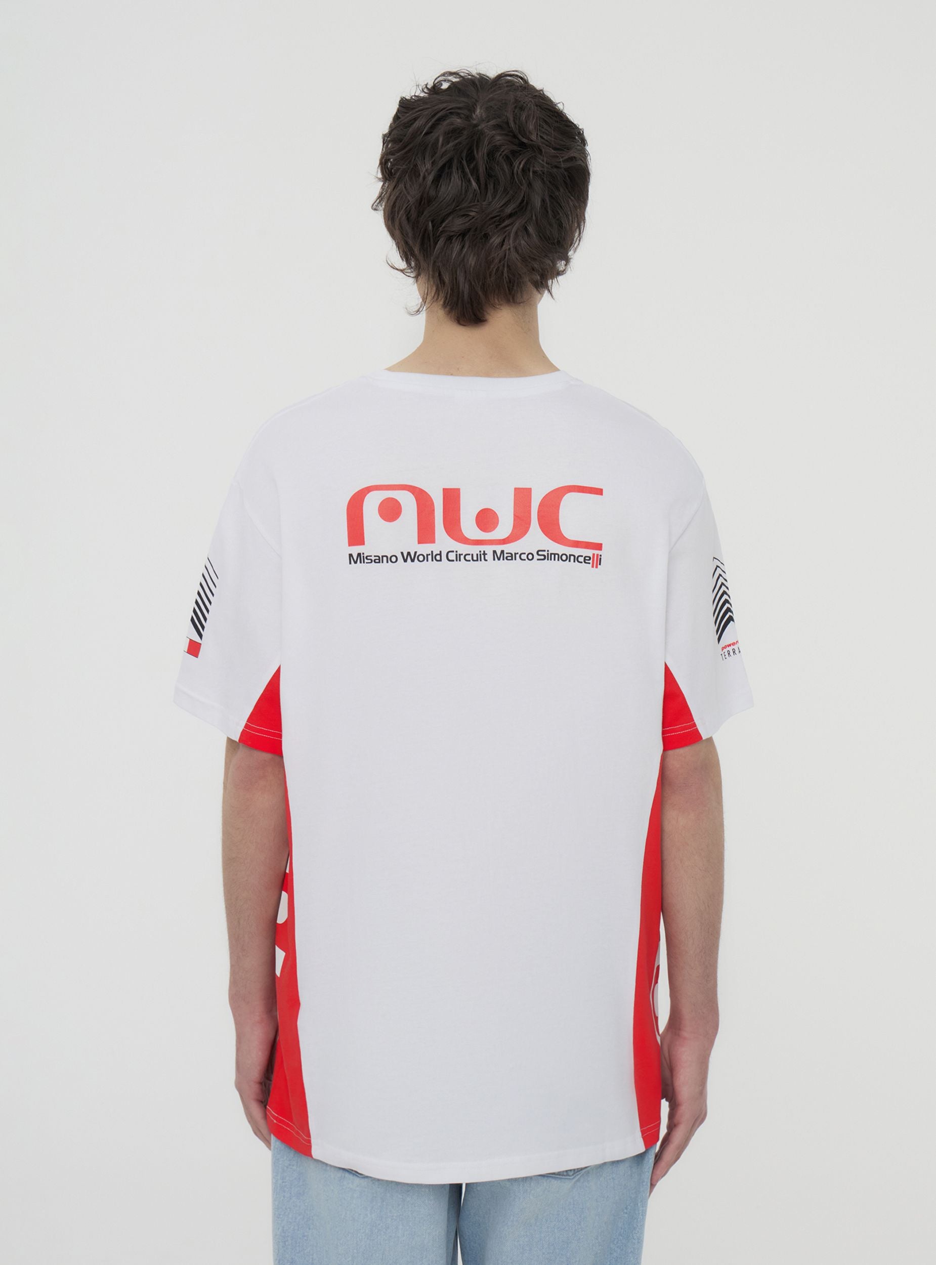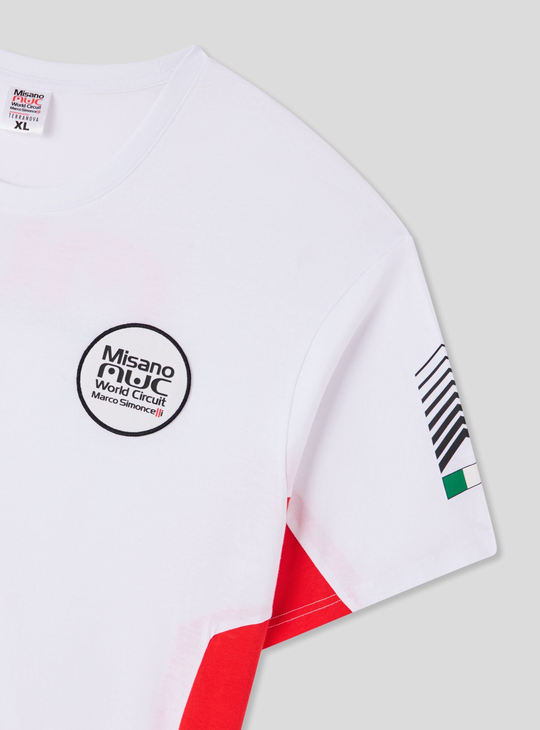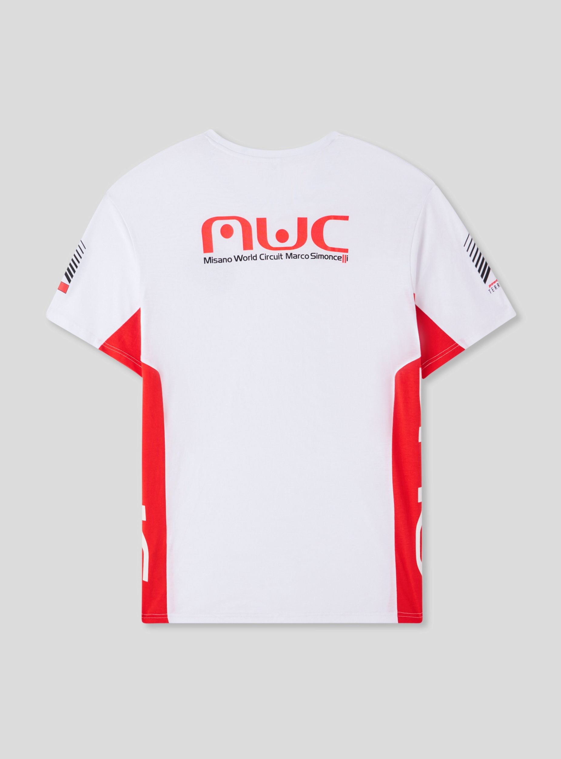 Tricou din bumbac pentru bărbați cu grafică sportivă, mâneci scurte și guler rotund. Designul dinamic prezintă imprimeuri laterale și detalii racing pe față și pe spate, inspirate de Misano World Circuit. Perfect pentru evenimente sportive, timp liber sau look streetwear. Se potrivește ușor cu blugi, joggeri sau pantaloni scurți pentru un outfit energic și modern, ideal pentru cei care iubesc adrenalina și viteza.Detalii