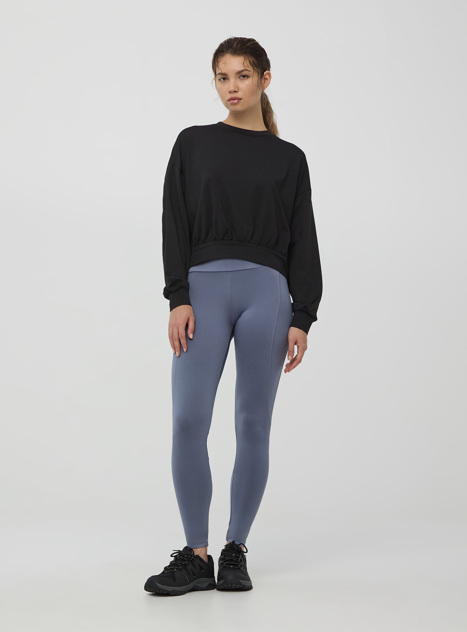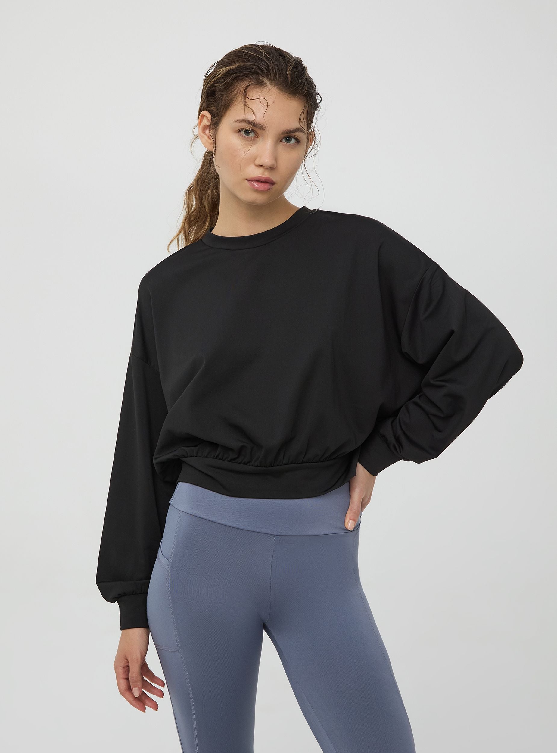 Женский свитер без капюшона, из однотонной ткани. Идеален для занятий спортом или для спортивного образа. Активная линия. Мягкая посадка.