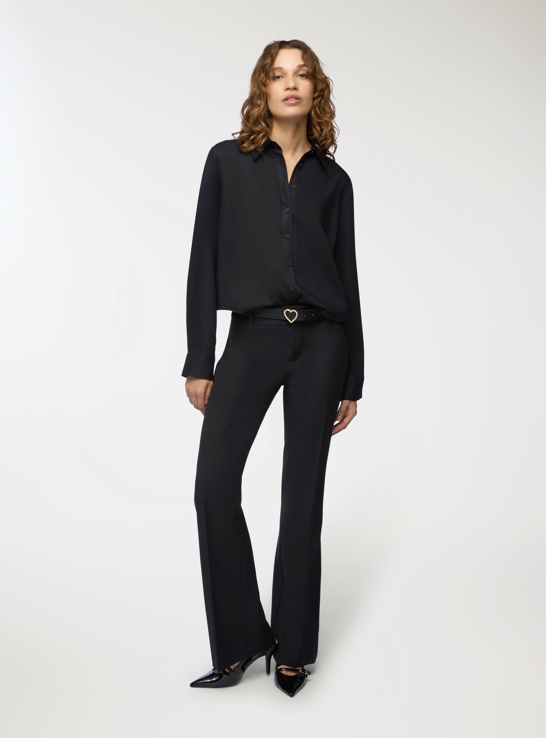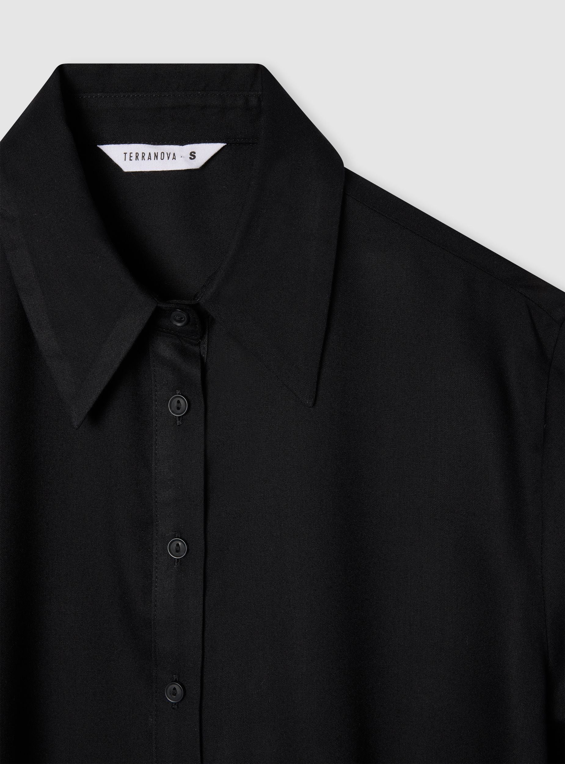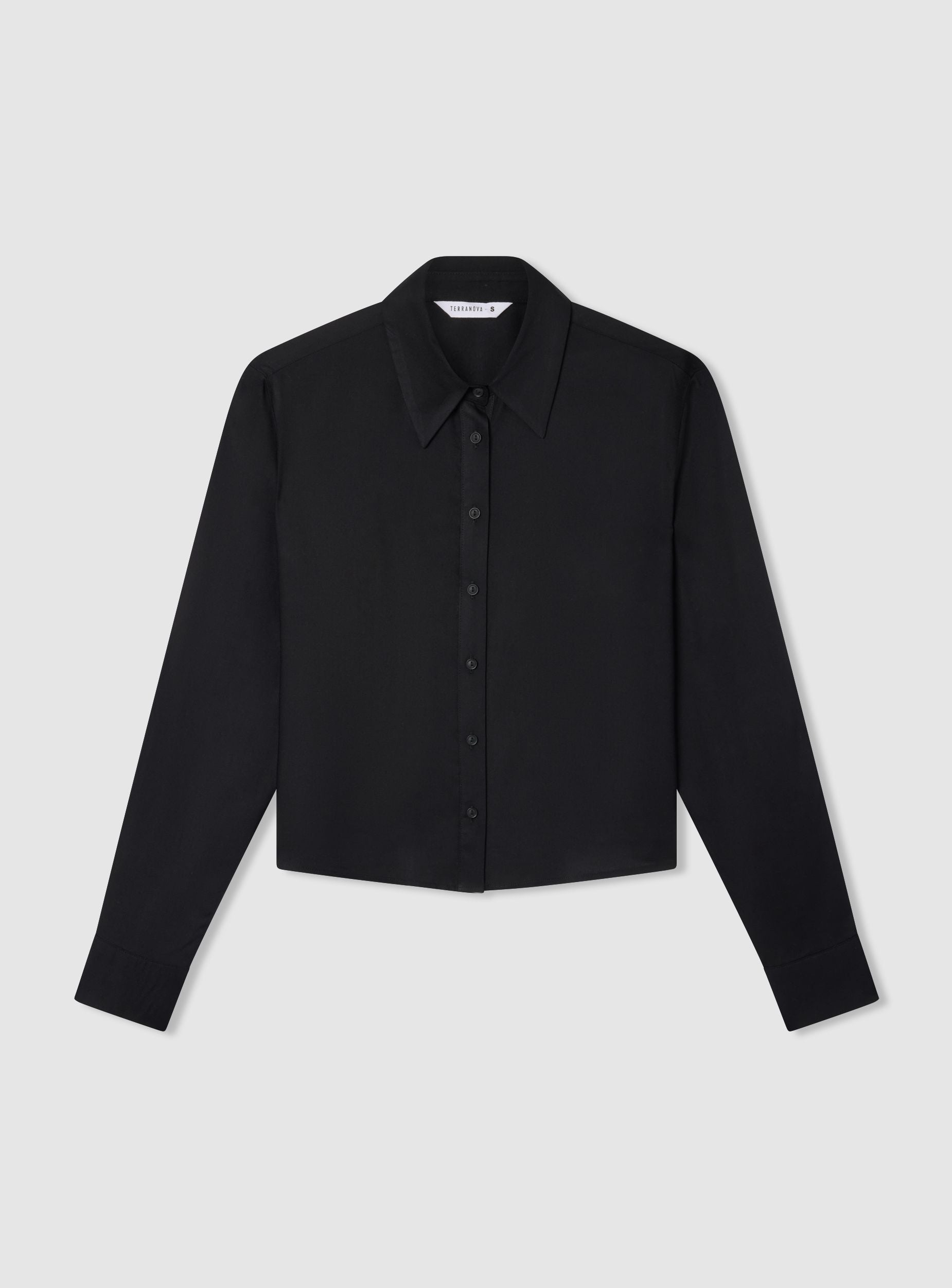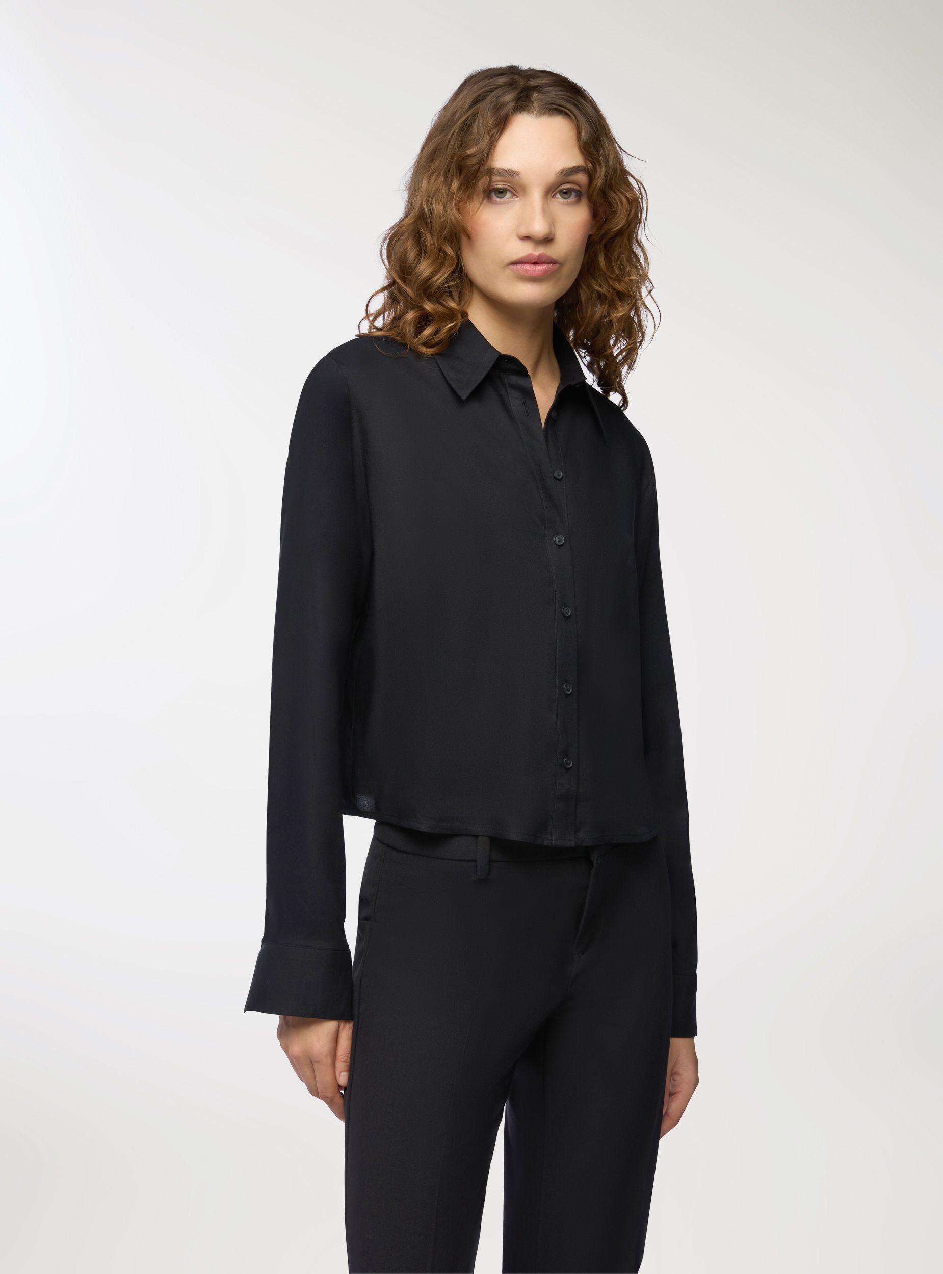 Женская рубашка из вискозы с укороченным кроем, идеально подходит для формального или повседневного образа. Имеет однотонный дизайн с длинными рукавами и манжетами на пуговицах. Классический воротник добавляет элегантности, а застежка на пуговицы спереди обеспечивает удобство. Отлично сочетается с брюками с высокой талией или юбками для создания изысканного и современного образа.Детали