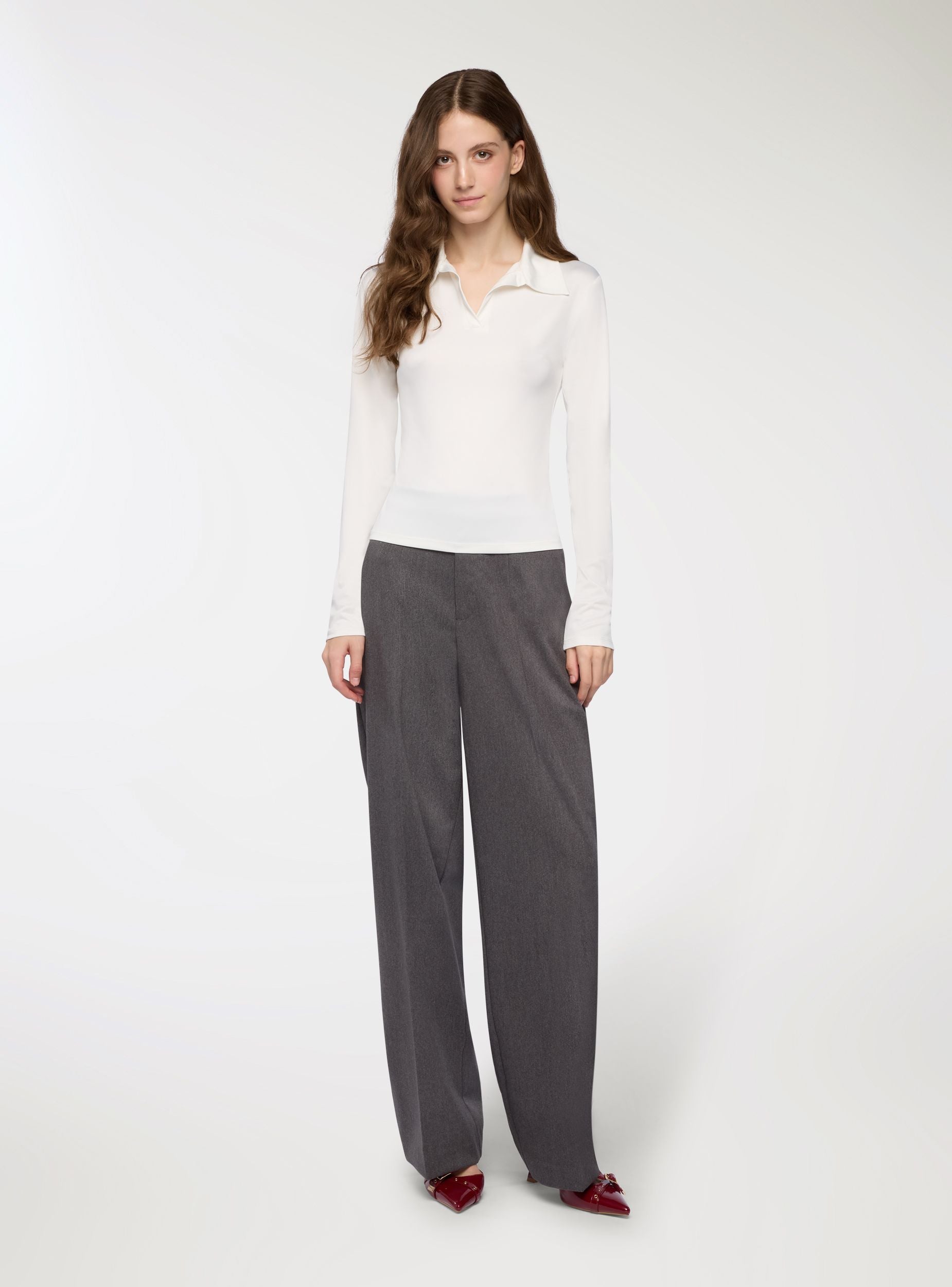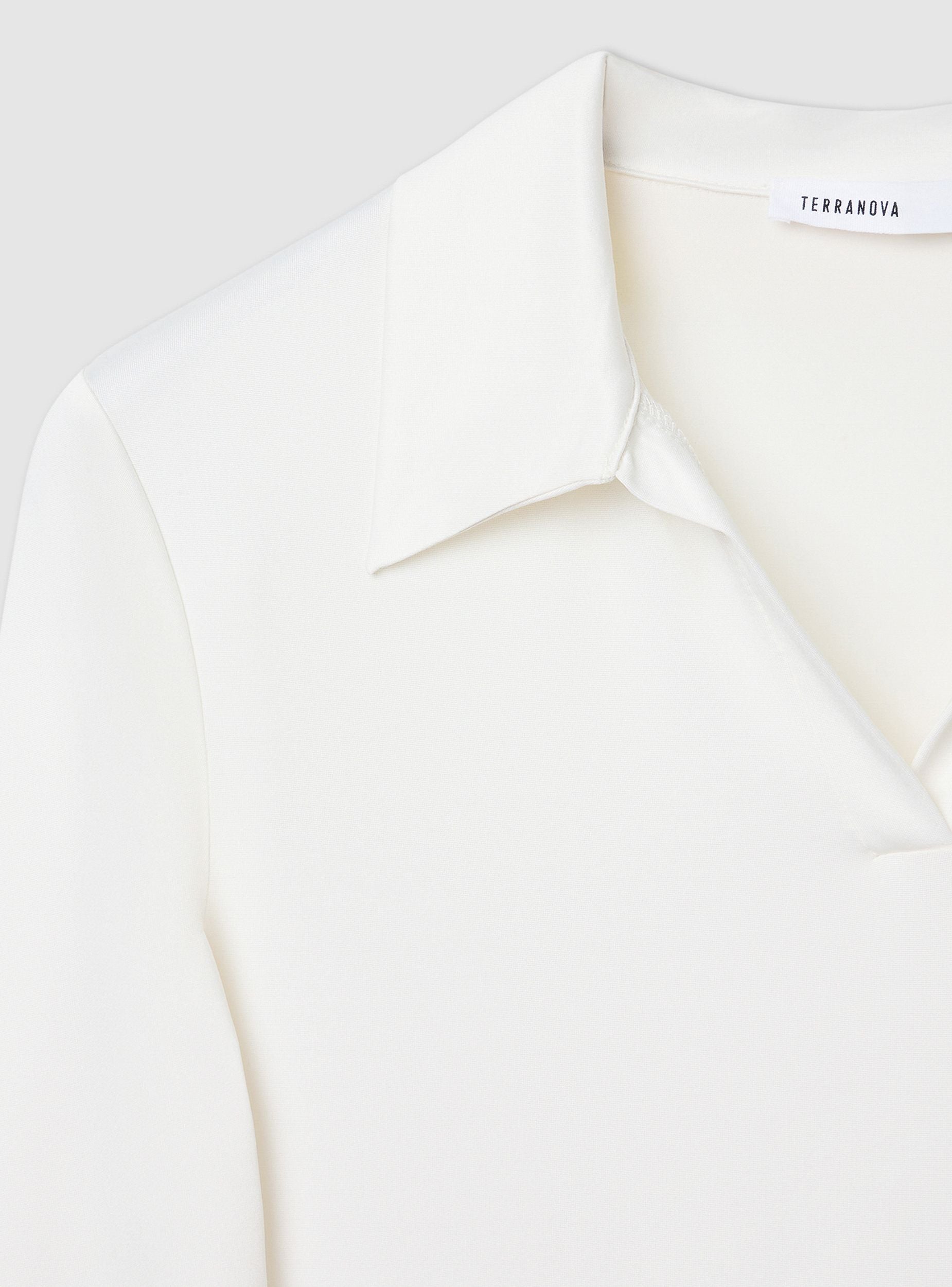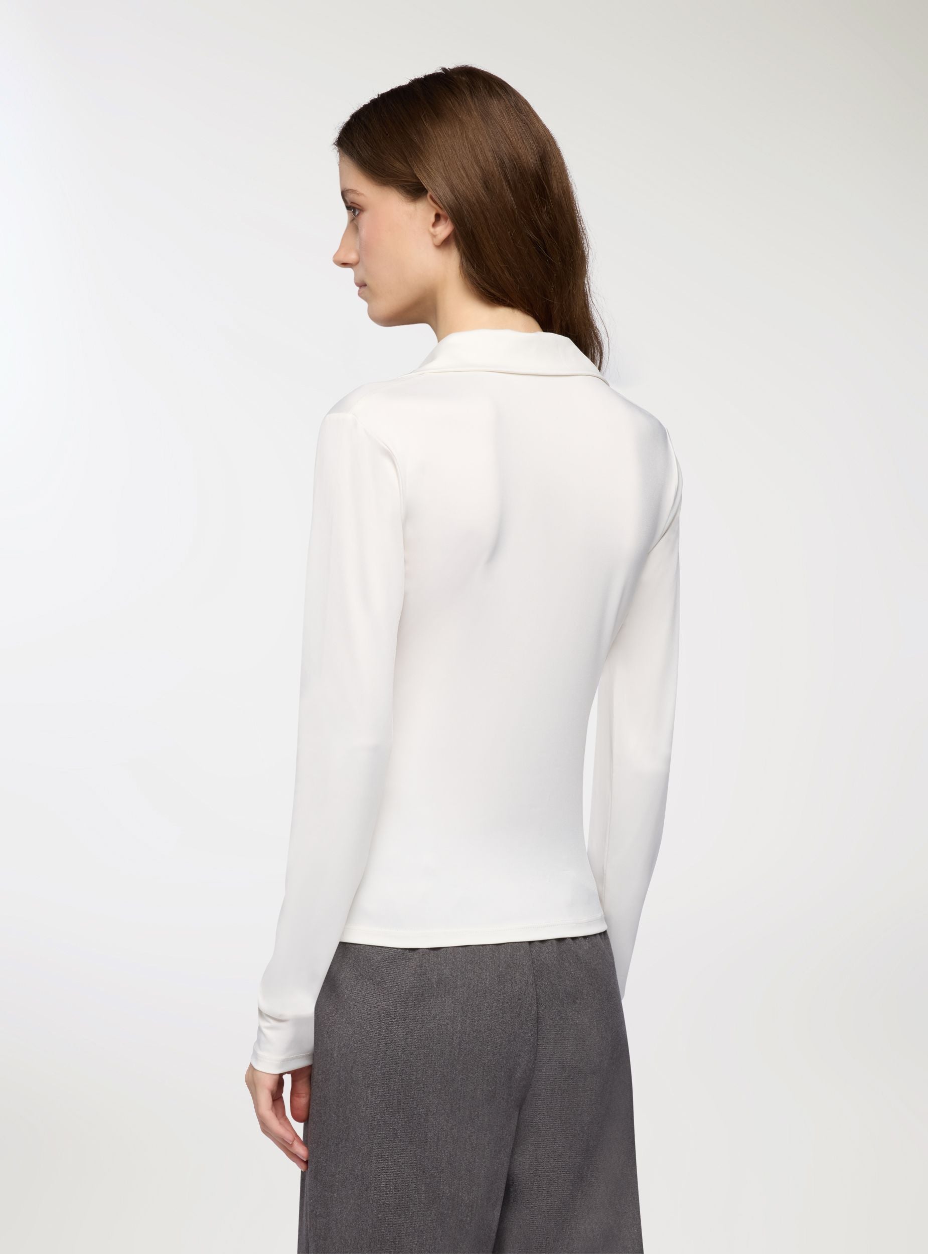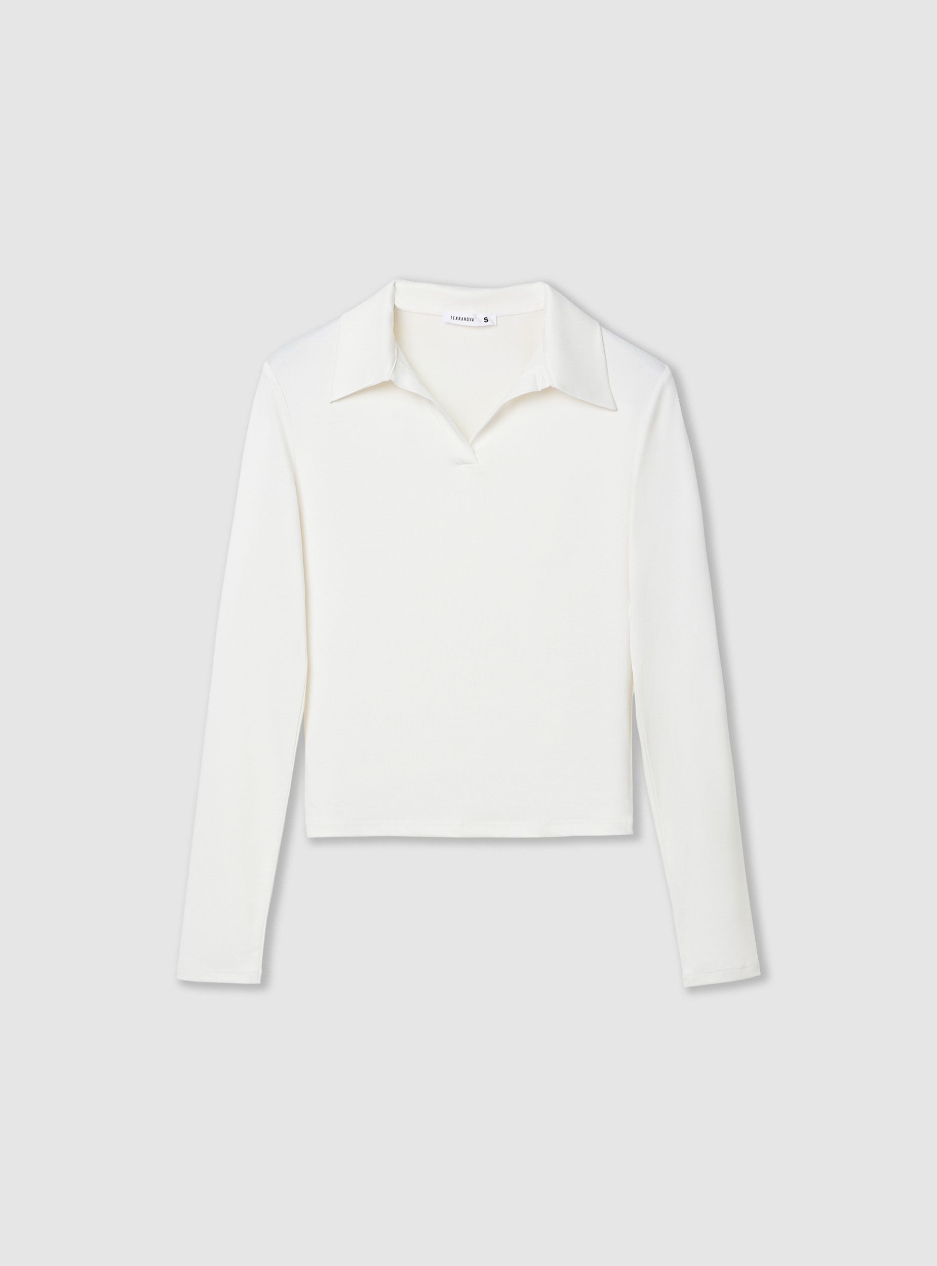 Женская футболка с длинными рукавами, идеально подходит для повседневного и универсального образа. Имеет классический воротник и V-образный вырез, отлично сочетается с джинсами или элегантными брюками. Свободный крой и однотонный дизайн делают её подходящей для разных случаев — от работы до отдыха.Детали