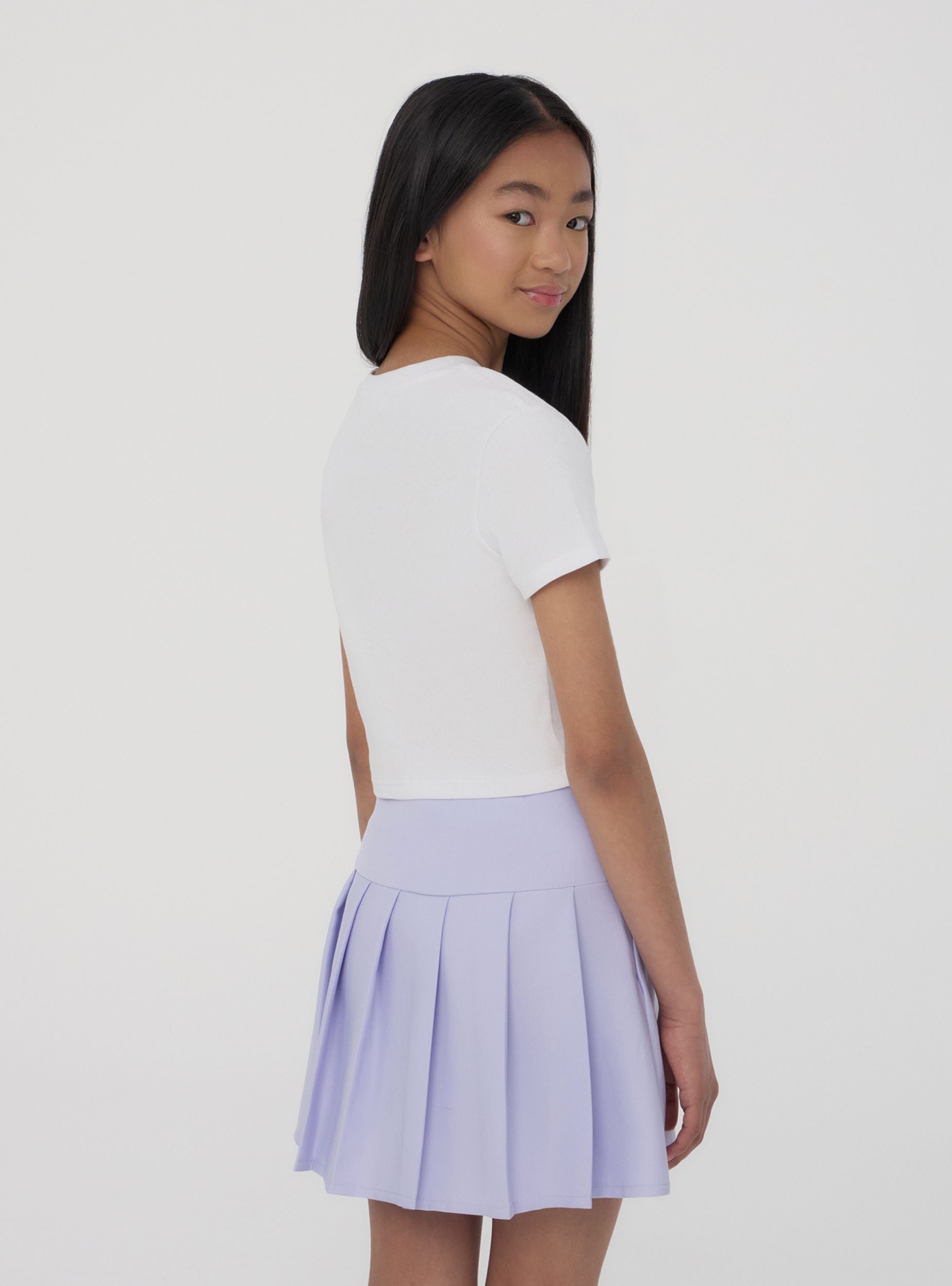 Идеальная девичья юбка для повседневного и динамичного образа, идеально подходит для свободного времени или неформального наряда. Обладает стандартной посадкой, имеет дизайн с складками и мини-длину. Универсальный выбор для тех, кто ищет комфорт и стиль в любой ситуации.