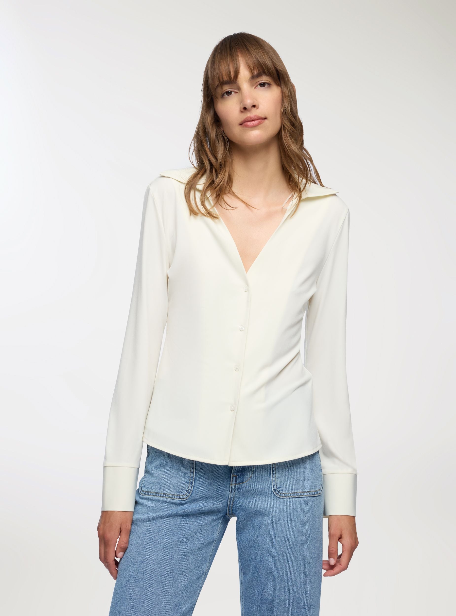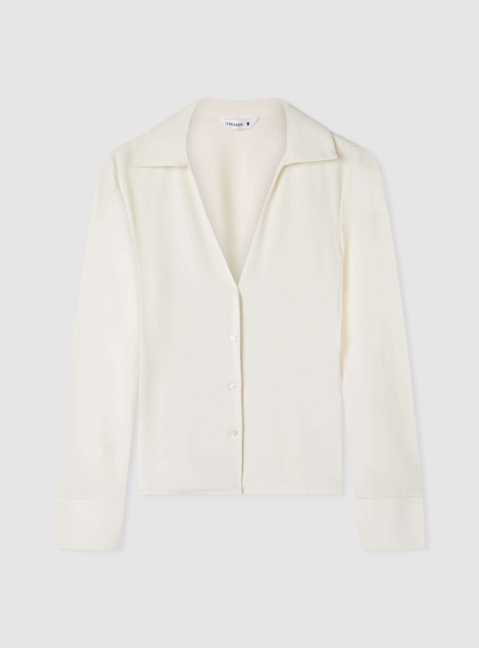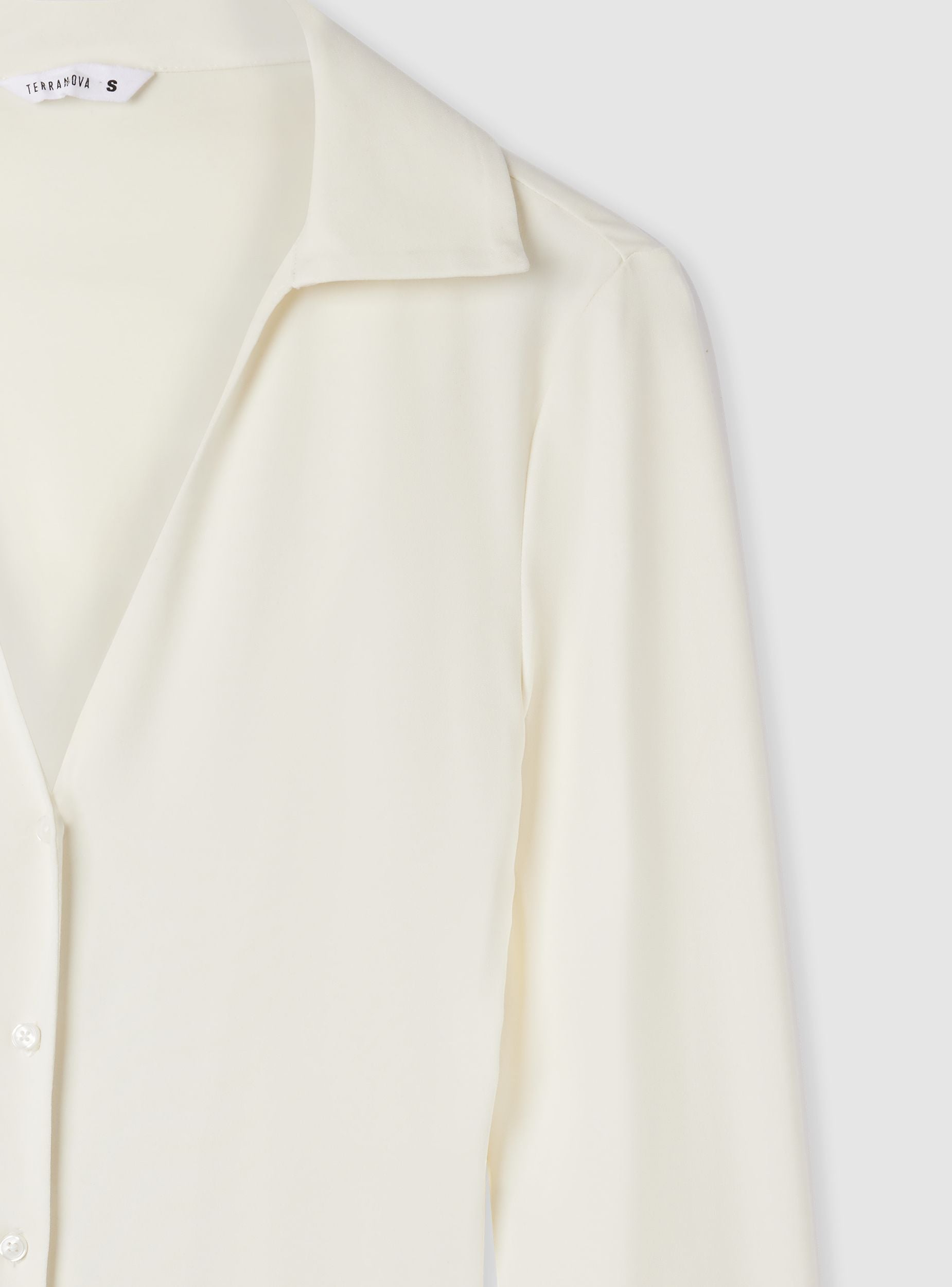 Женская рубашка с длинными рукавами и приталенным кроем, идеально подходит для элегантного и профессионального образа. Оснащена открытым воротником с V-образным вырезом и застежкой на пуговицы спереди, что обеспечивает практичность и стиль. Идеально сочетается с брюками или юбками, подходит для различных формальных и повседневных случаев, гарантируя универсальность и комфорт.Детали