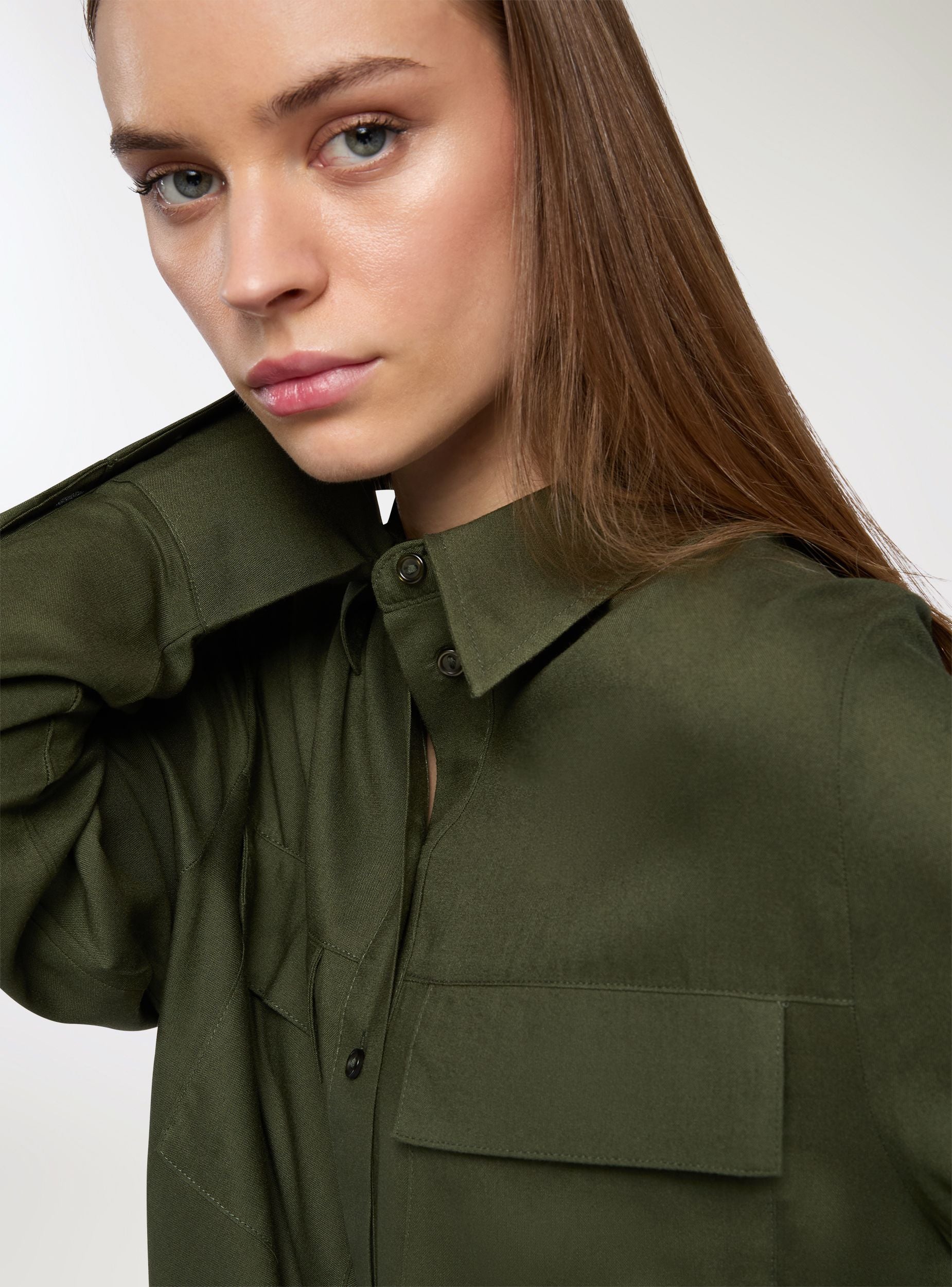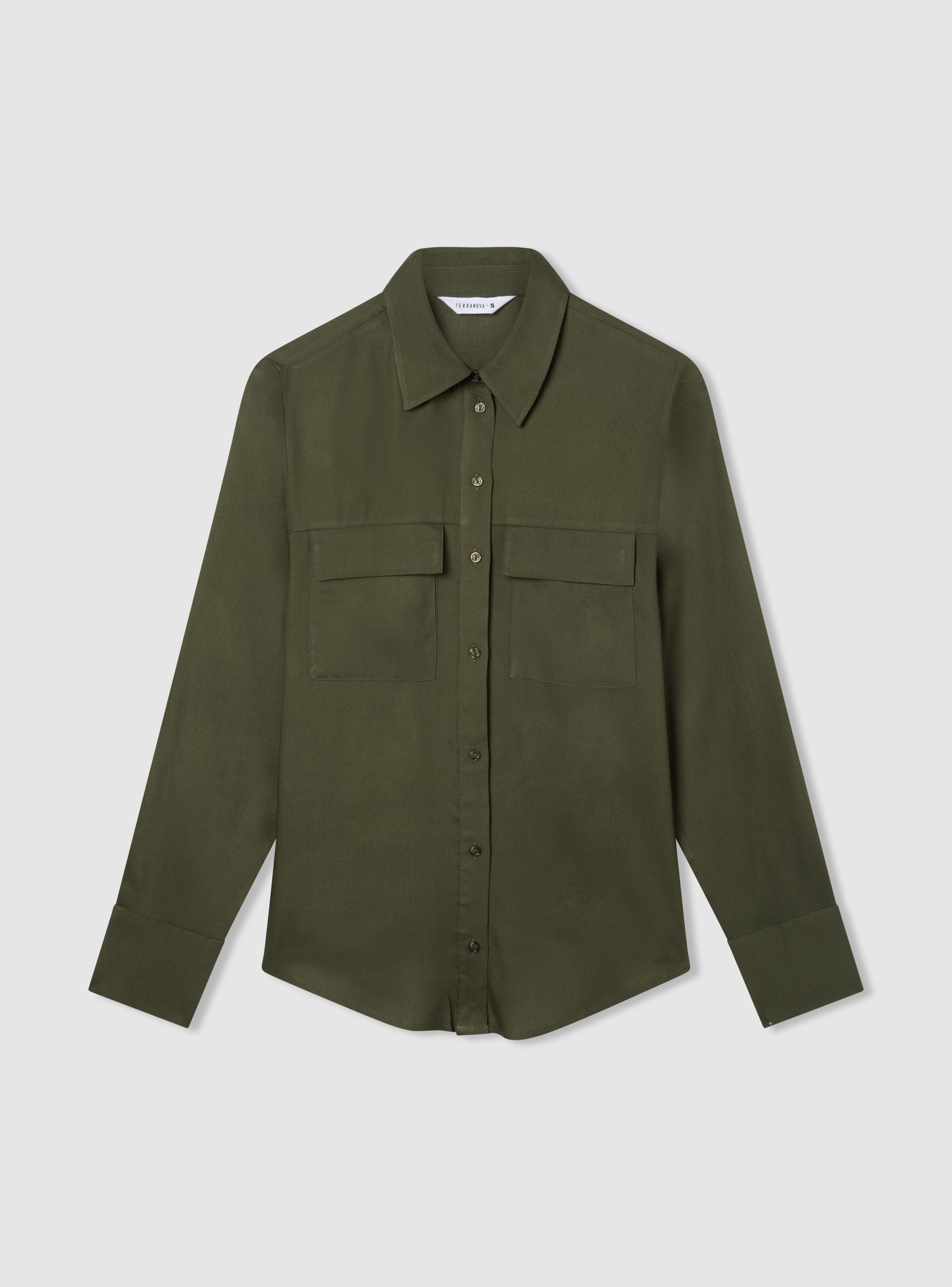 Женская рубашка с длинными рукавами и воротником. Оснащена передними карманами с клапанами и застежкой на пуговицы, предлагает универсальный дизайн, подходящий для различных случаев. Идеально подходит для повседневного или формального образа, легко сочетается с элегантными брюками или джинсами. Стандартная посадка обеспечивает комфорт и стиль.Детали
