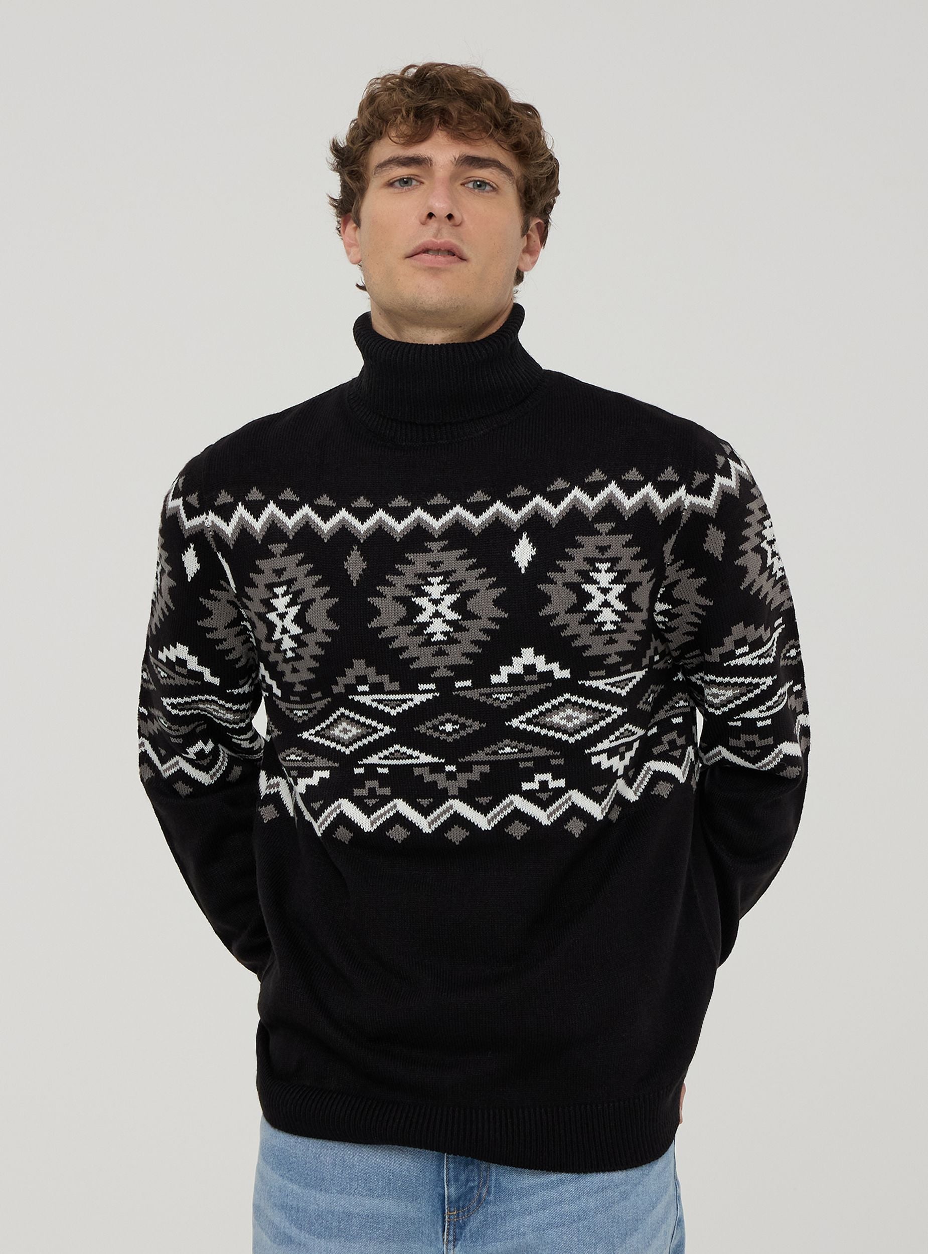 Свитер с высоким воротником и жаккардовым узором в горном стиле