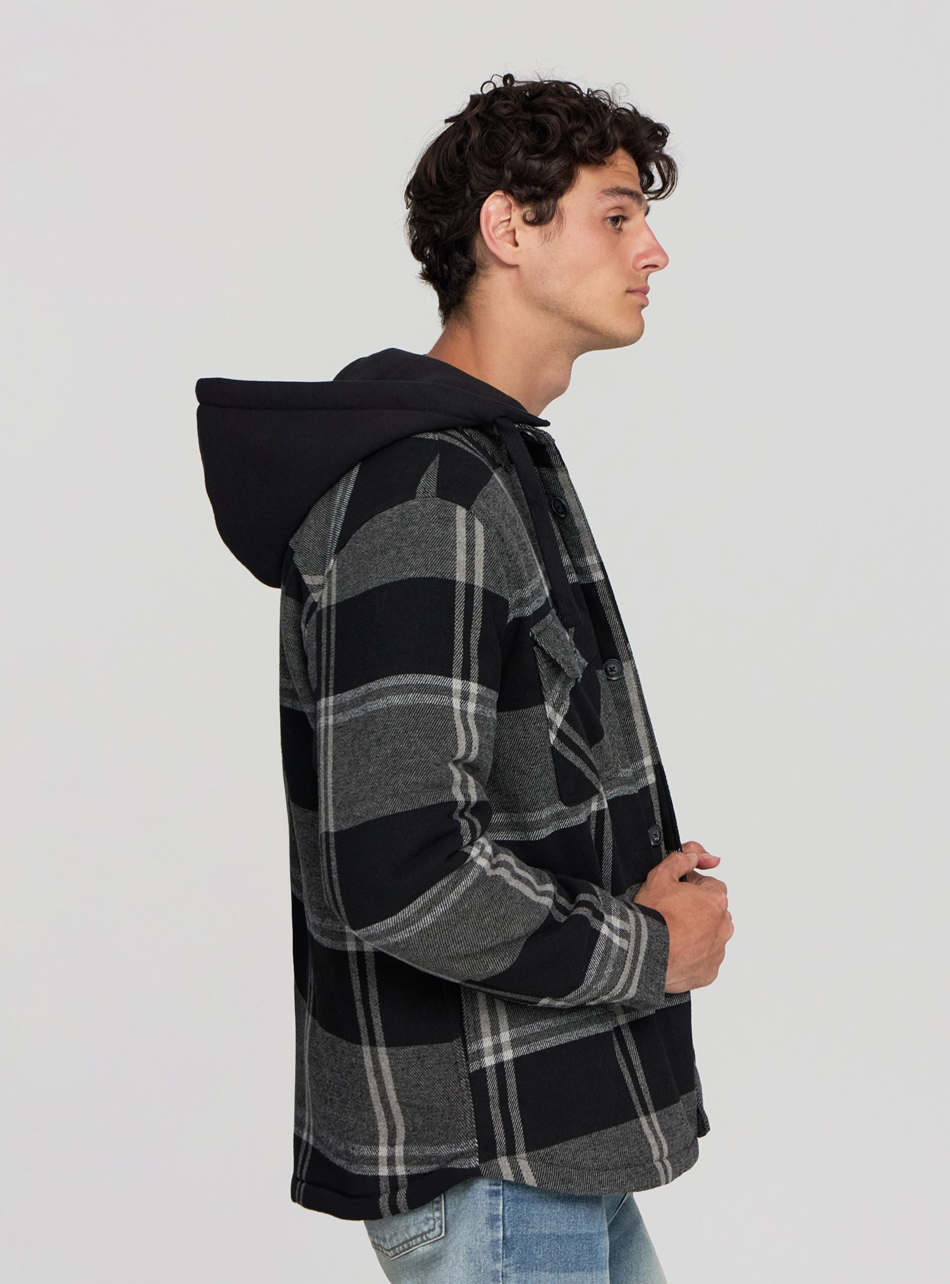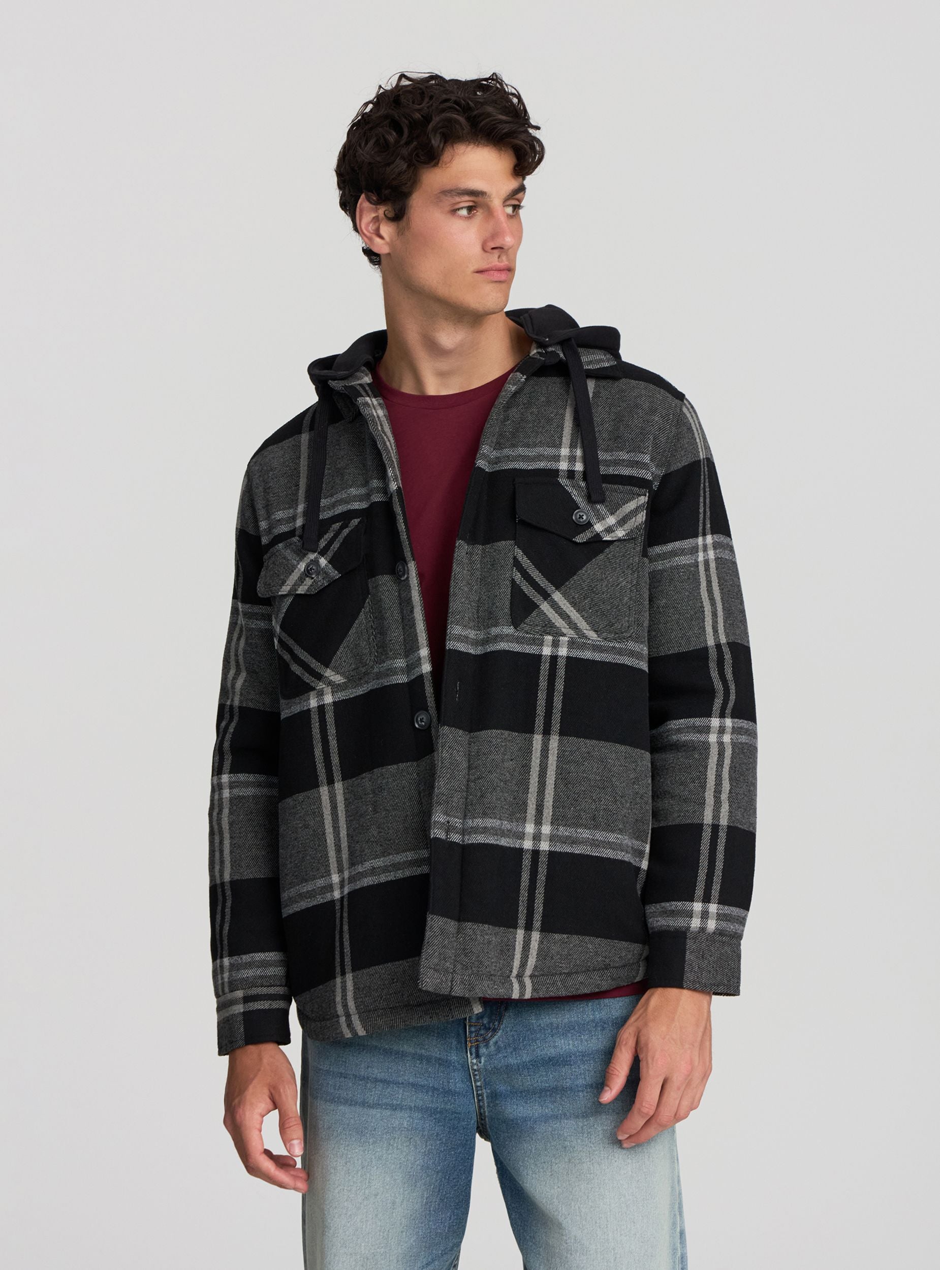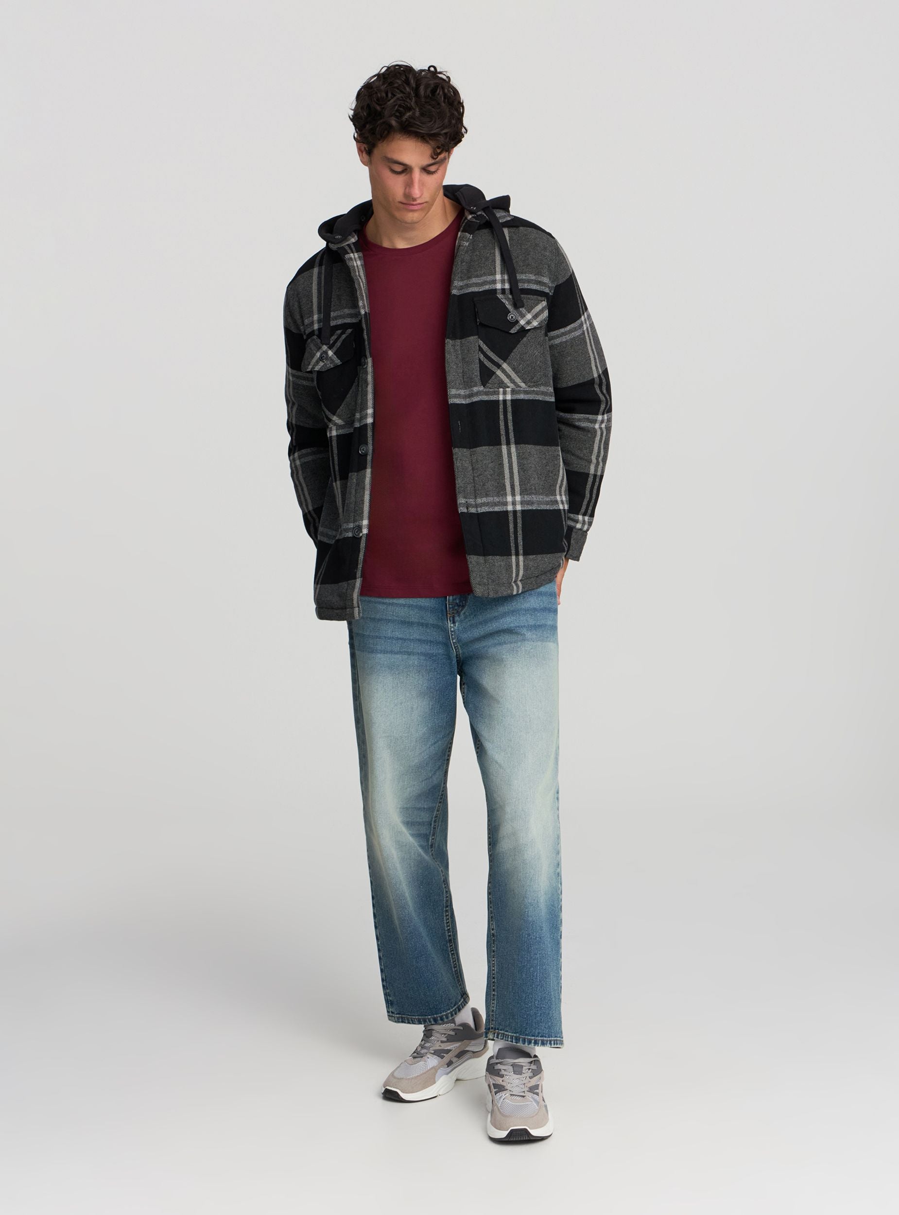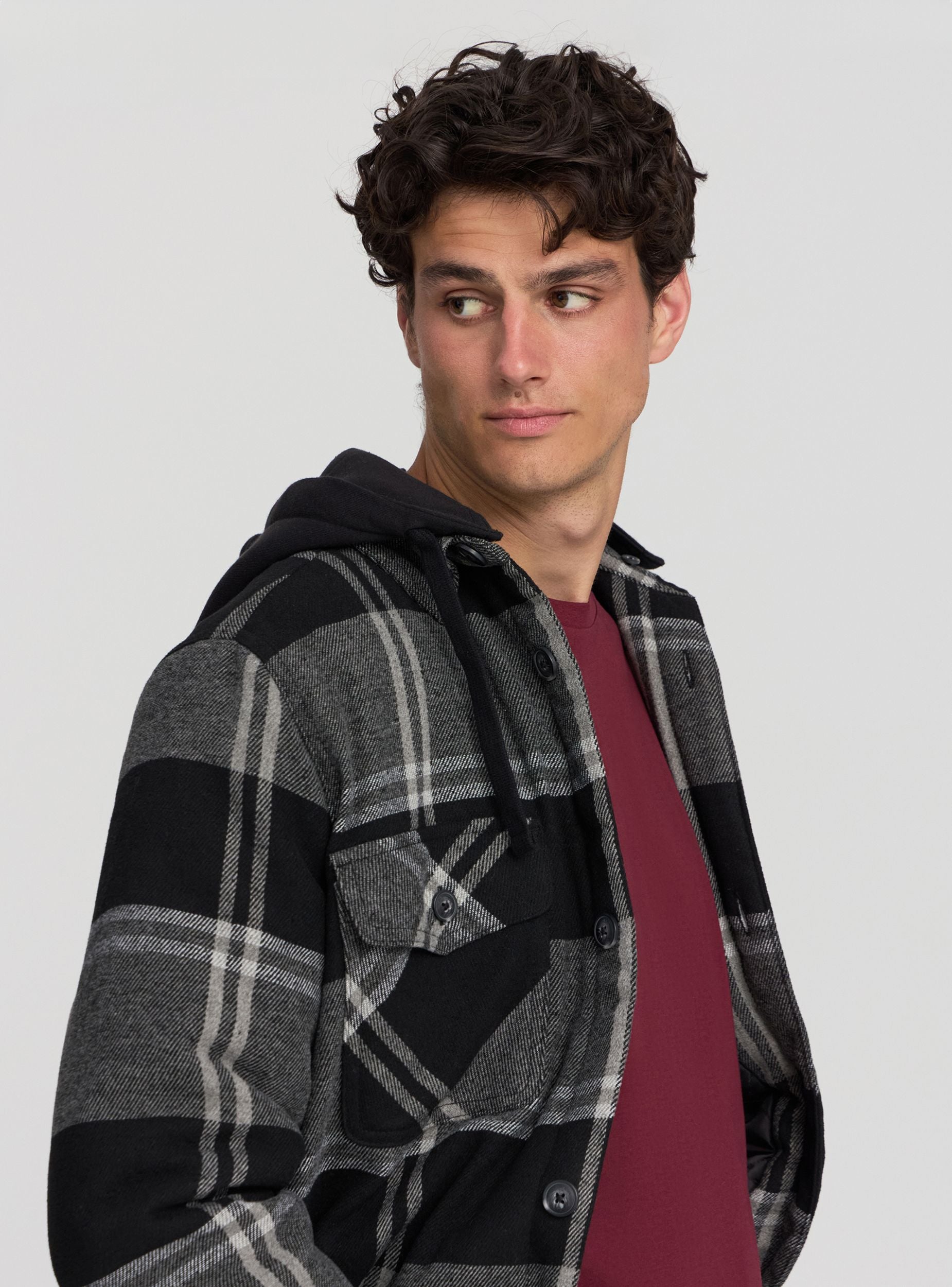 Мужская стеганая куртка с капюшоном на кулиске, идеальная для повседневного и универсального образа. Имеет клетчатый узор, который добавляет стильный акцент в дизайн. Оснащена застежкой на пуговицы, нагрудными карманами с клапанами и пуговицами, а также внутренним карманом на липучке. Эта куртка обеспечивает комфорт и удобство в более прохладные дни. Отлично сочетается с джинсами и футболками для создания повседневного образа.Детали