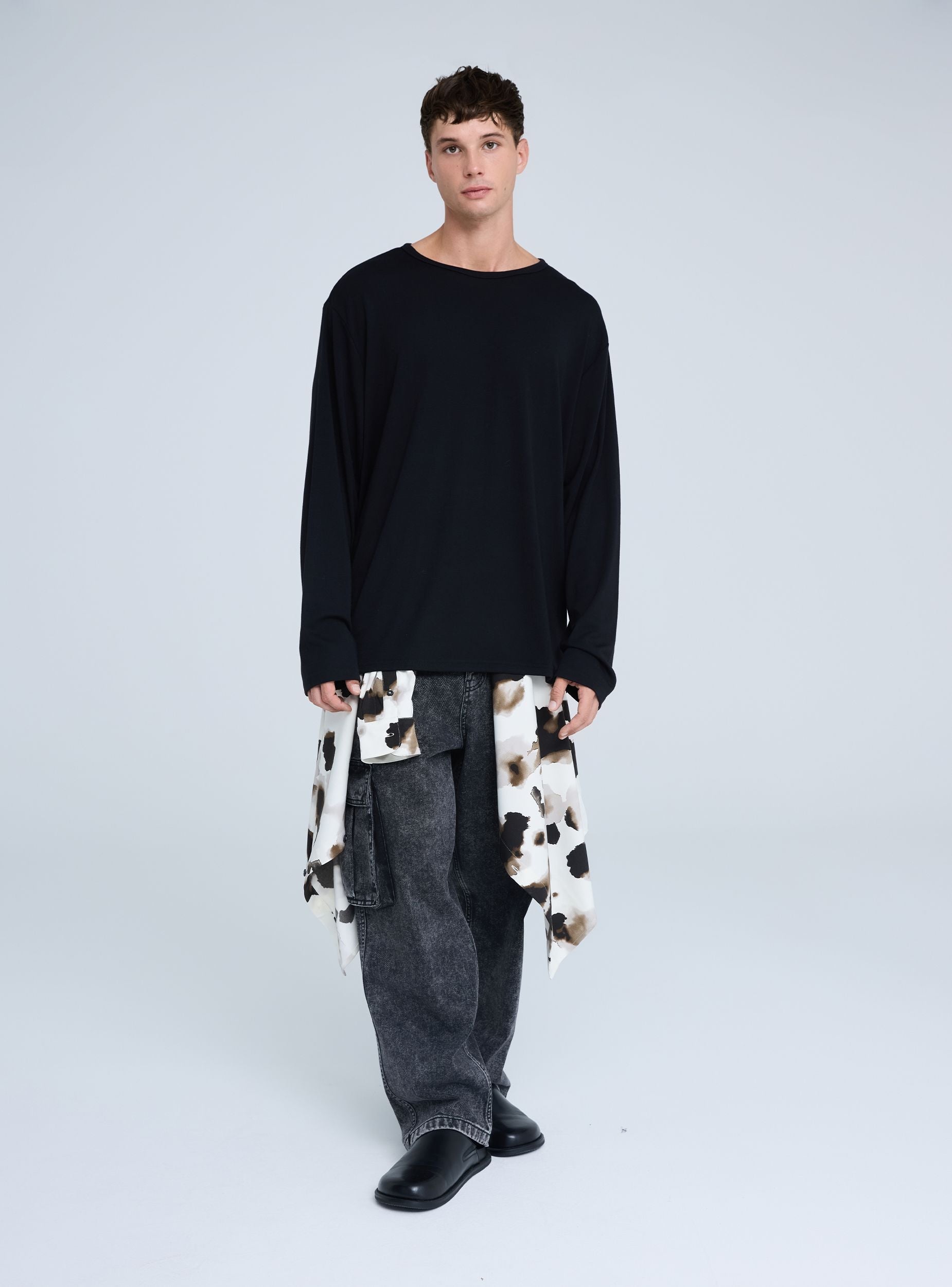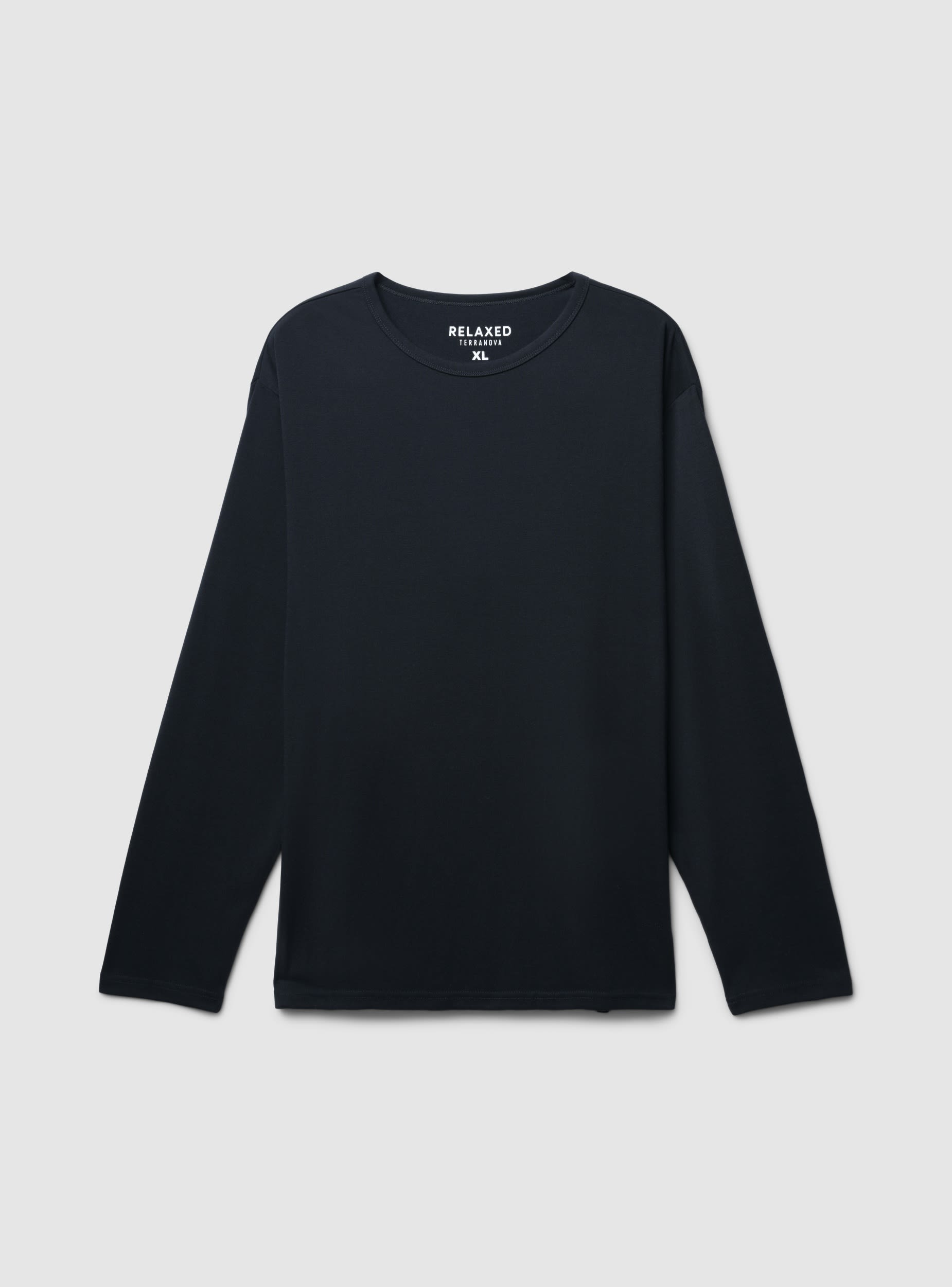Мужская футболка с длинными рукавами, характеризующаяся свободным кроем и однотонным дизайном. Идеально подходит для повседневного и универсального образа, прекрасно сочетается с джинсами или брюками чинос. Круглый вырез добавляет простоты, делая её подходящей для разных случаев — от отдыха до неформальных встреч. Важный элемент мужского гардероба.Детали