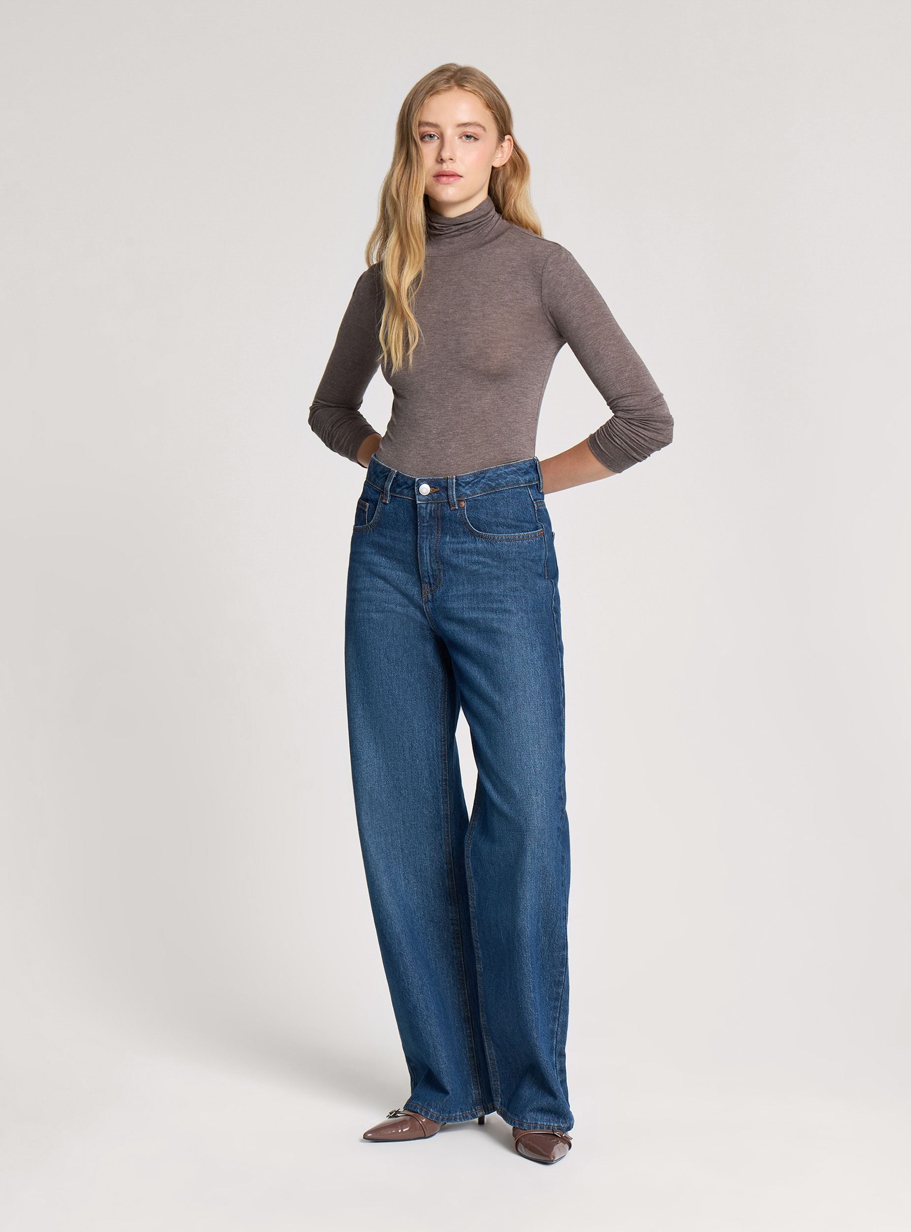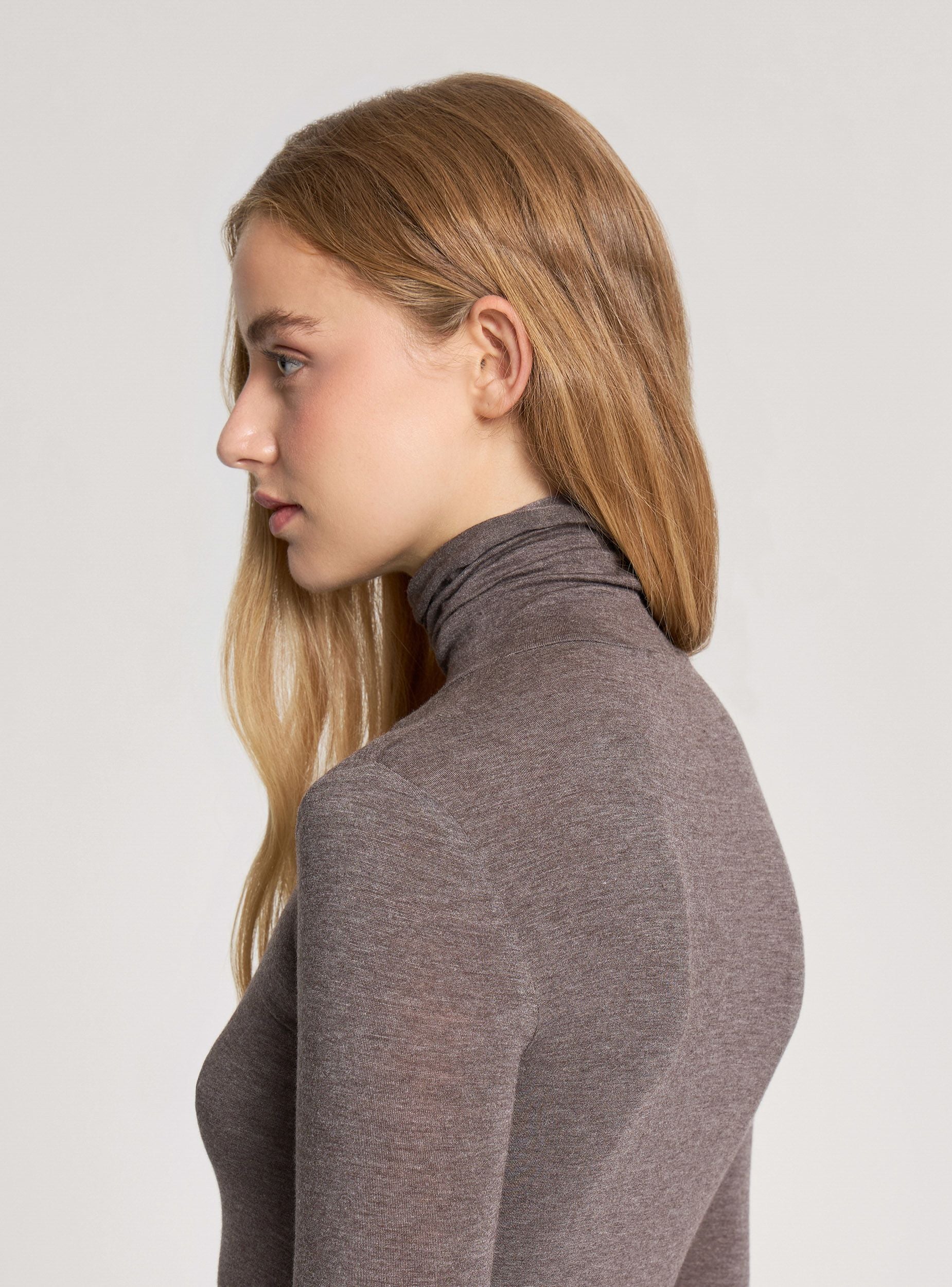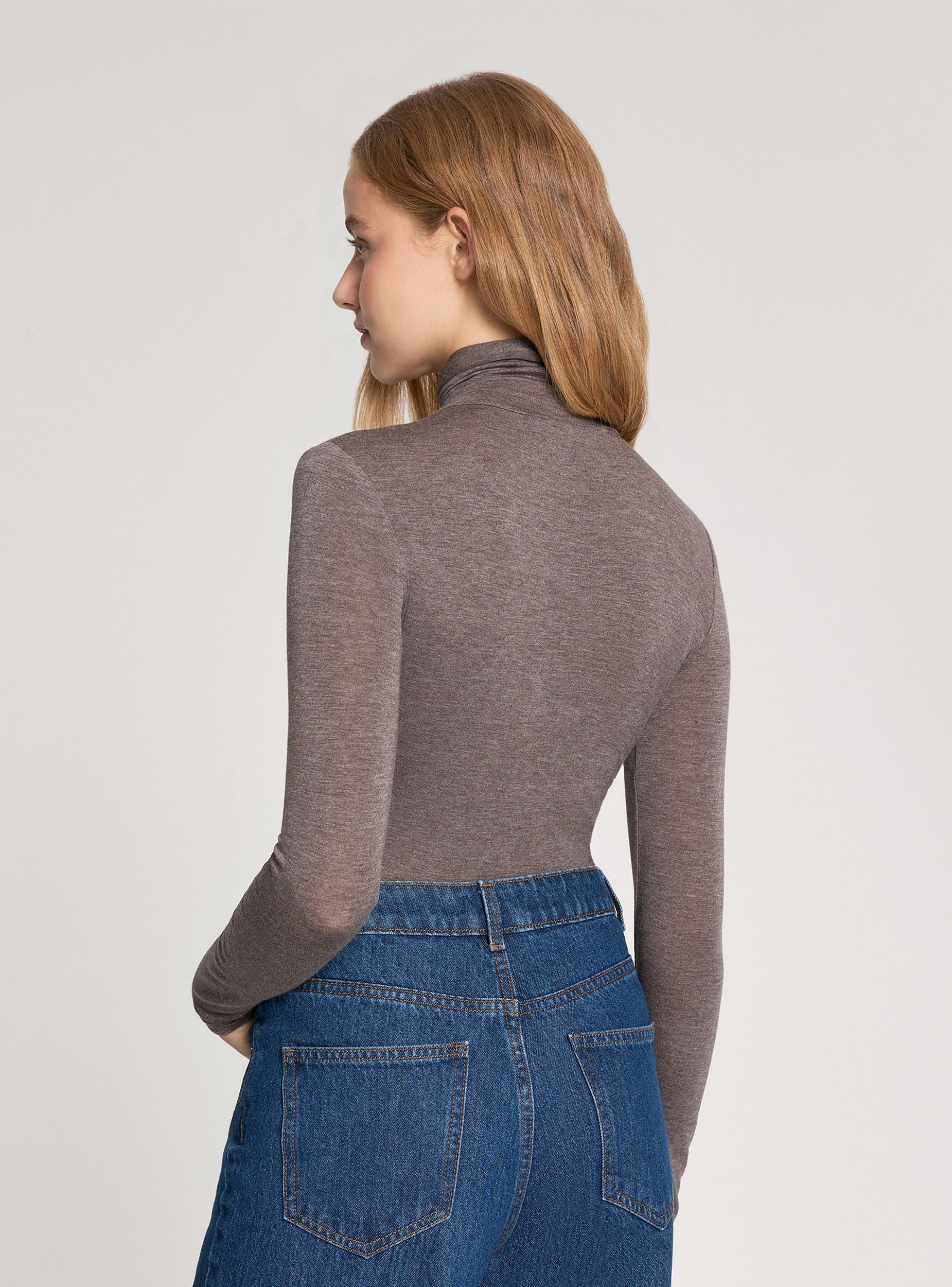Женская футболка с длинными рукавами, идеально подходит для повседневного и универсального образа. Имеет однотонный дизайн с высоким воротником, прекрасно сочетается с джинсами или юбками для повседневного наряда. Стандартный крой и мягкая ткань делают её удобной для ежедневного ношения. Незаменимая вещь в гардеробе для любого сезона.