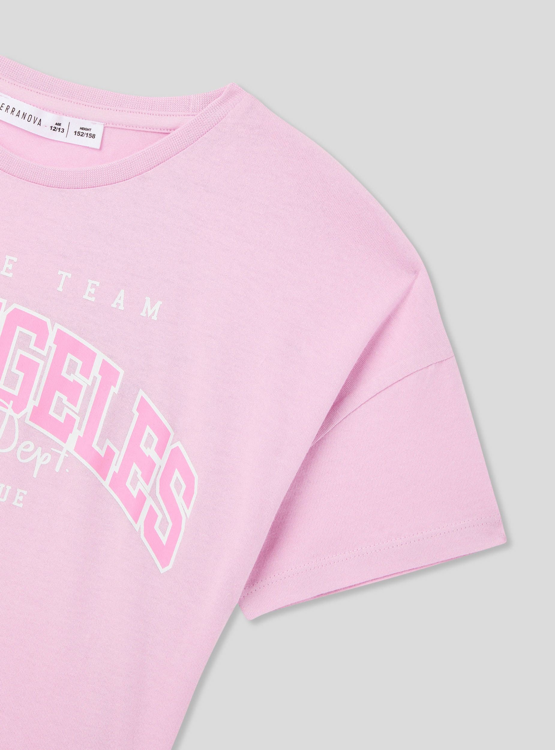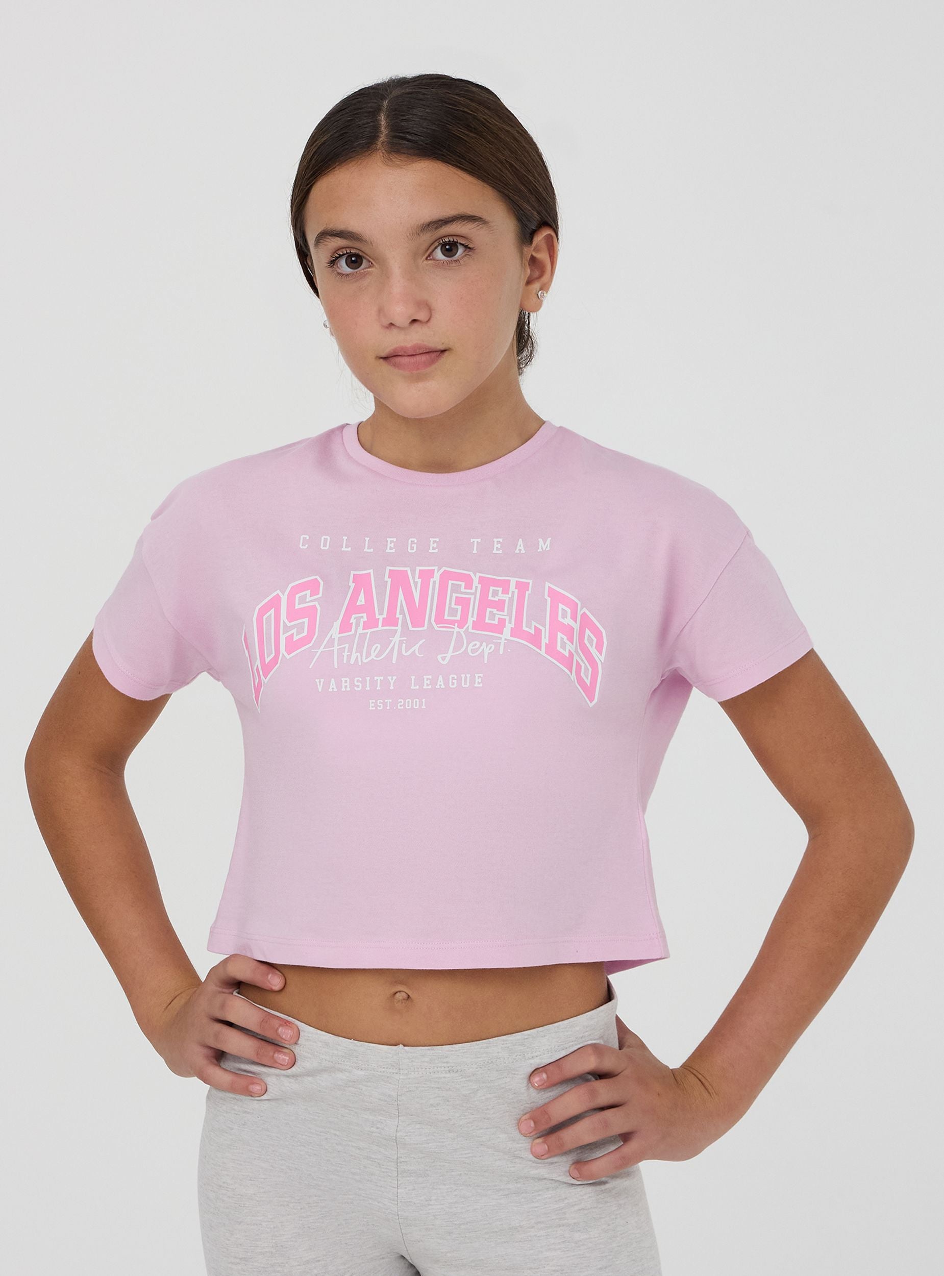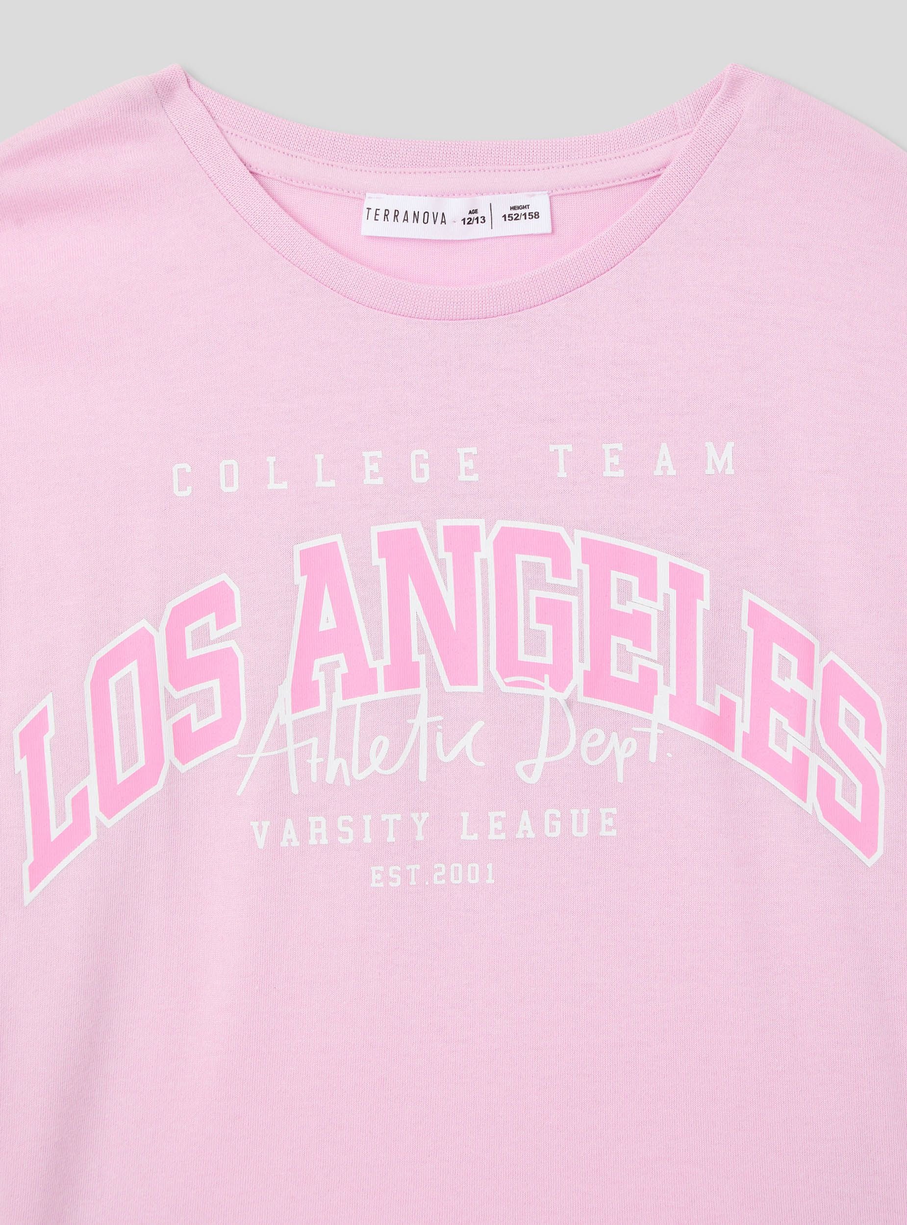 Футболка для девочек с принтом на передней стороне в американском колледжном стиле. Футболка имеет круглый вырез и короткие рукава, идеально подходит для весенних или летних дней. Дизайн делает ее легкой для сочетания как с шортами, так и с легкими длинными брюками, для повседневных или спортивных образов.Детали