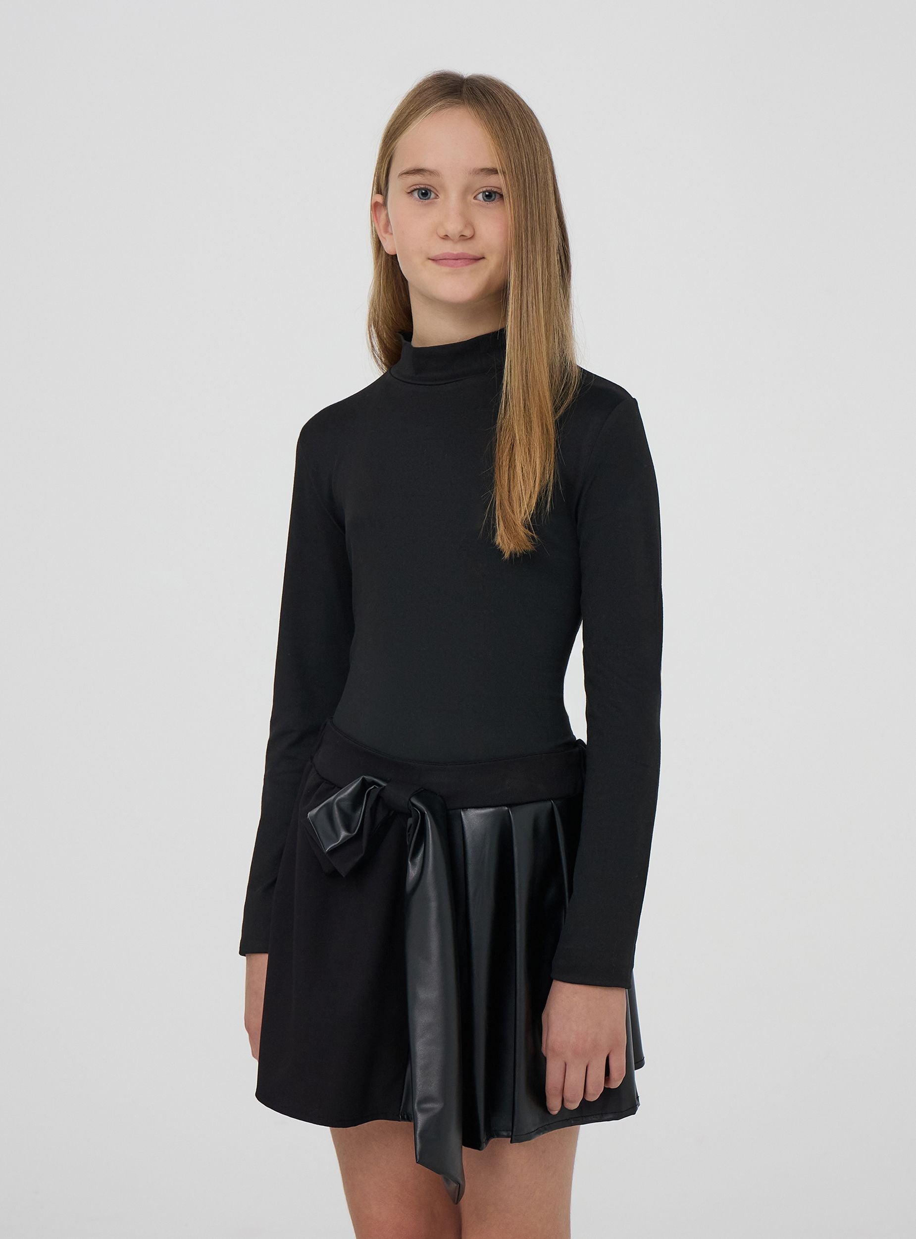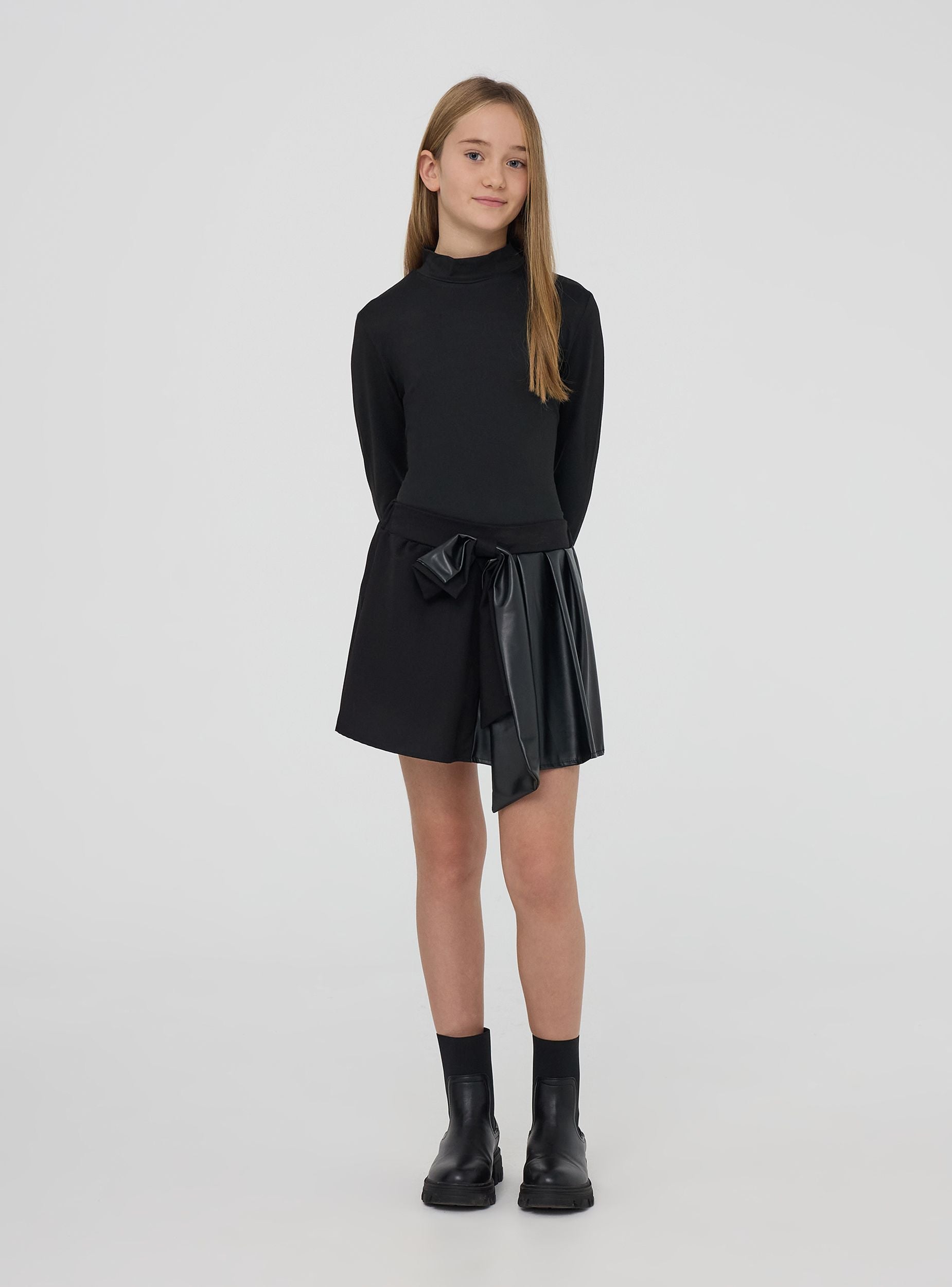 Шорты для девочек в стиле "гуманоид". Однотонная ткань из искусственной кожи. Обычная посадка.Детали