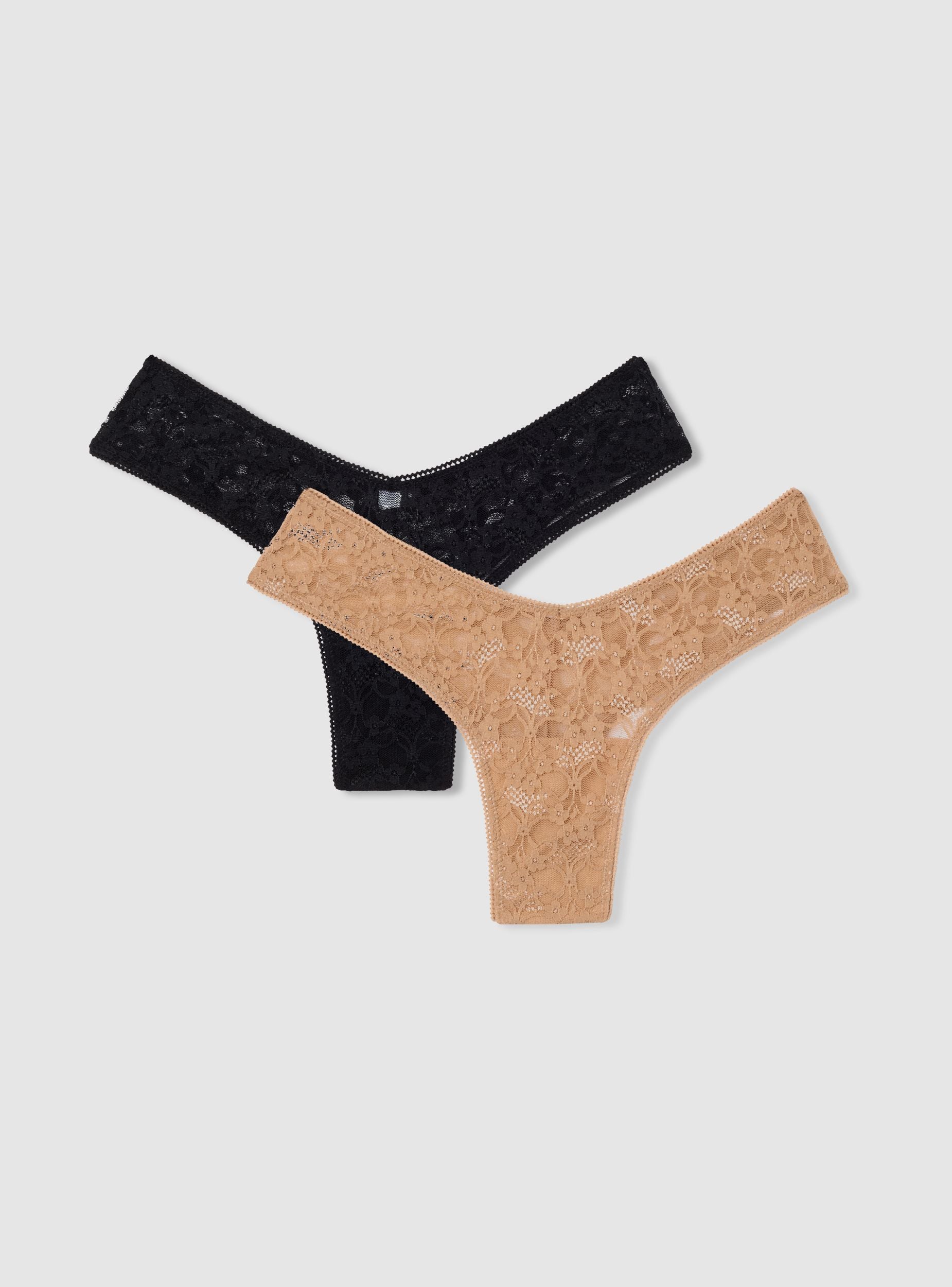Balenie obsahuje 2 dámske nohavičky s dizajnom v tvare písmena V, typ braziliana. Nohavičky ideálne pre ženský a sofistikovaný vzhľad. Vyrobené z čipky, ponúkajú pohodlné a zmyselné nosenie. Perfektné na nosenie pod priliehavé šaty alebo na špeciálne príležitosti. Braziliana zvýrazňuje tvary, zatiaľ čo čipka pridáva nádych elegancie. Univerzálny a rafinovaný kúsok do spodnej bielizne.Detaily