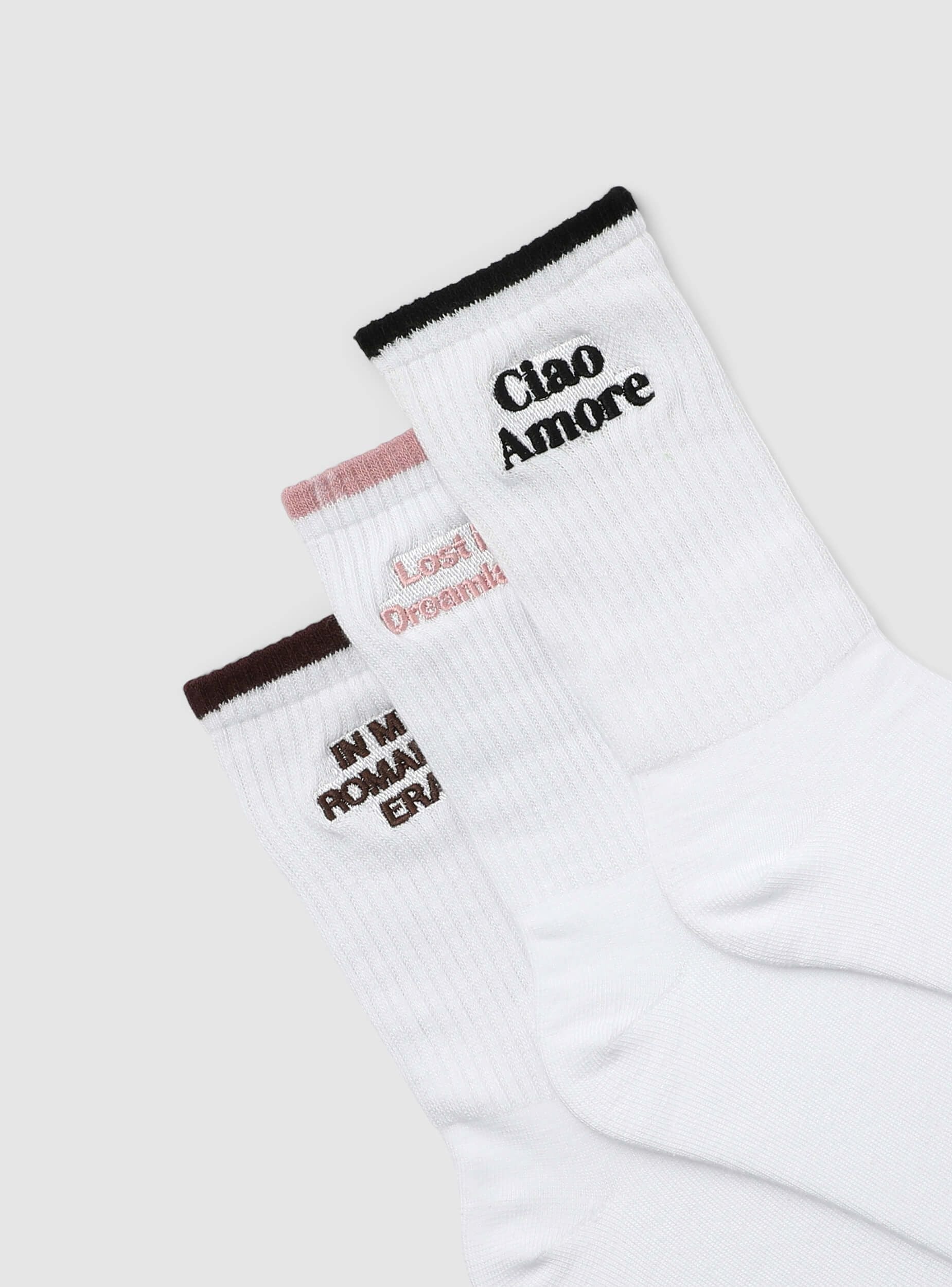 Balenie 3 párov ponožiek s nápismi a rebrovaným vzorom