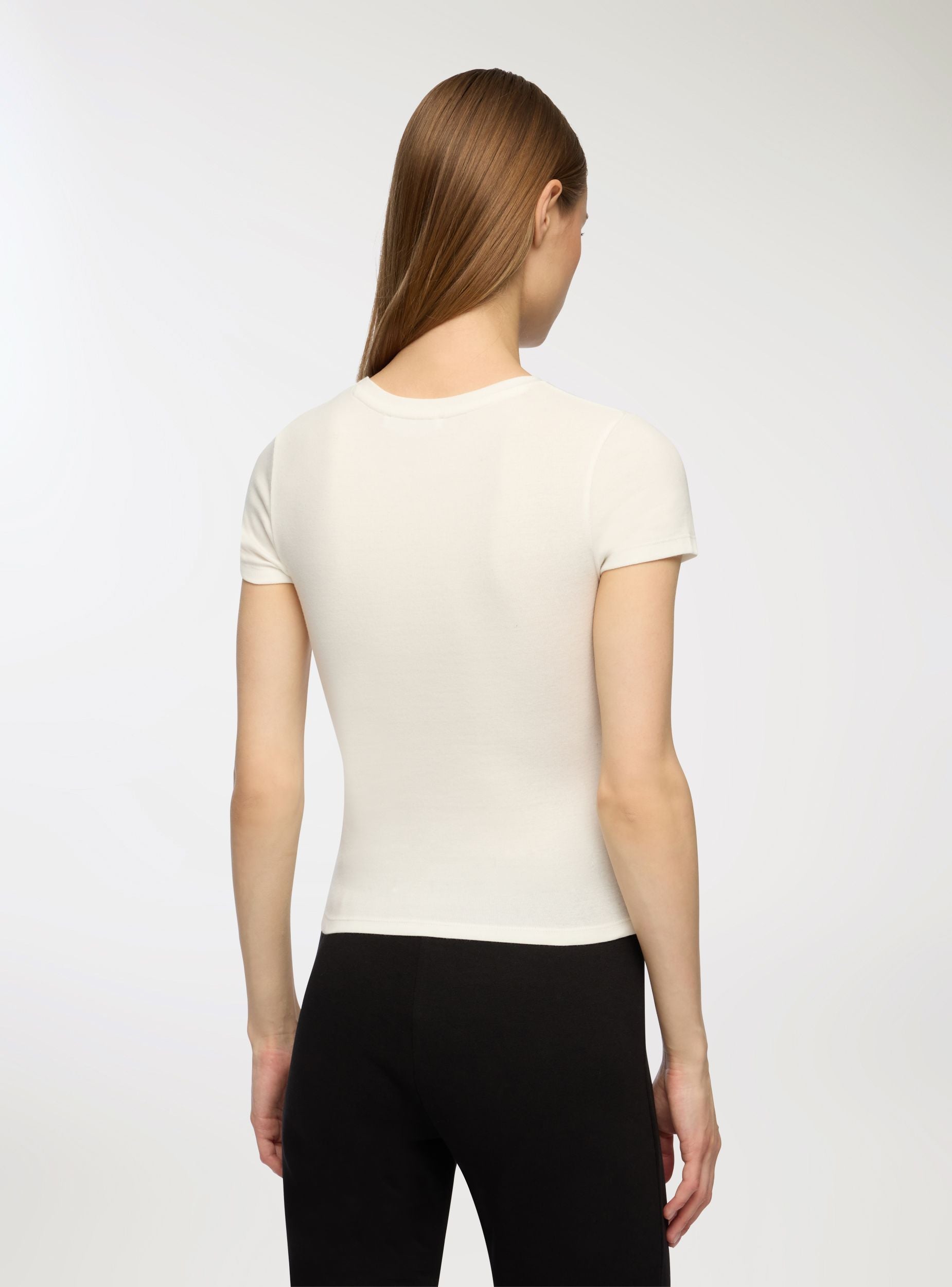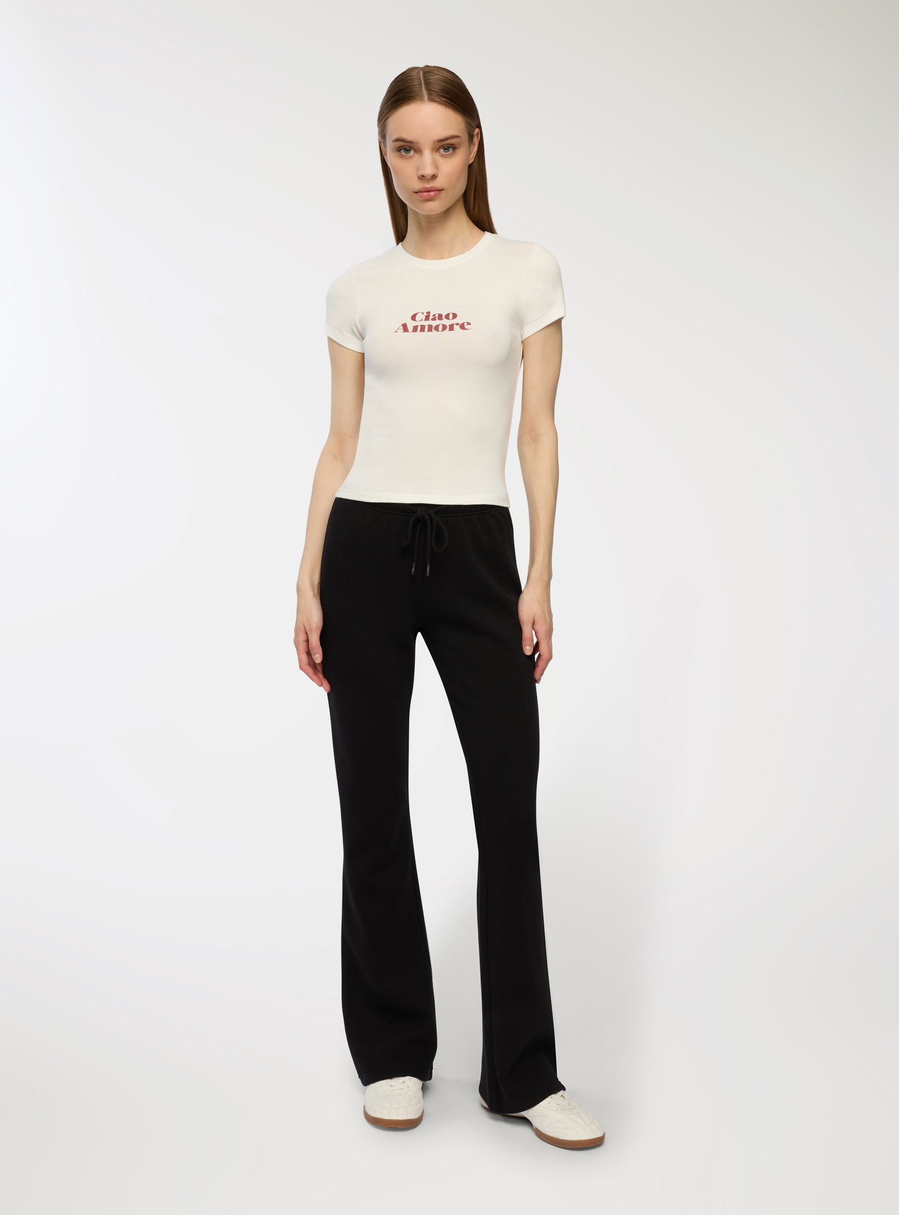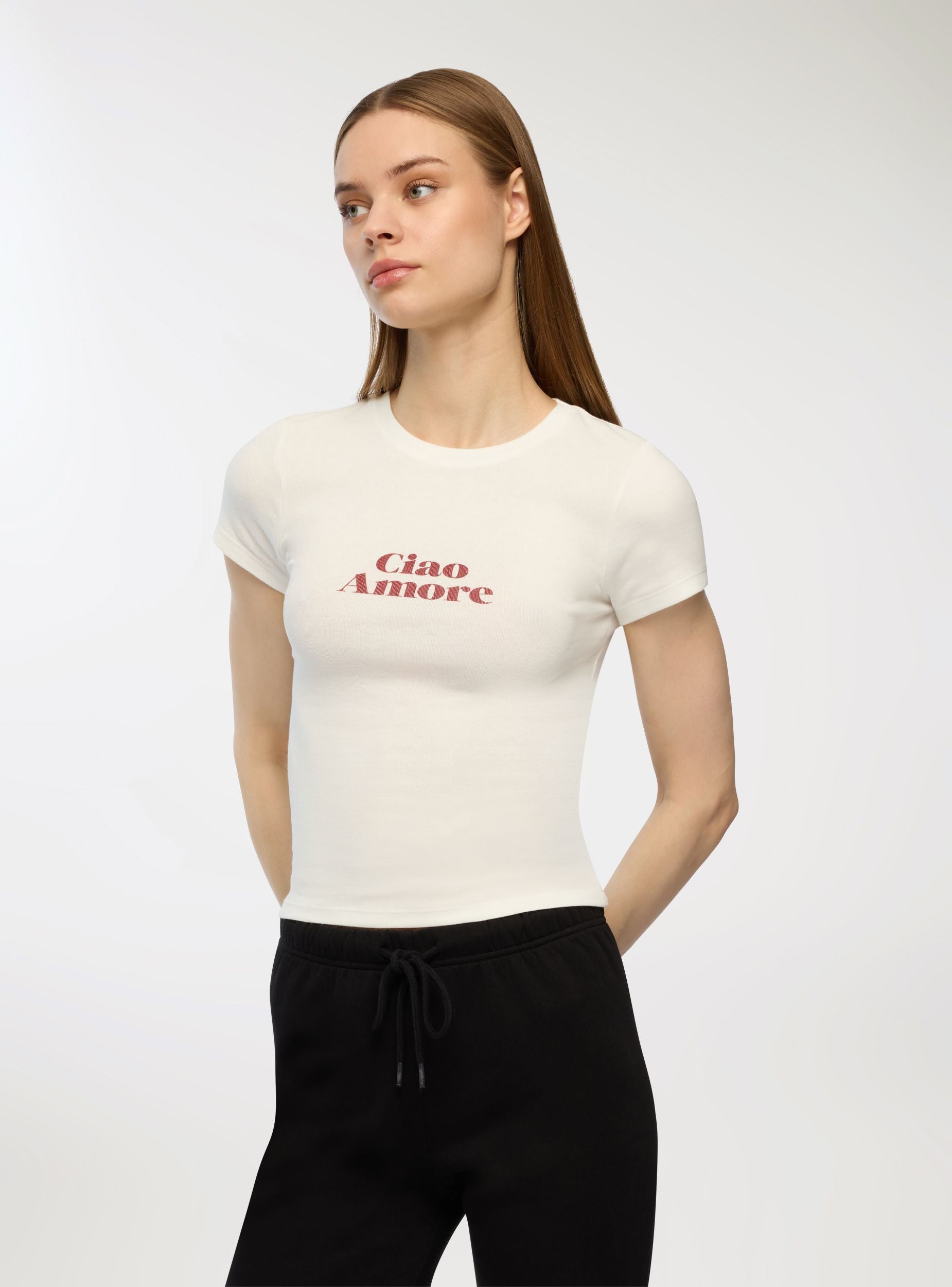 Dámske tričko s priliehavým strihom, ktoré je ozdobené dekoratívnym nápisom na prednej strane. Ideálne pre ležérny a moderný vzhľad, dokonale sa hodí k džínsom alebo športovým nohaviciam. Jednoduchý dizajn a priliehavý strih z neho robia univerzálny kúsok vhodný na rôzne príležitosti, od voľného času až po neformálne vychádzky.