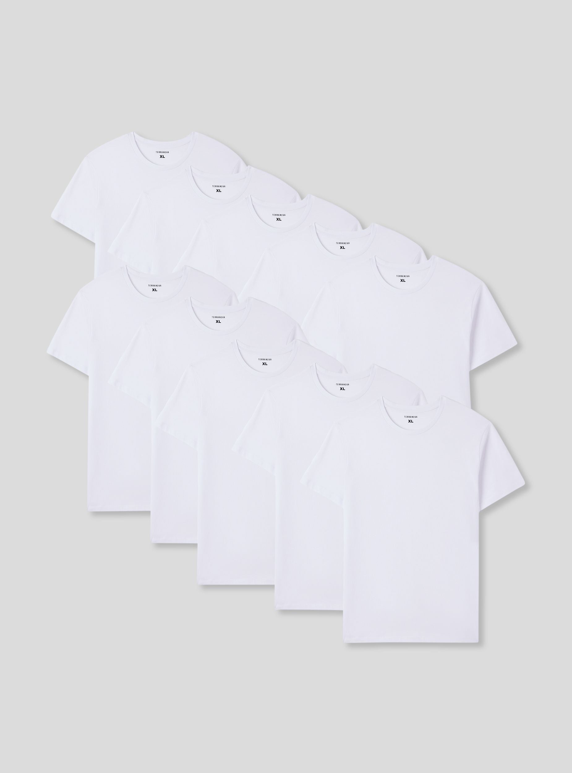 Balenie pozostávajúce z 10 pánskych tričiek jednofarebných. Model s okrúhlym výstrihom a krátkymi rukávmi. Perfektné na doplnenie ležérnych outfitov. Základný kúsok, ktorý sa ľahko prispôsobí akémukoľvek spojeniu vďaka jednofarebnému dizajnu.