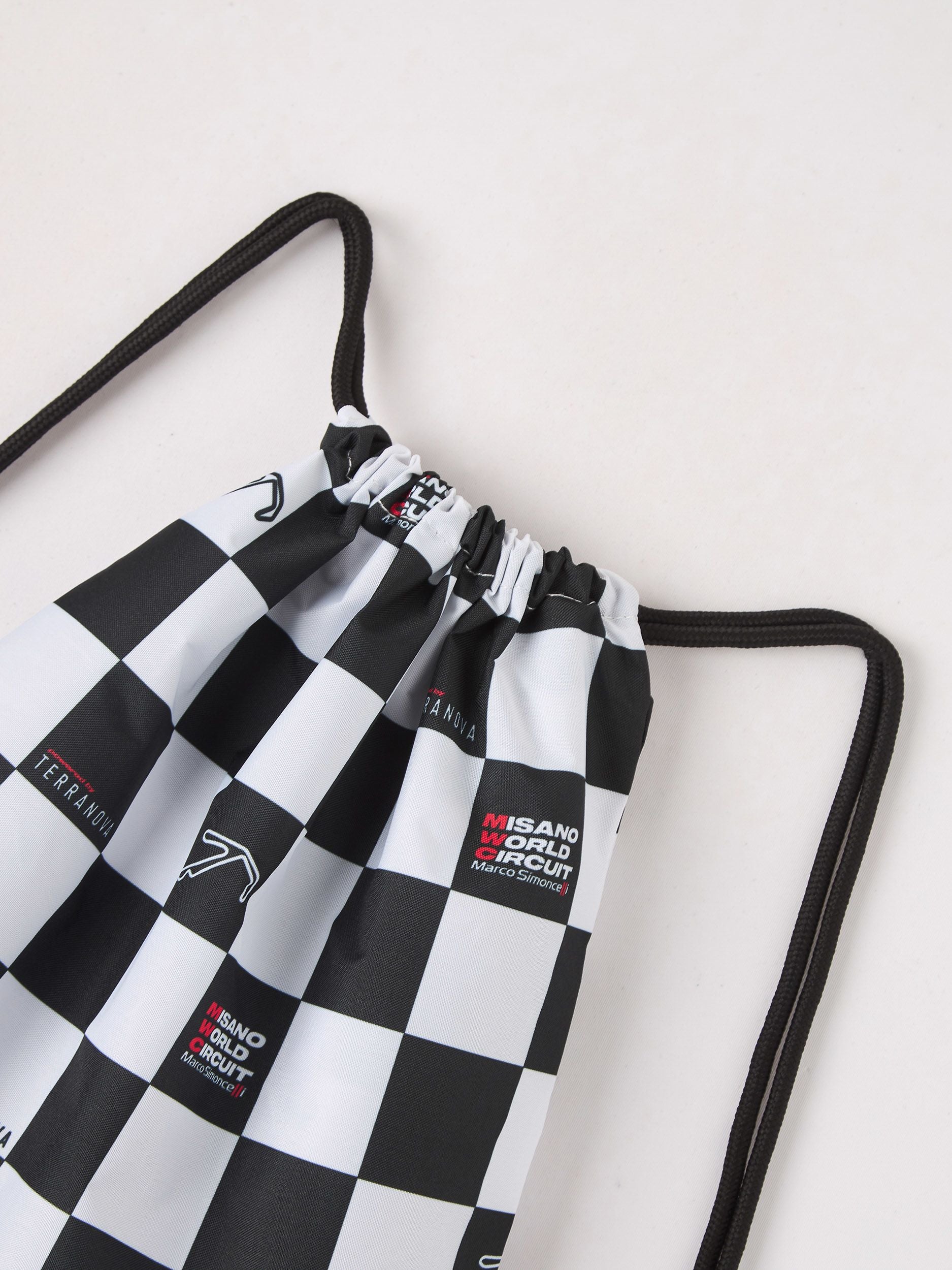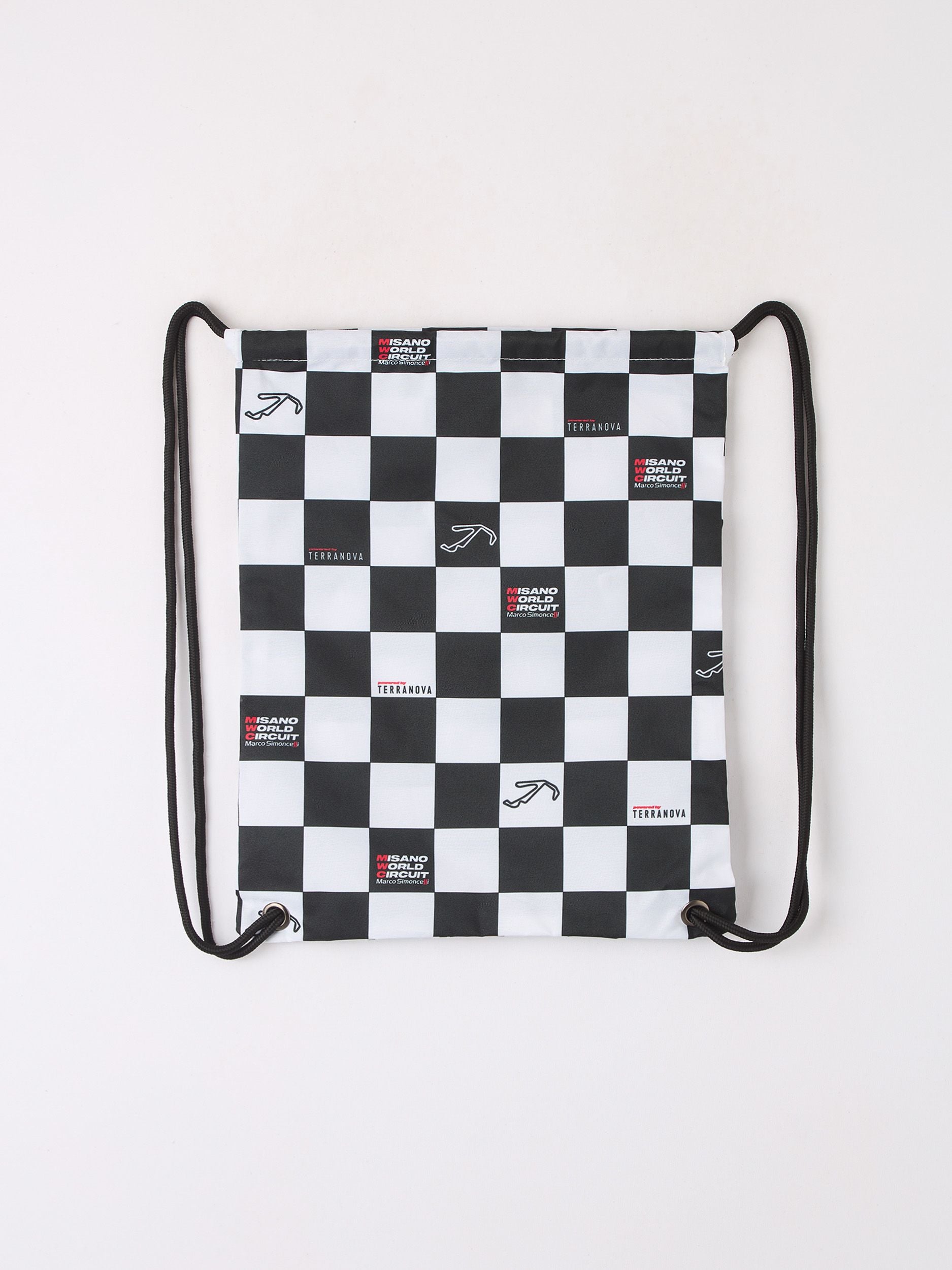 Batoh s taškou v kockovanej štýlovej vzore a logom Misano World Circuit. Rozmery: Výška 43 cm, Dĺžka 35 cm.