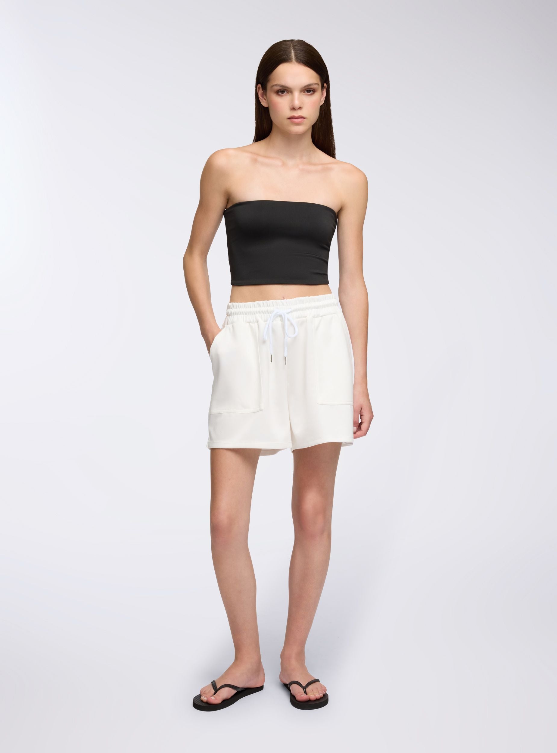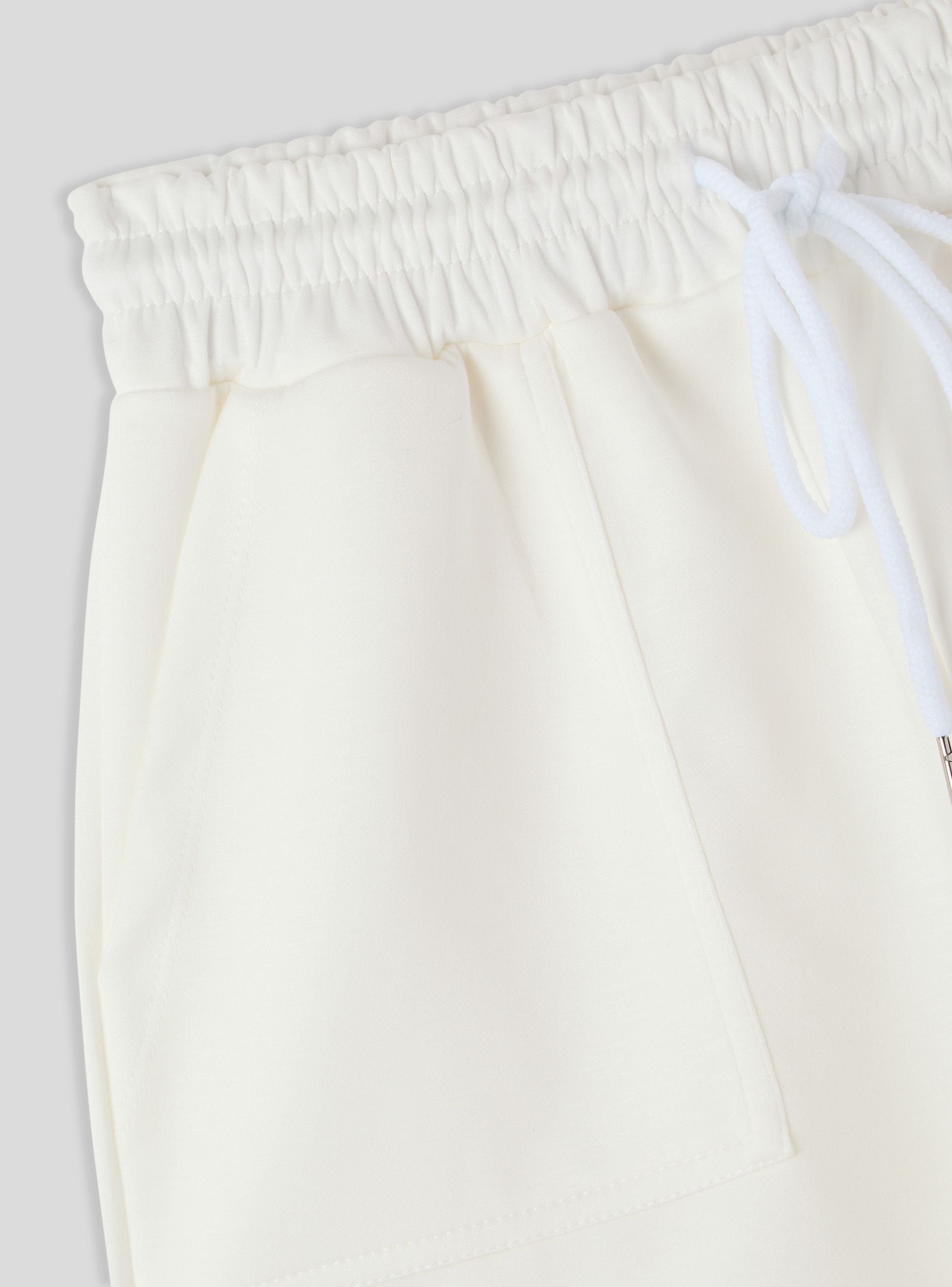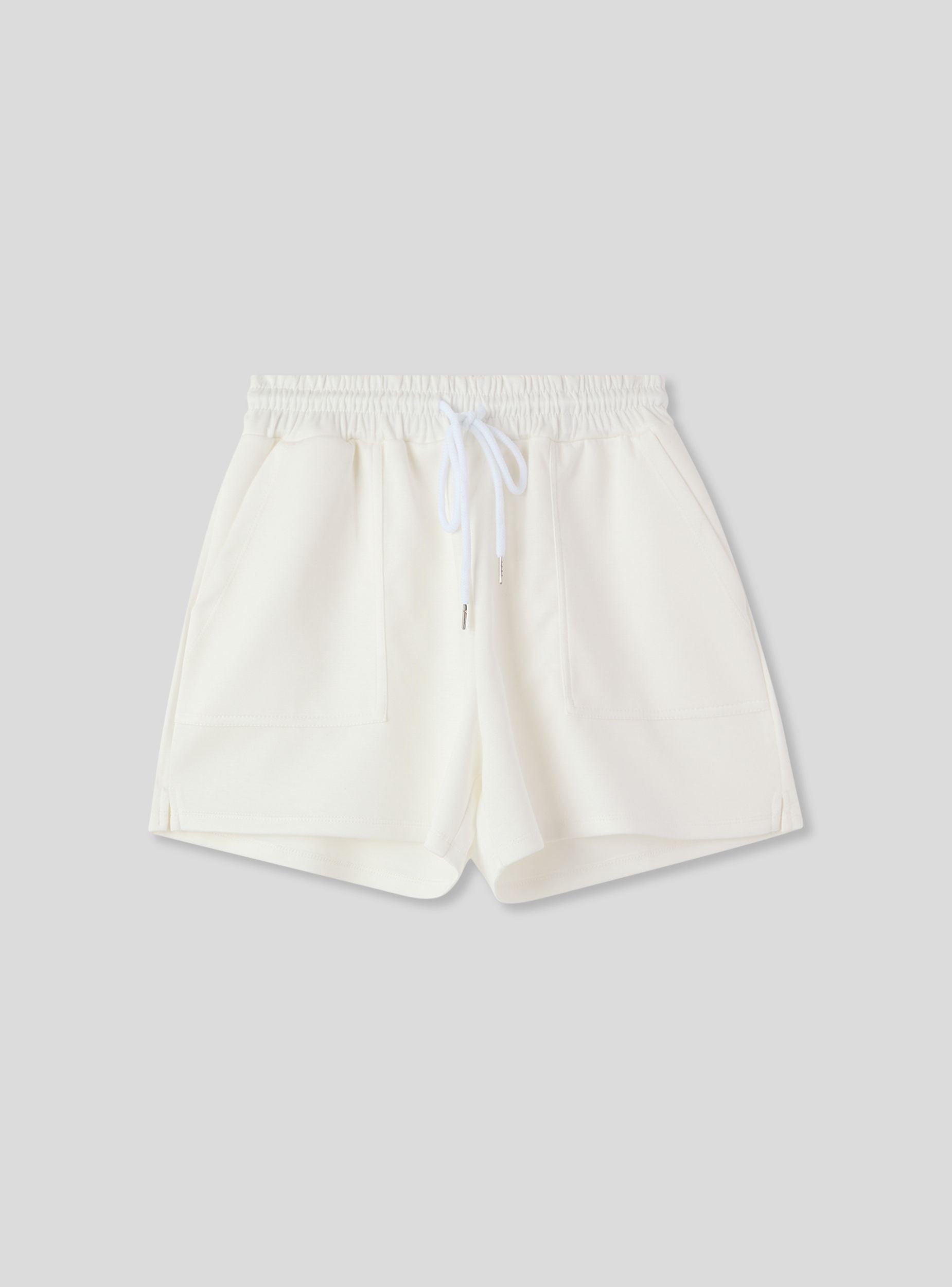 Ľahké dámske teplákové šortky ideálne pre ležérny a pohodlný vzhľad. Majú nastaviteľnú šnúrku v páse pre prispôsobiteľné nosenie a našité vrecká. Ideálne na voľný čas, ľahko sa kombinujú s tričkami a teniskami pre uvoľnený outfit. Krátka bermuda dĺžka a jednoliaty dizajn ich robia všestrannými a vhodnými na rôzne neformálne príležitosti.Detaily