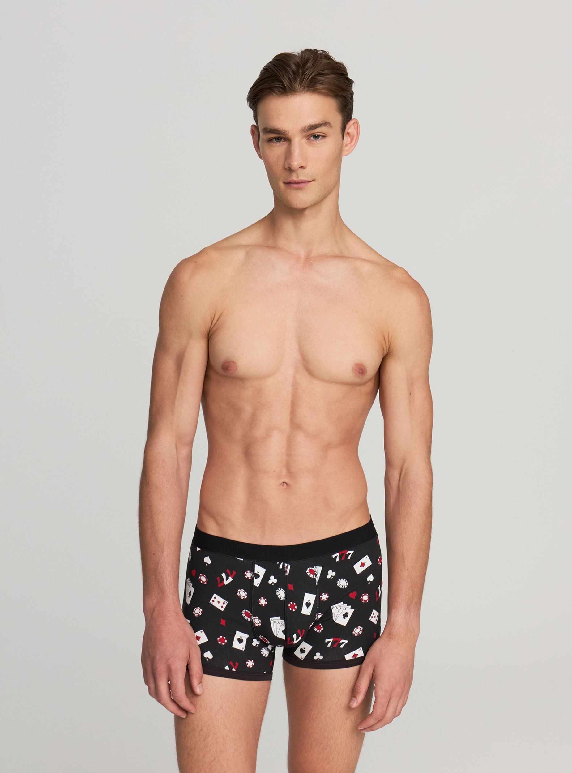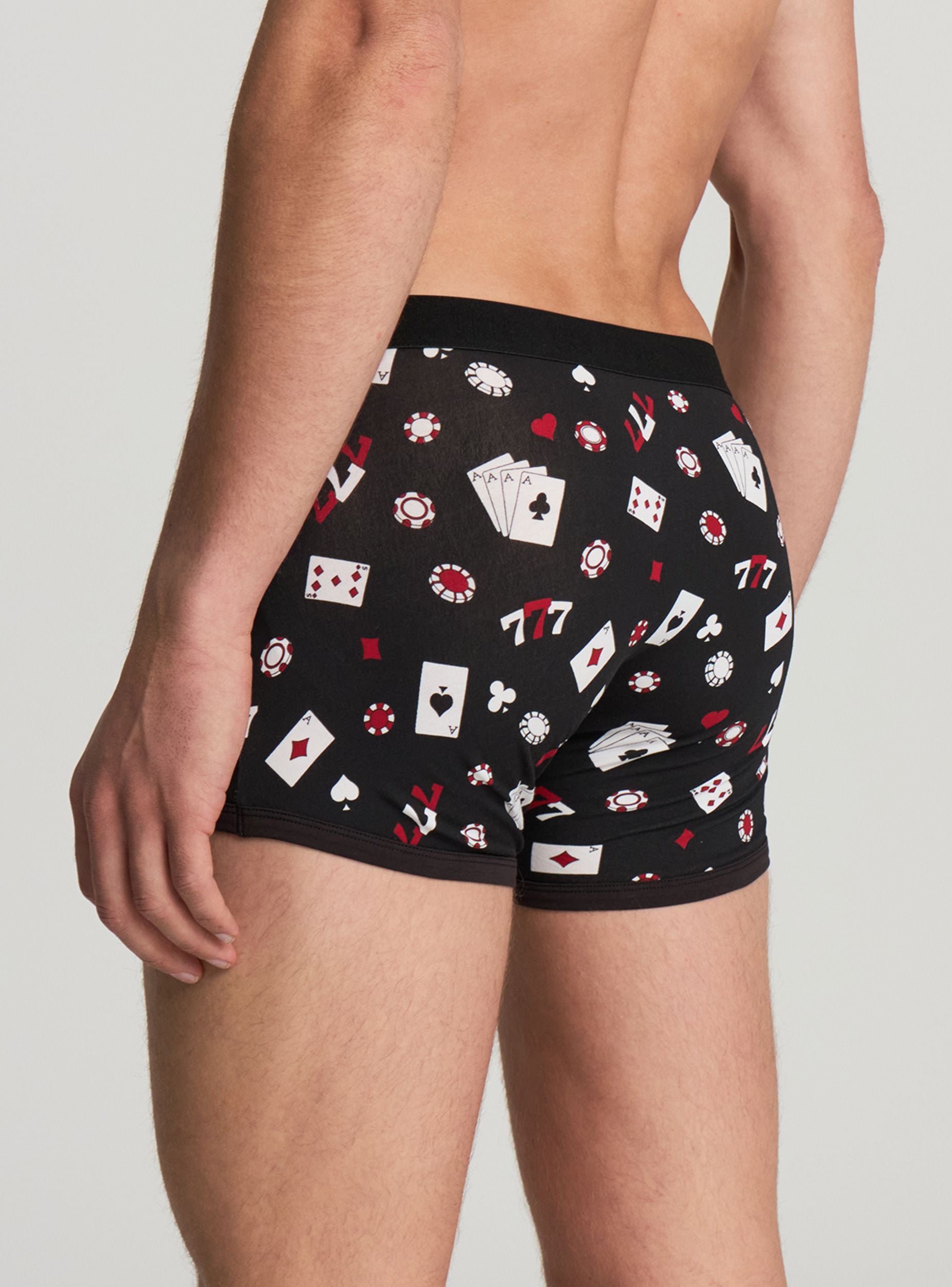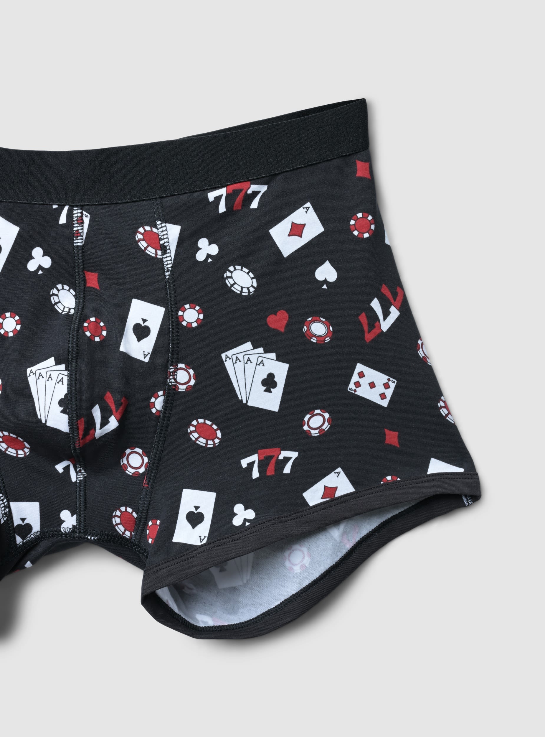 Pánske boxerky s výrazným vzorom inšpirovaným kartovými hrami. Ideálne pre neformálny a pohodlný vzhľad, poskytujú pohodlné nosenie vďaka elastickému materiálu. Perfektné na každodenné použitie, kombinujú praktickosť a moderný štýl.