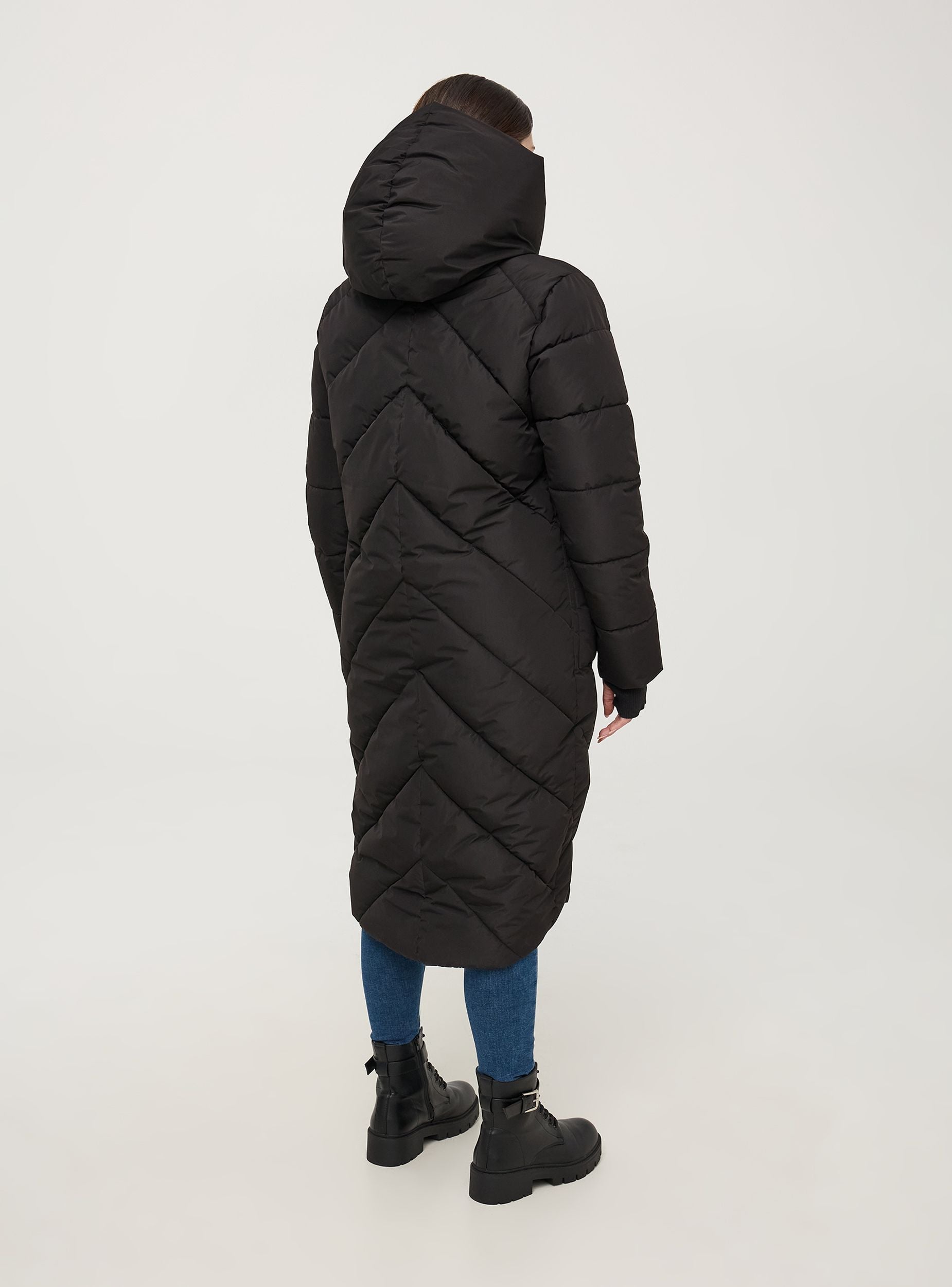 Dlhá polstrovaná bunda s chevrónovým vzorom