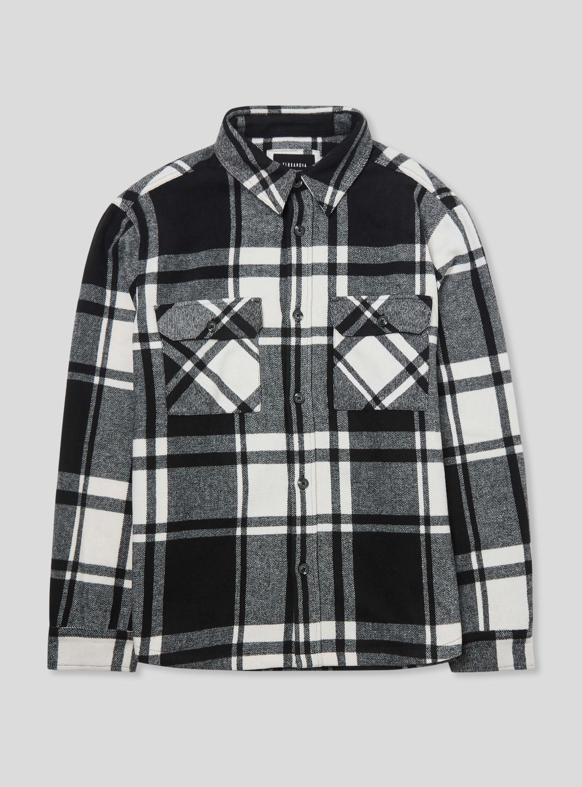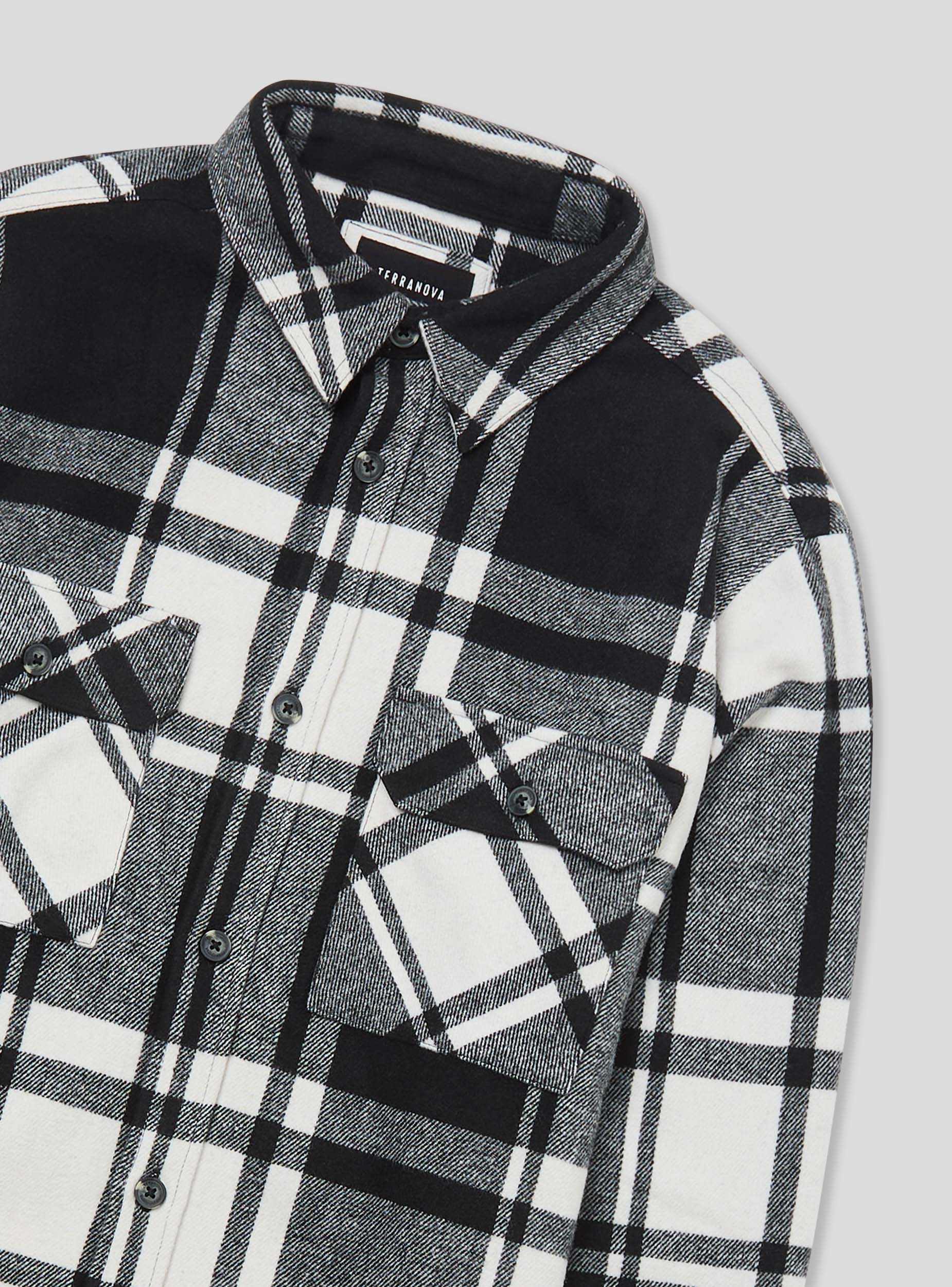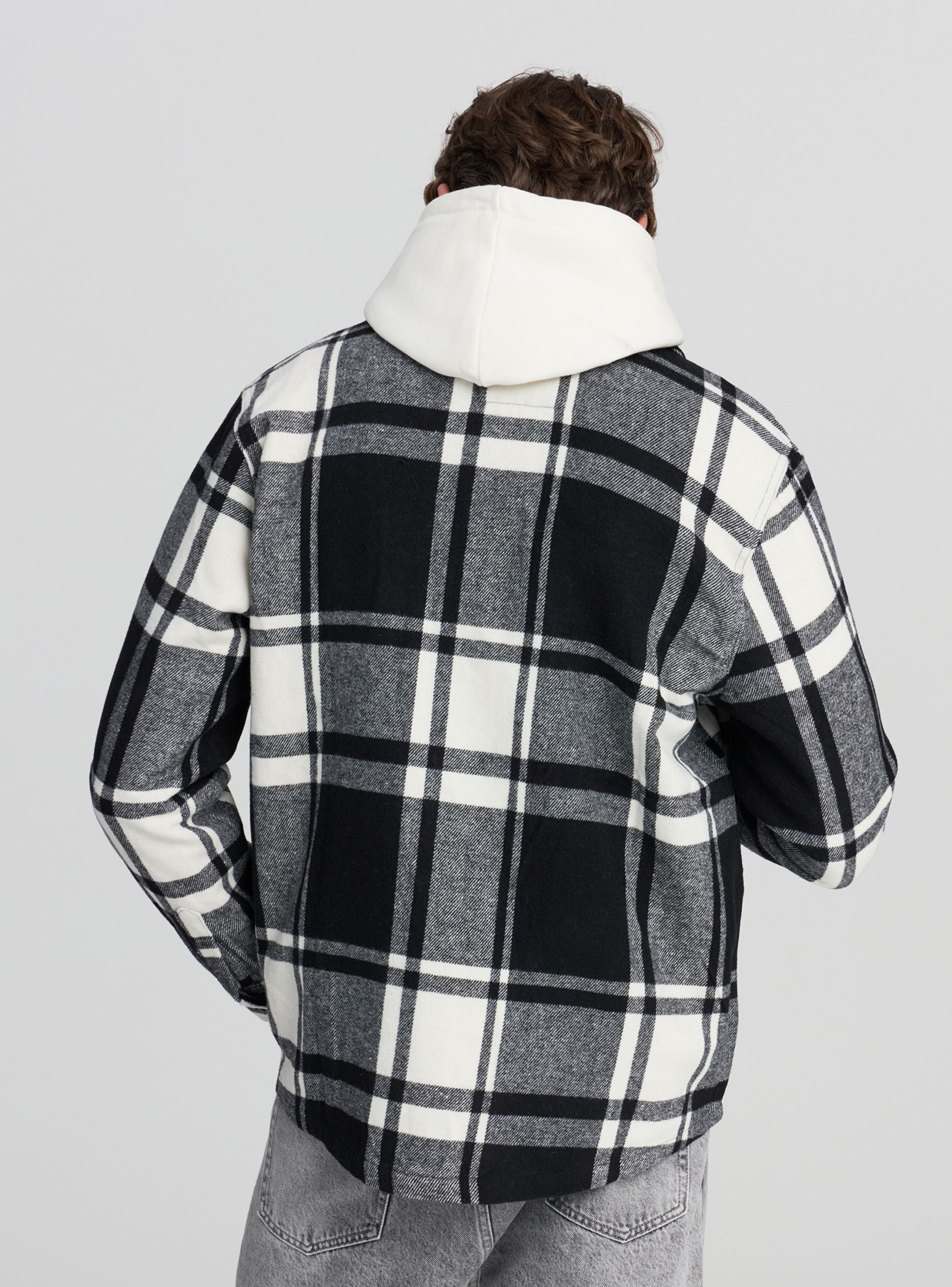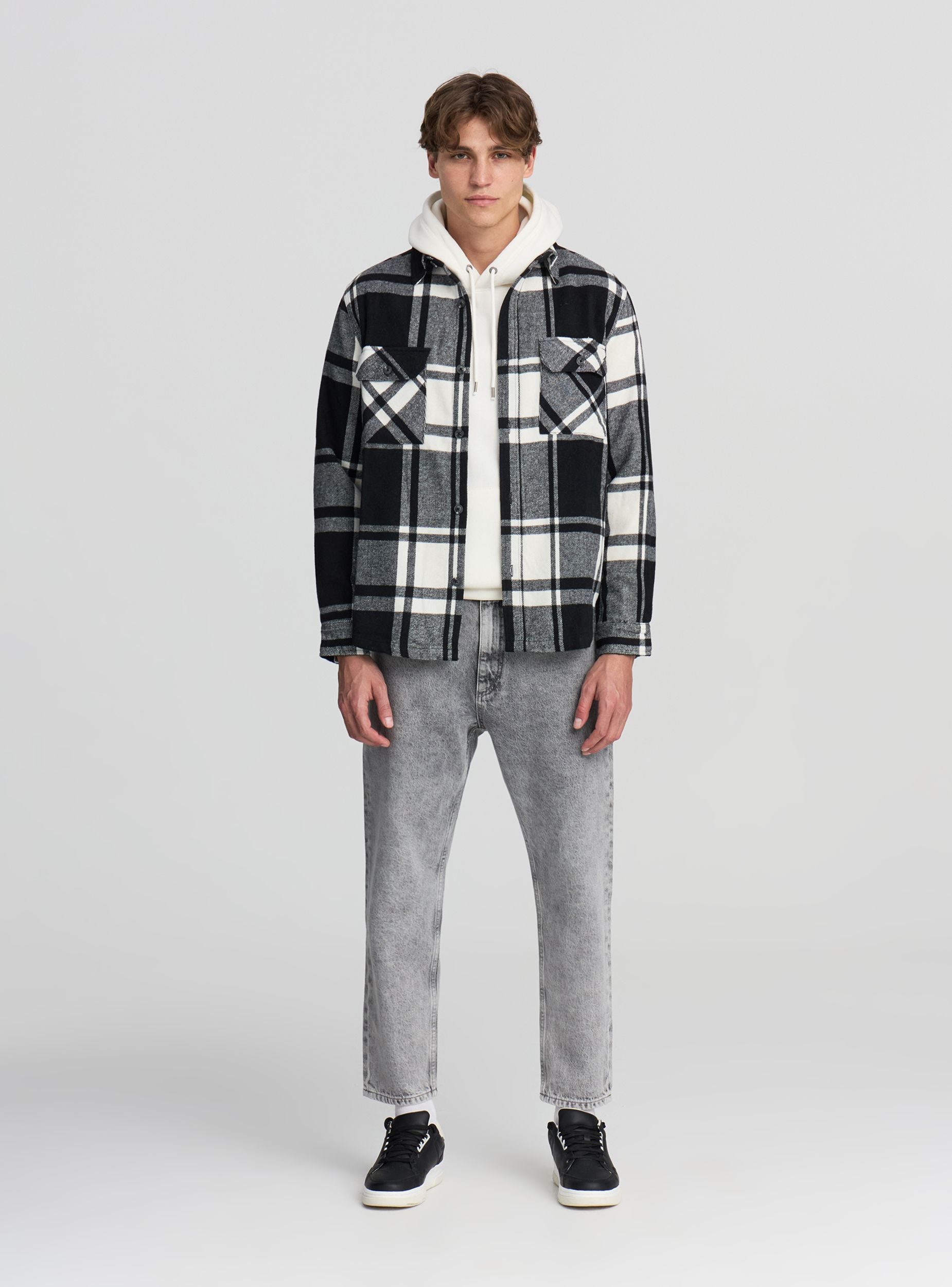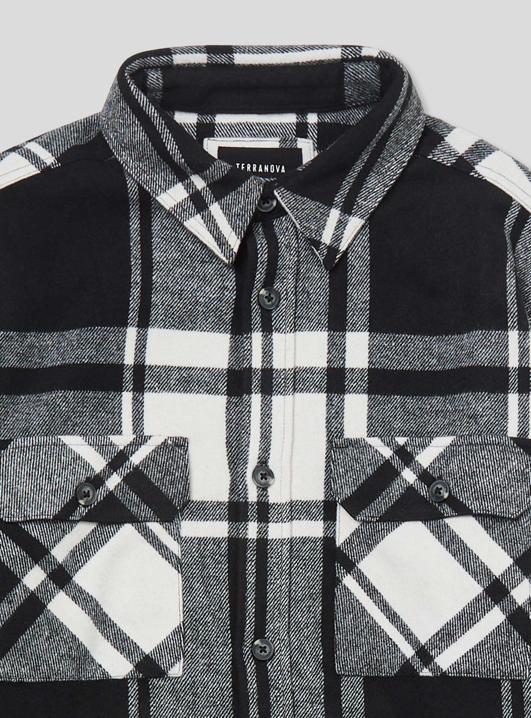 Pánska flanelová košeľa shacket s kockovaným vzorom. Má tradičný golier a predné zapínanie na gombíky. Košeľa je vybavená dvoma náprsnými vreckami s klopou, ktoré sú tiež zapínané na gombíky. Dlhé rukávy končia manžetami zapínanými na gombíky. Táto košeľa je ideálna na neformálny, ale upravený vzhľad.Detaily