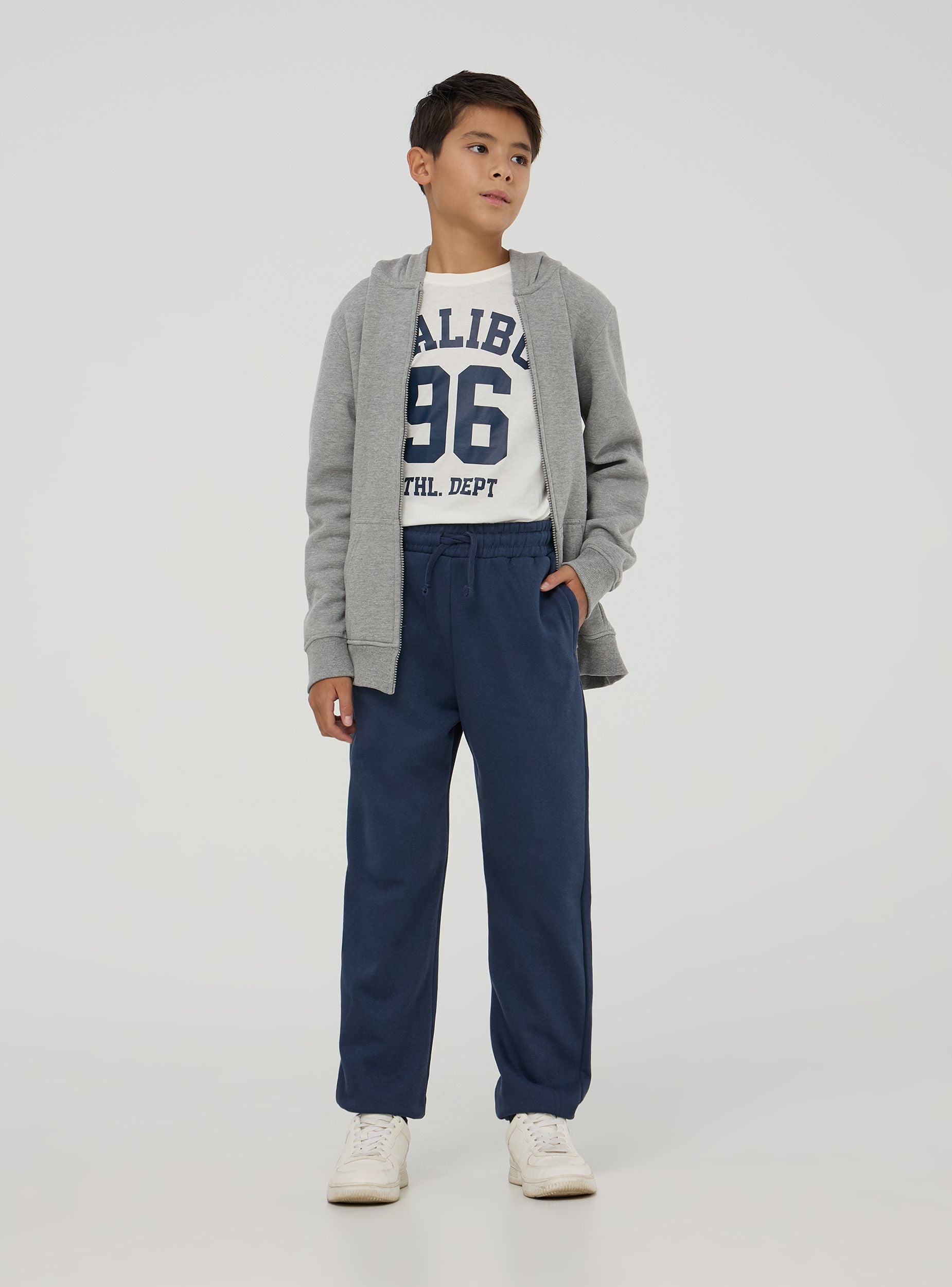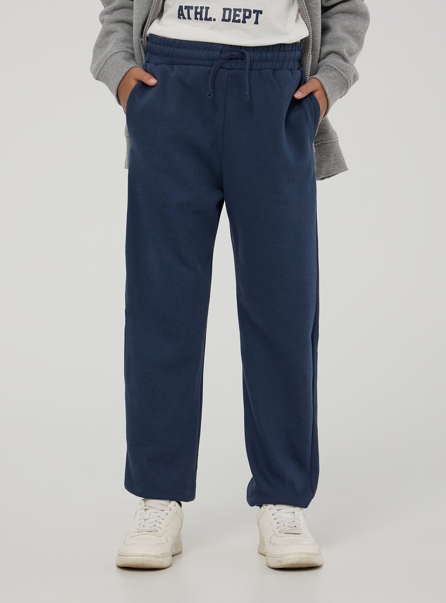 Teplákové nohavice navrhnuté pre deti v jednofarebnom prevedení ponúkajú výnimočný komfort a bezchybné ležérne štýlovanie. Elastický pás s šnúrkou zabezpečuje nastaviteľné nosenie, zatiaľ čo elastické členky dodávajú moderný vzhľad. Sú vybavené praktickými bočnými vreckami. Ideálne na každodenné nosenie.Detaily