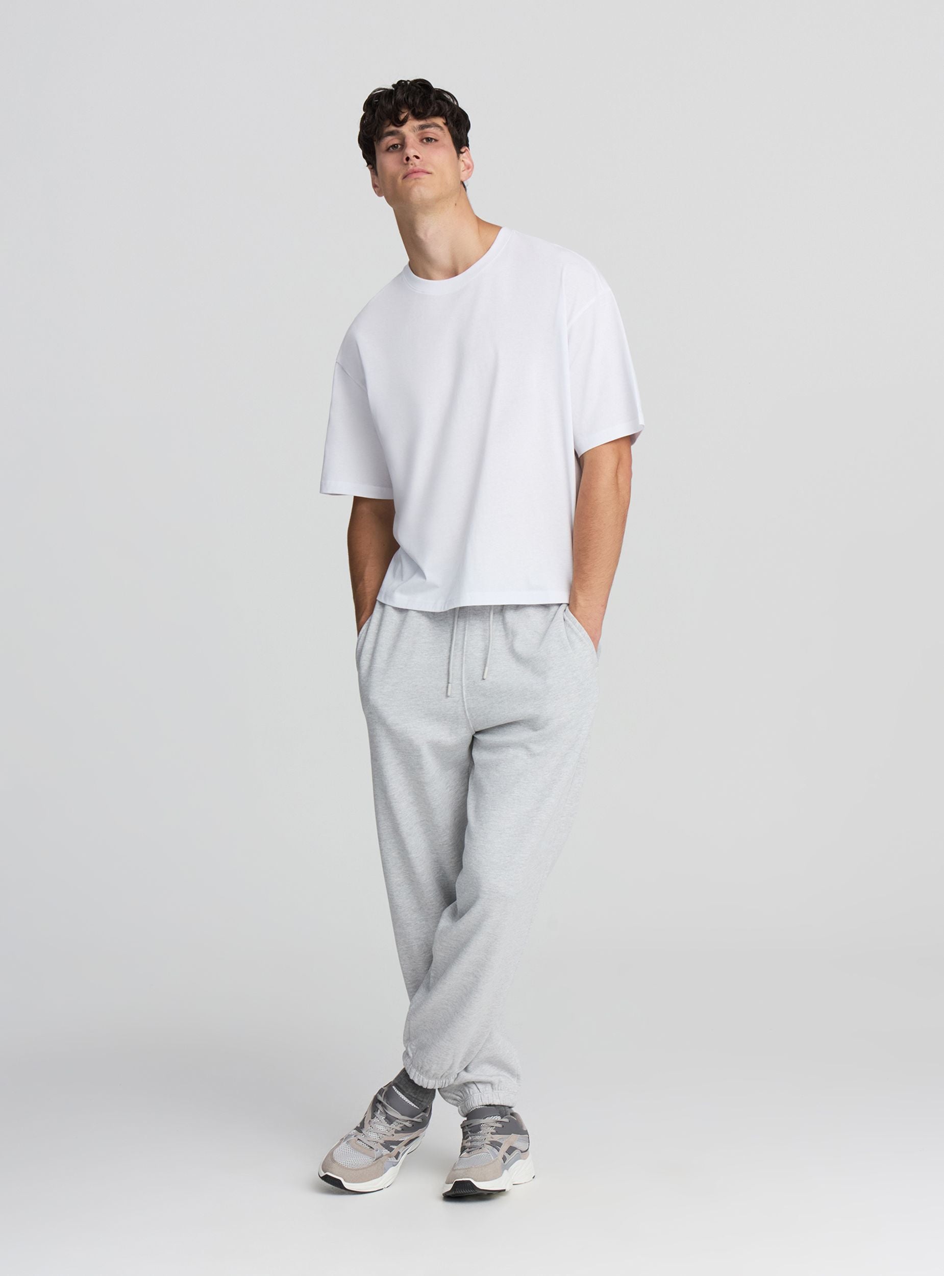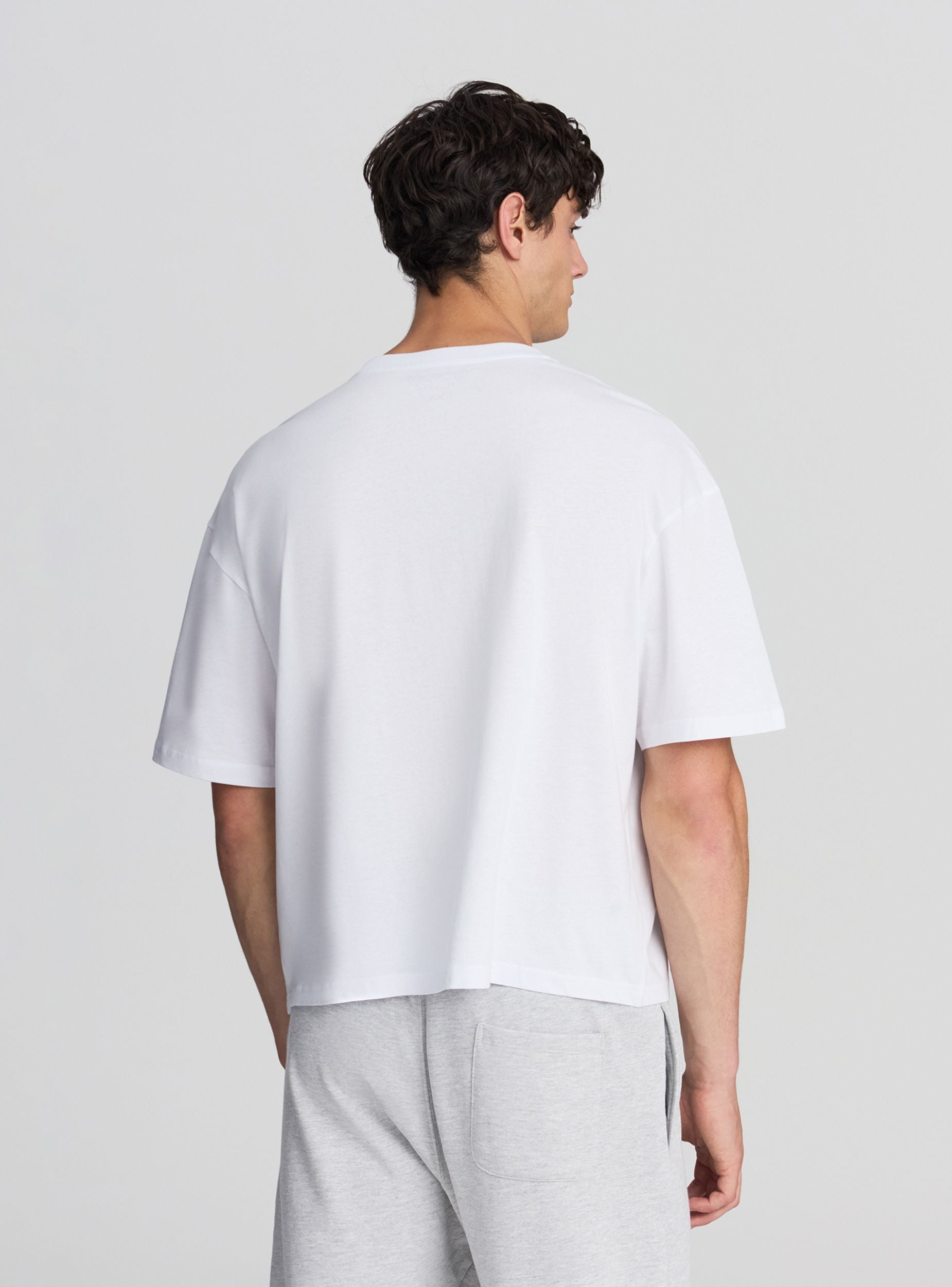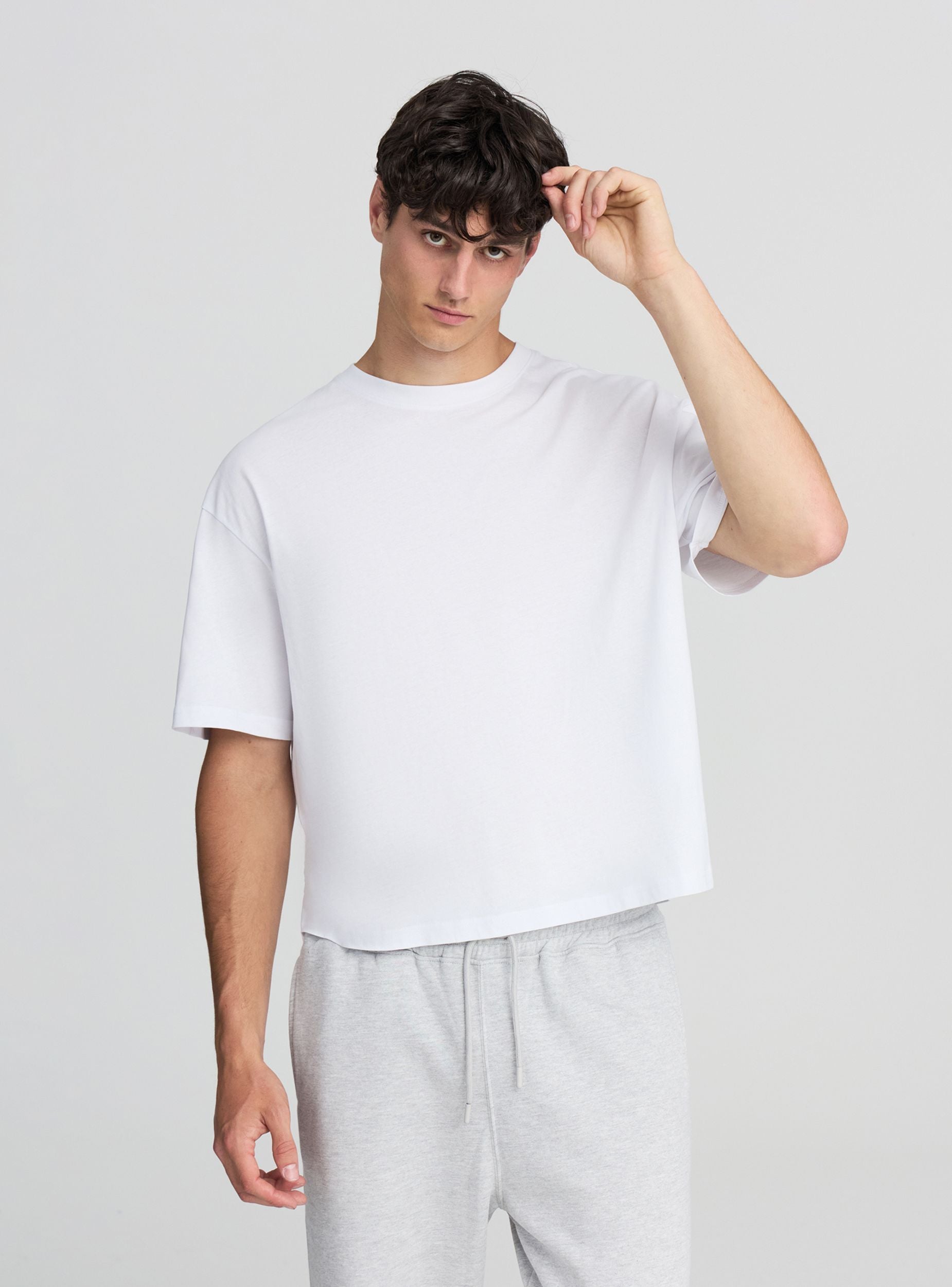 Pánska tričko s crop strihom, ideálne pre ležérny a moderný vzhľad. Jednoduchý dizajn v jednofarbných tónoch ju robí univerzálnou a ľahko kombinovateľnou s džínsami aj športovými nohavicami. Krátke rukávy a okrúhly výstrih poskytujú pohodlie a praktickosť, ideálne na voľný čas alebo na vytvorenie trendy streetwear outfitov.Detaily