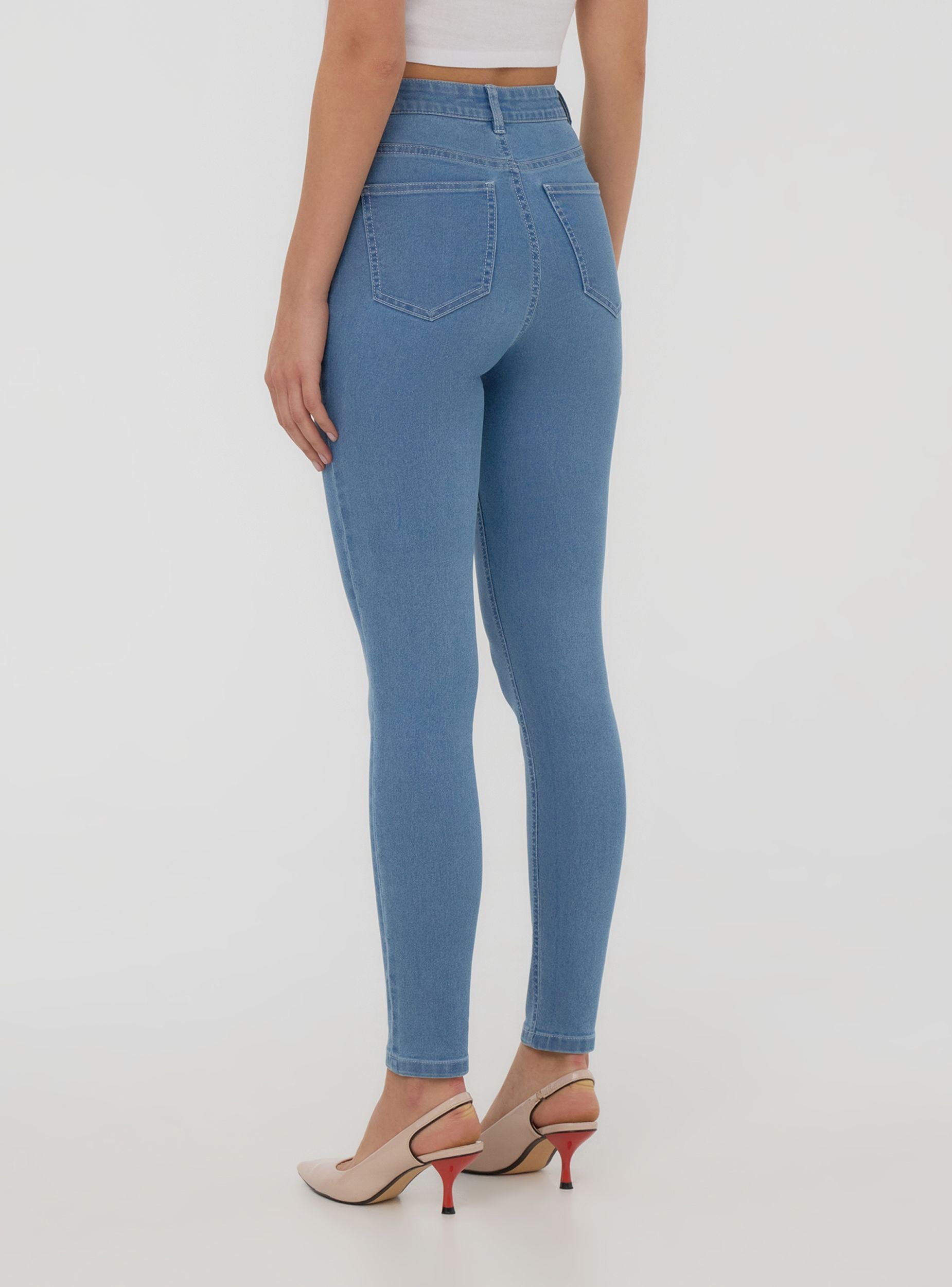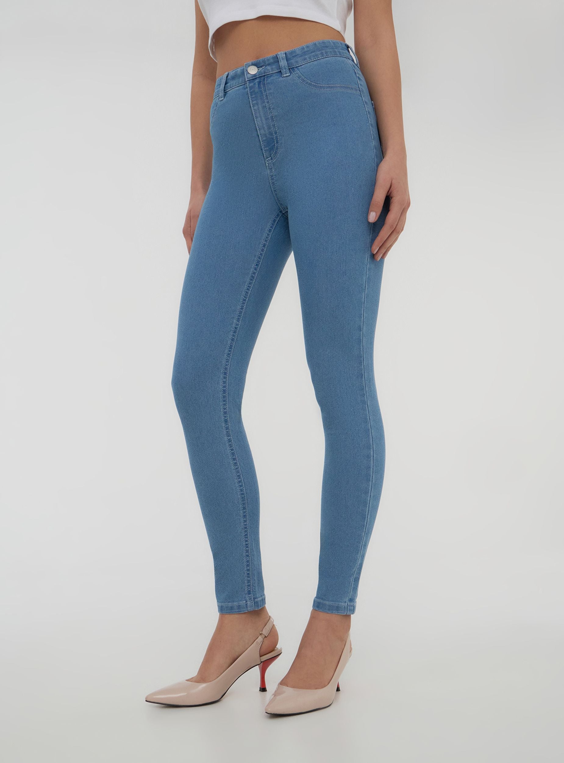 Dámske jeggings s vysokým pásom, ktorý zaručuje pohodlné a priliehavé nosenie. Model má úzky strih, ktorý opticky predlžuje postavu a dokonale prilieha k siluete vďaka svojej elasticite. Majú typické vlastnosti džínsov, no zachovávajú pohodlie a praktickosť legín. Zapínanie na zips a gombík pridáva štruktúru, pričom model zostáva pohodlný. Ideálne na bežné nosenie, dobre sa kombinujú s tričkami aj svetrmi a dajú sa nosiť s teniskami pre športový vzhľad alebo s členkovými čižmami pre elegantnejší štýl. Perfektné na každodenné použitie, ktoré spája štýl a pohodlie.Detaily