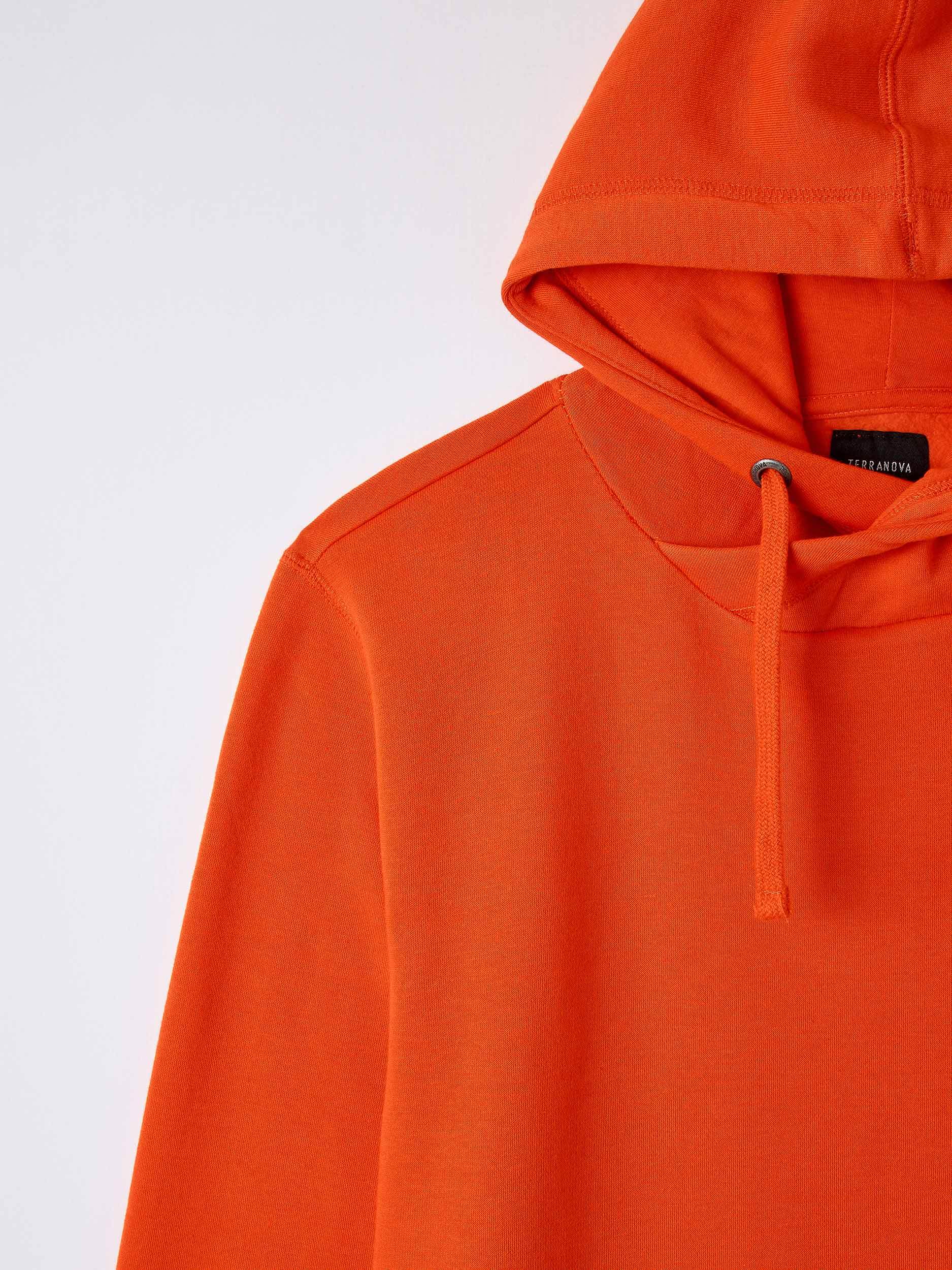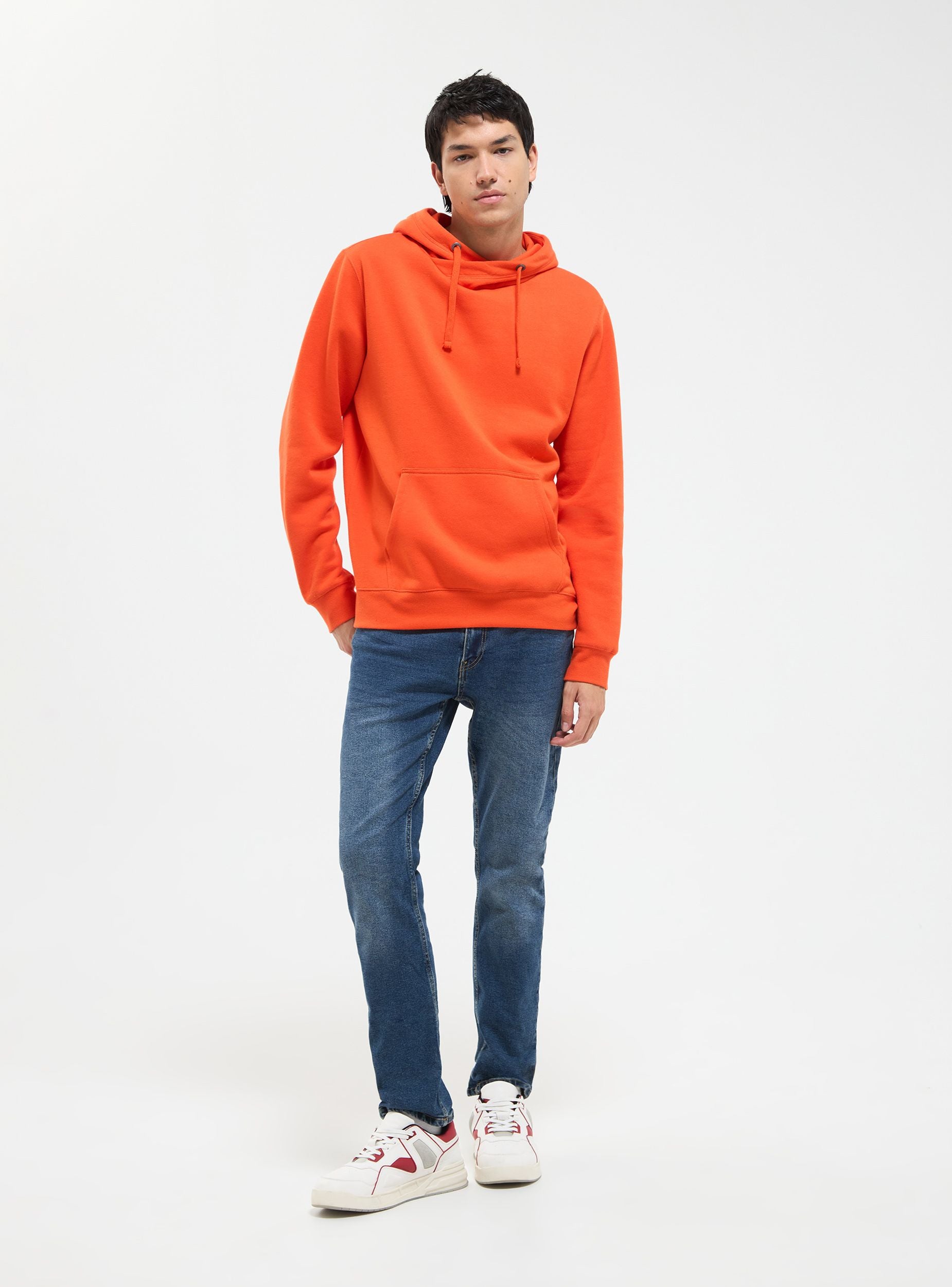 Pánska mikina s kapucňou. Model s uzavretým strihom, kapucňou s nastaviteľnou šnúrkou a dlhými rukávmi. Predná klokaní vrecko. Vyrobená z ťažkej jednofarebnej tkaniny. Regular fit.
