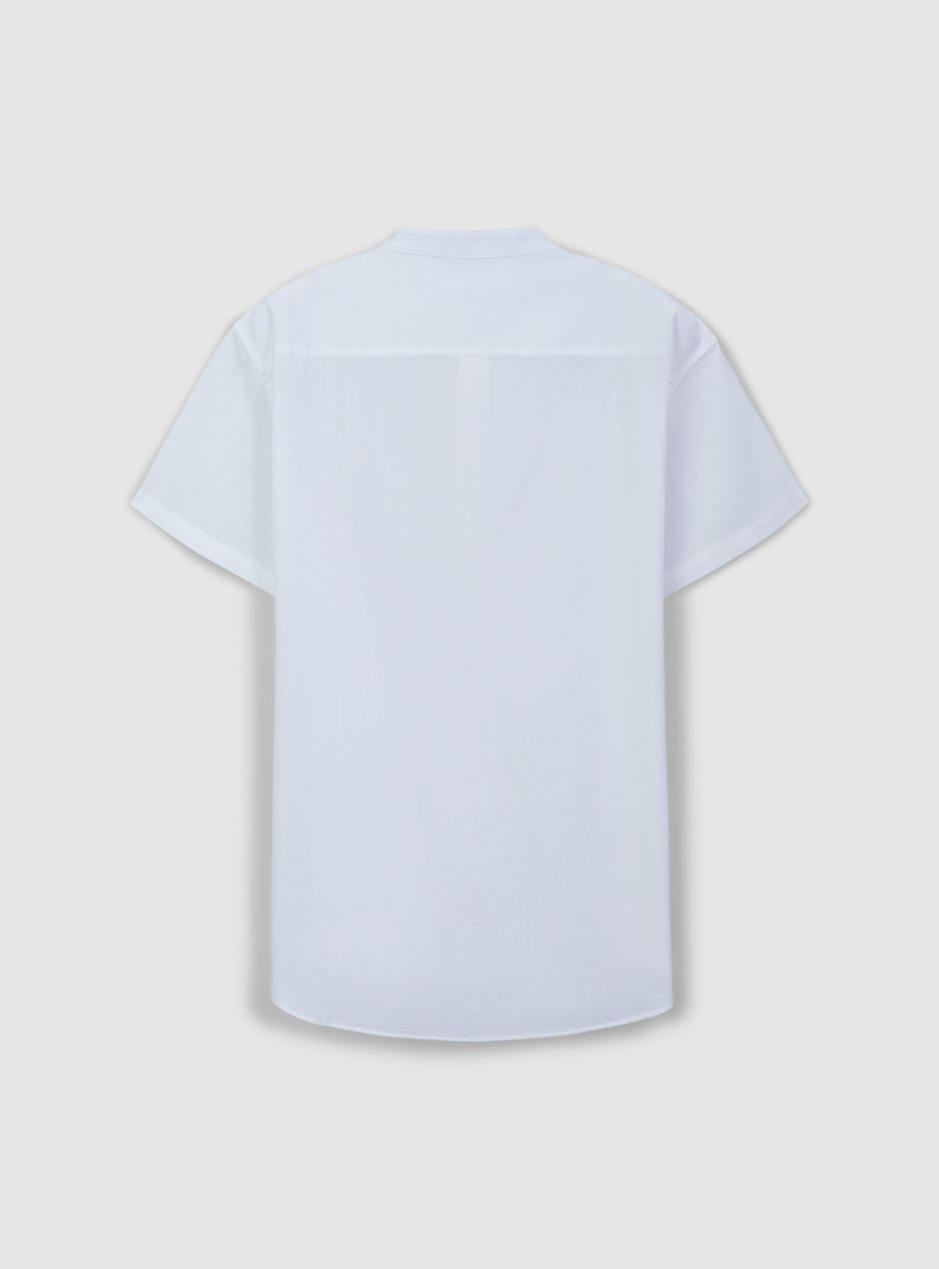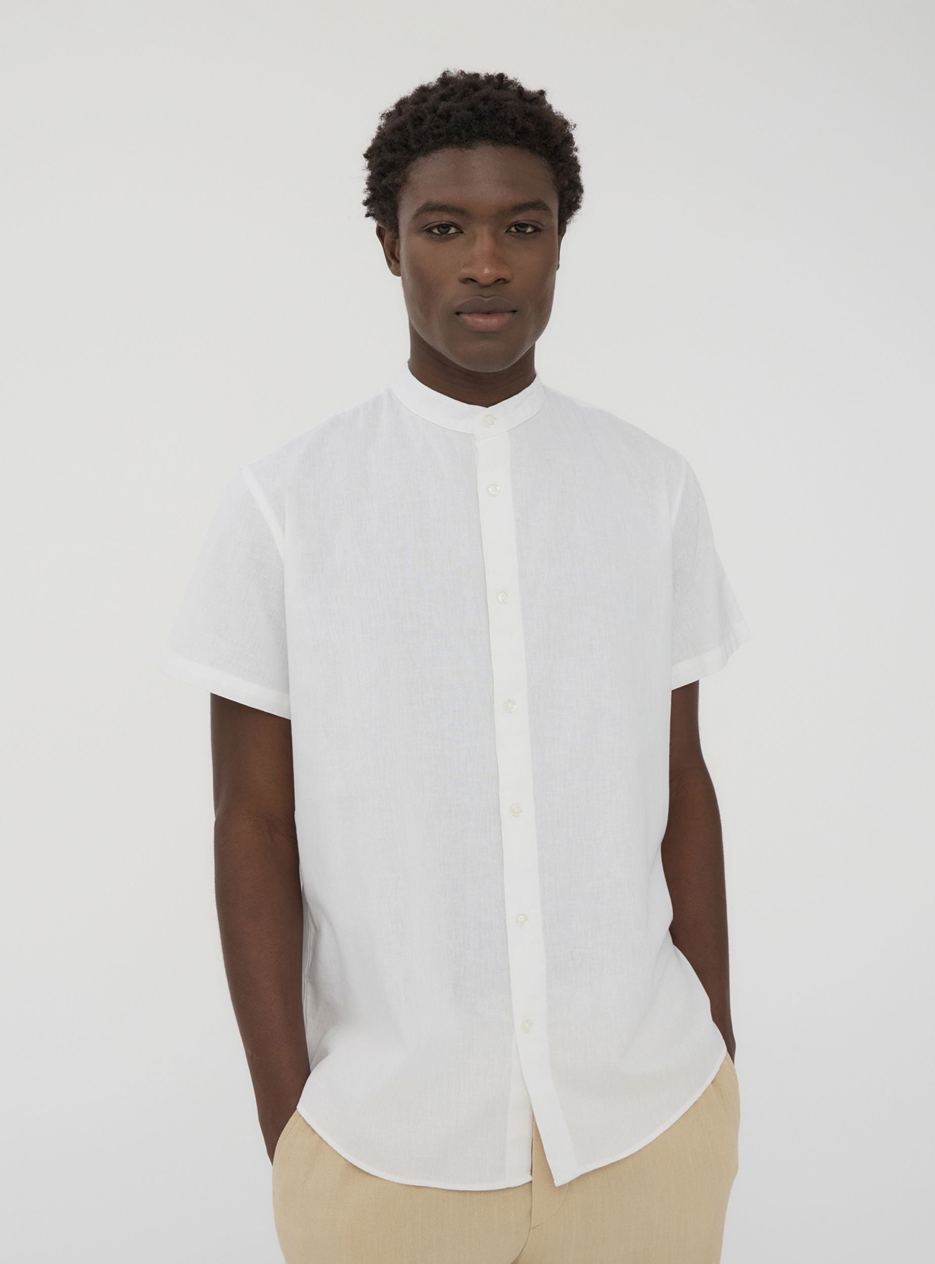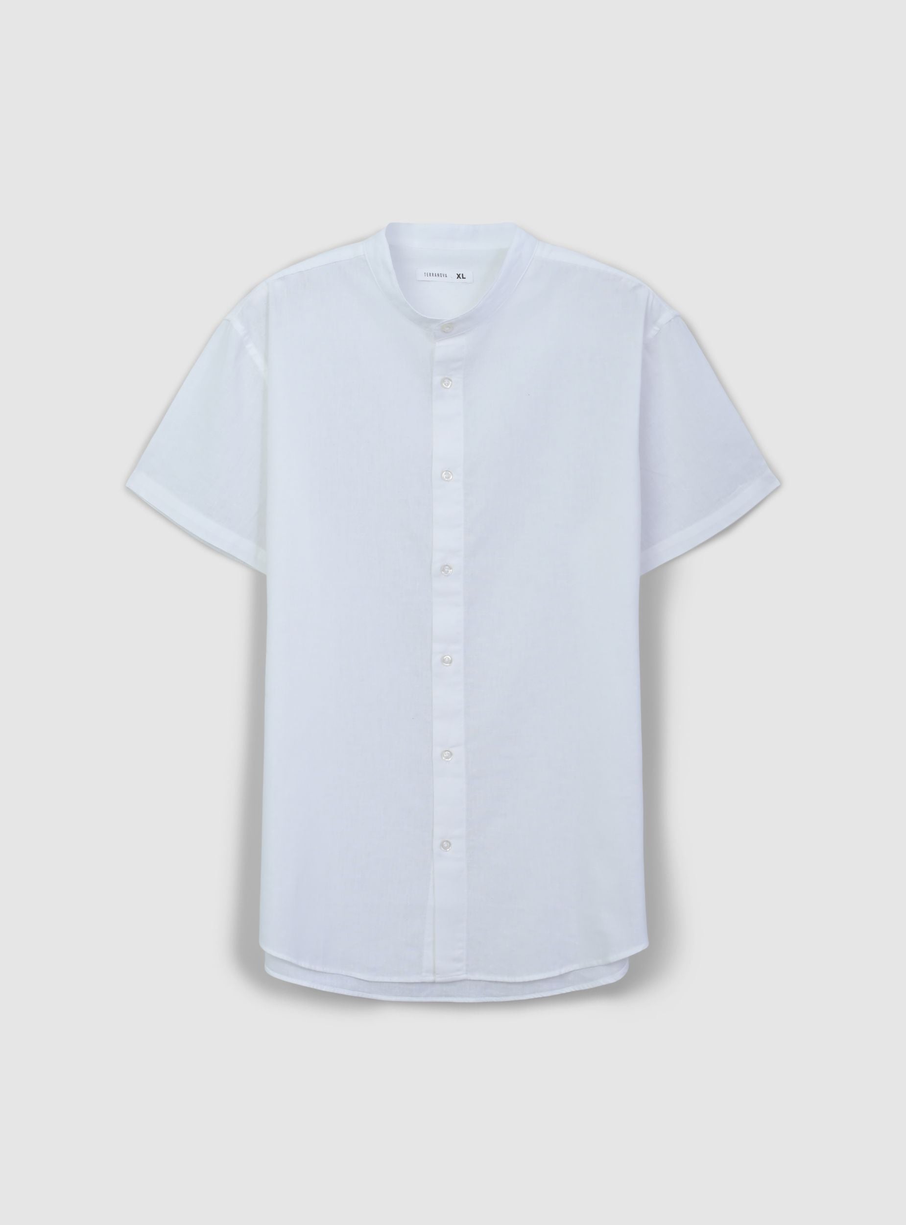Pánska košeľa z zmesi ľanu v jednofarebnom prevedení, ideálna pre svieži a rafinovaný vzhľad. Dizajn s kórejským golierom dodáva moderný a základný nádych, zatiaľ čo predné zapínanie na gombíky pridáva praktickosť a štýl. Krátke rukávy ju robia ideálnou pre teplejšie obdobie, zaručujúc komfort a ľahkosť. Univerzálny kúsok, vhodný na rôzne príležitosti, od neformálnych po viac vyžaduje.Detaily