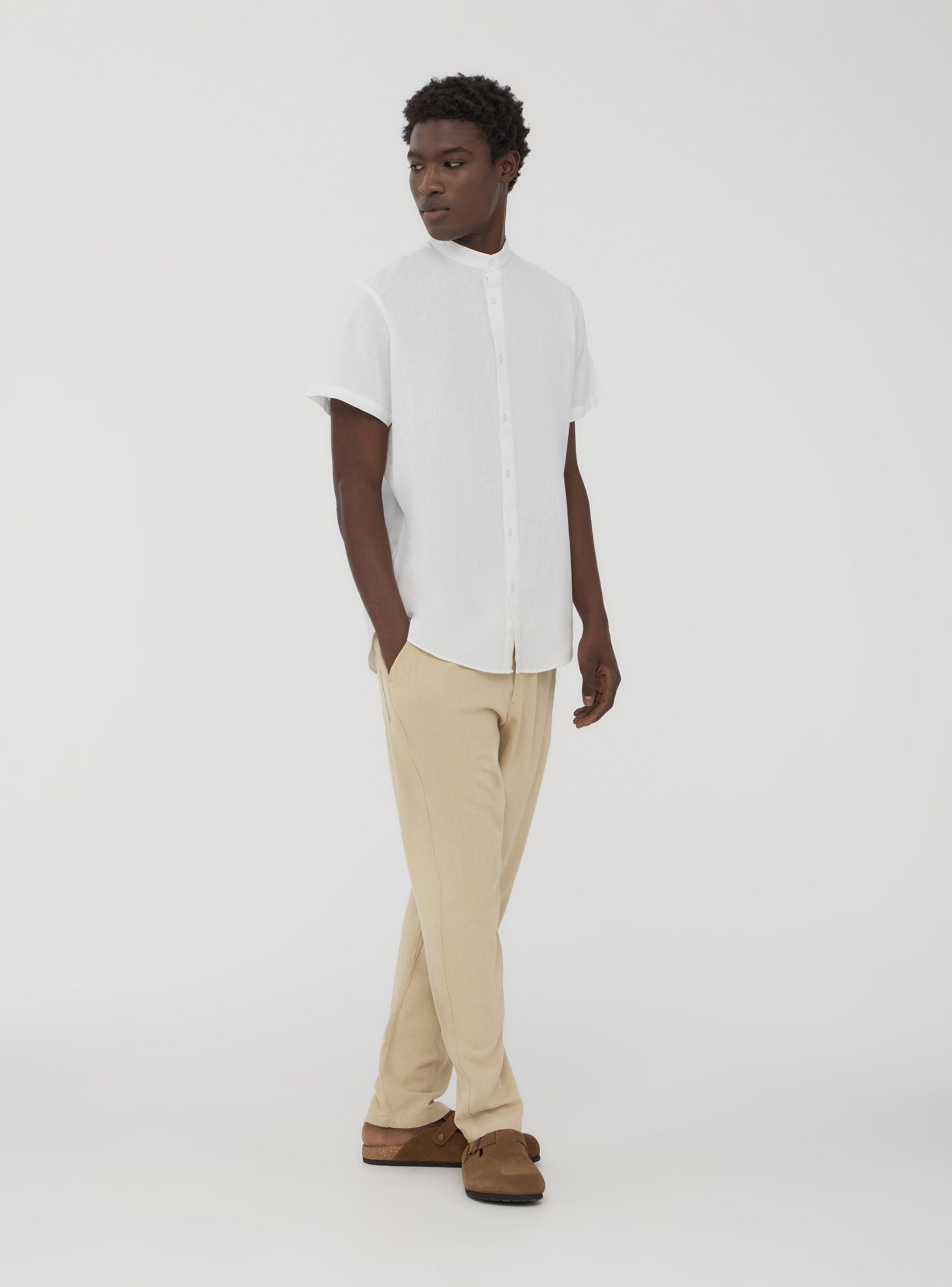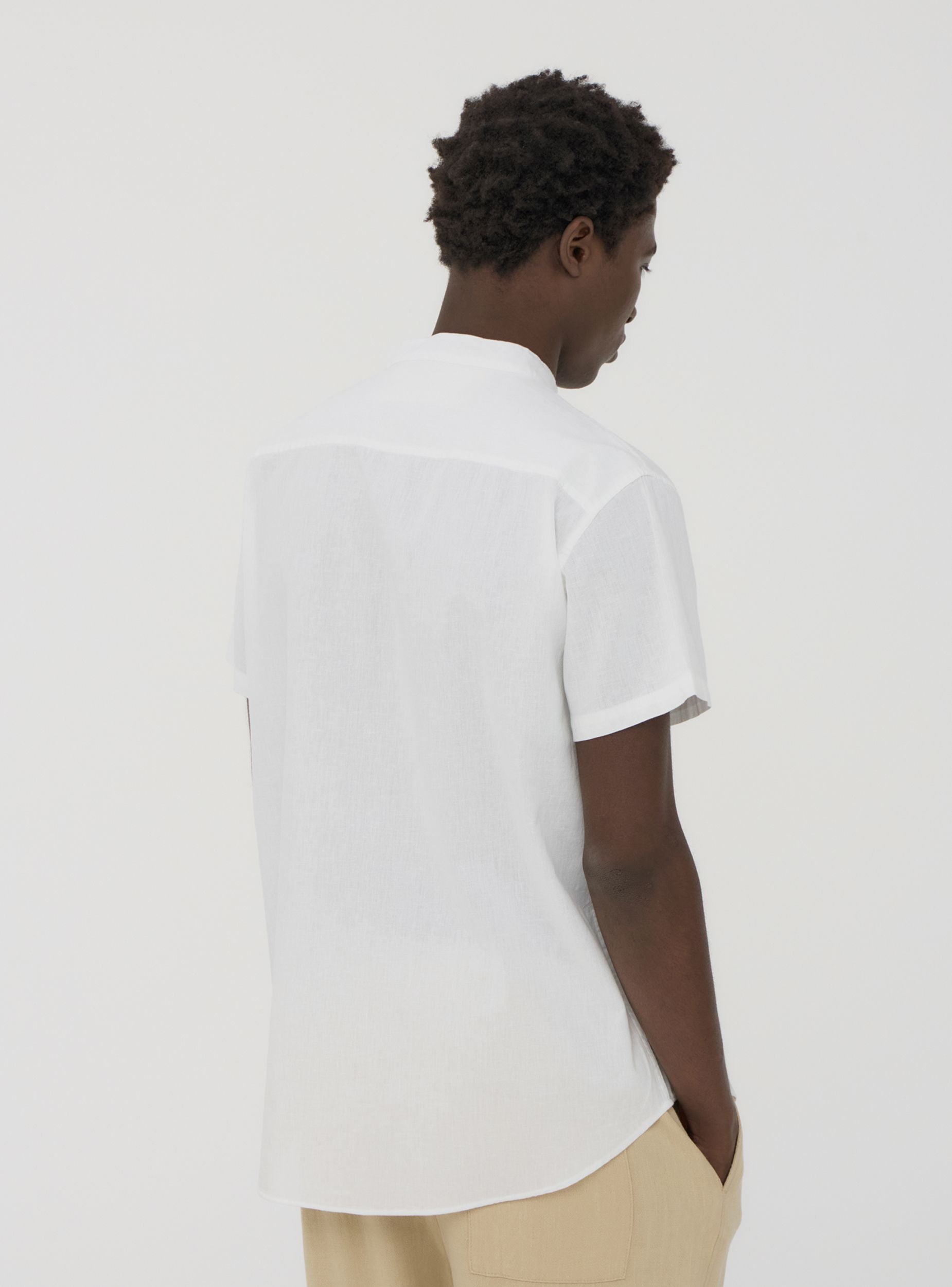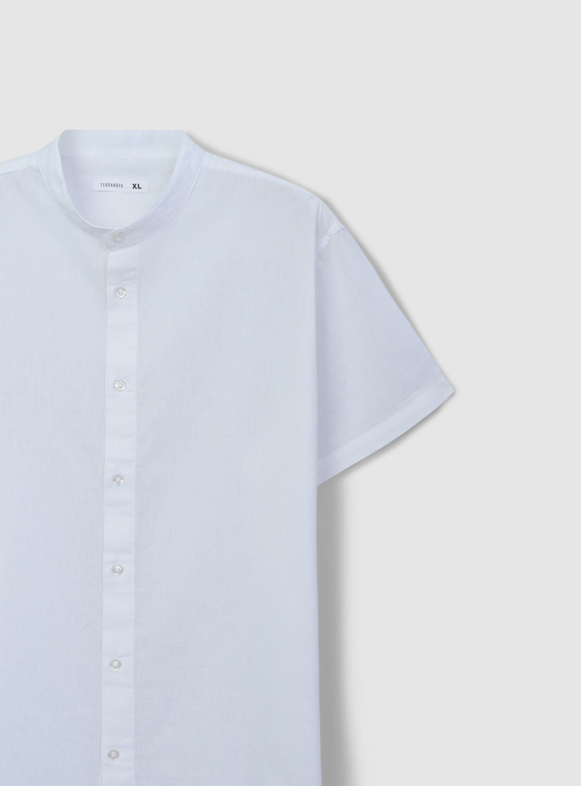 Pánska košeľa z zmesi ľanu v jednofarebnom prevedení, ideálna pre svieži a rafinovaný vzhľad. Dizajn s kórejským golierom dodáva moderný a základný nádych, zatiaľ čo predné zapínanie na gombíky pridáva praktickosť a štýl. Krátke rukávy ju robia ideálnou pre teplejšie obdobie, zaručujúc komfort a ľahkosť. Univerzálny kúsok, vhodný na rôzne príležitosti, od neformálnych po viac vyžaduje.Detaily