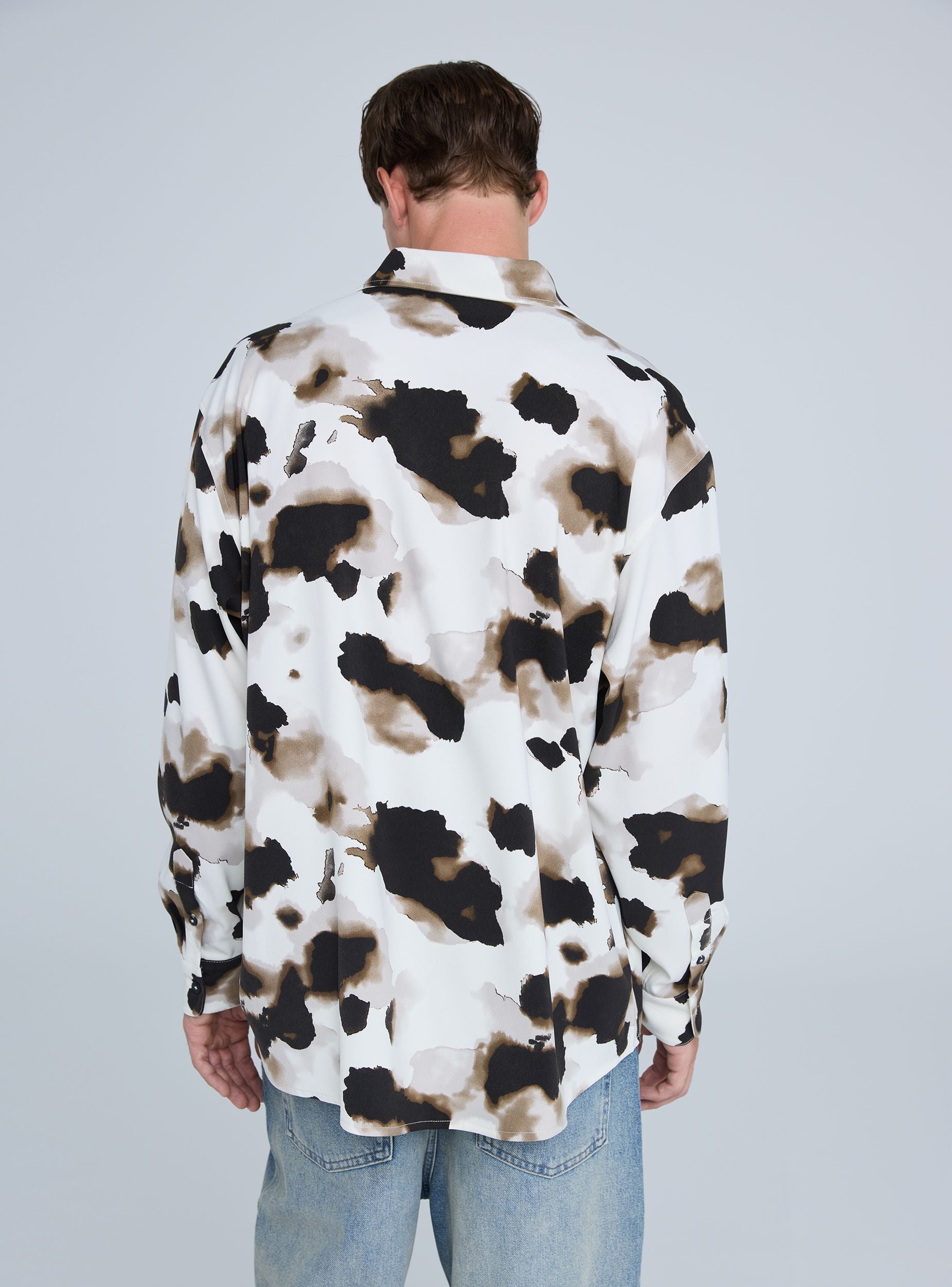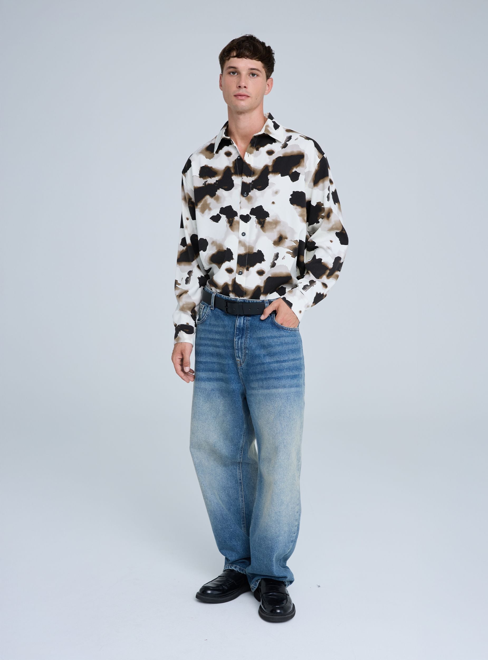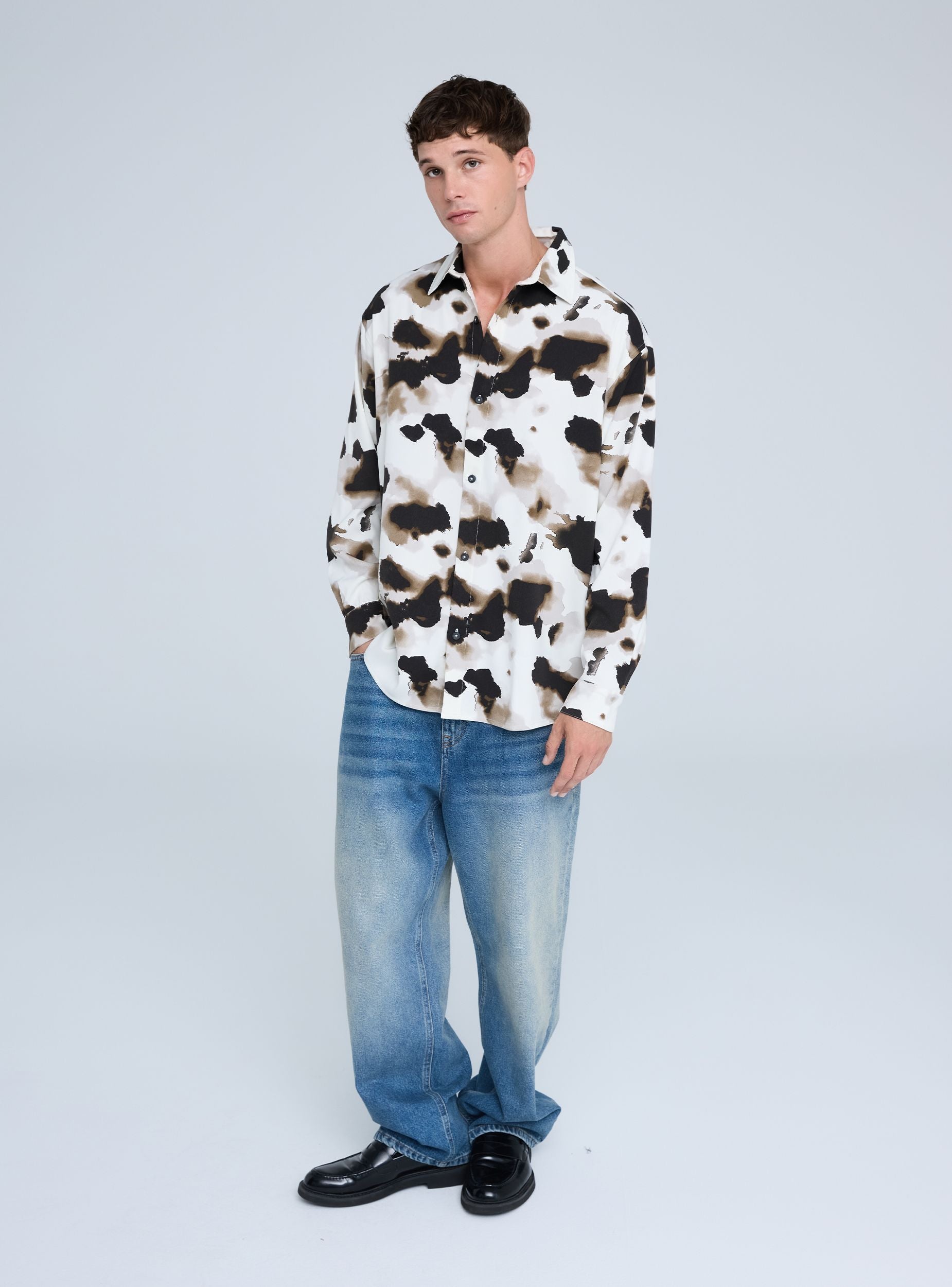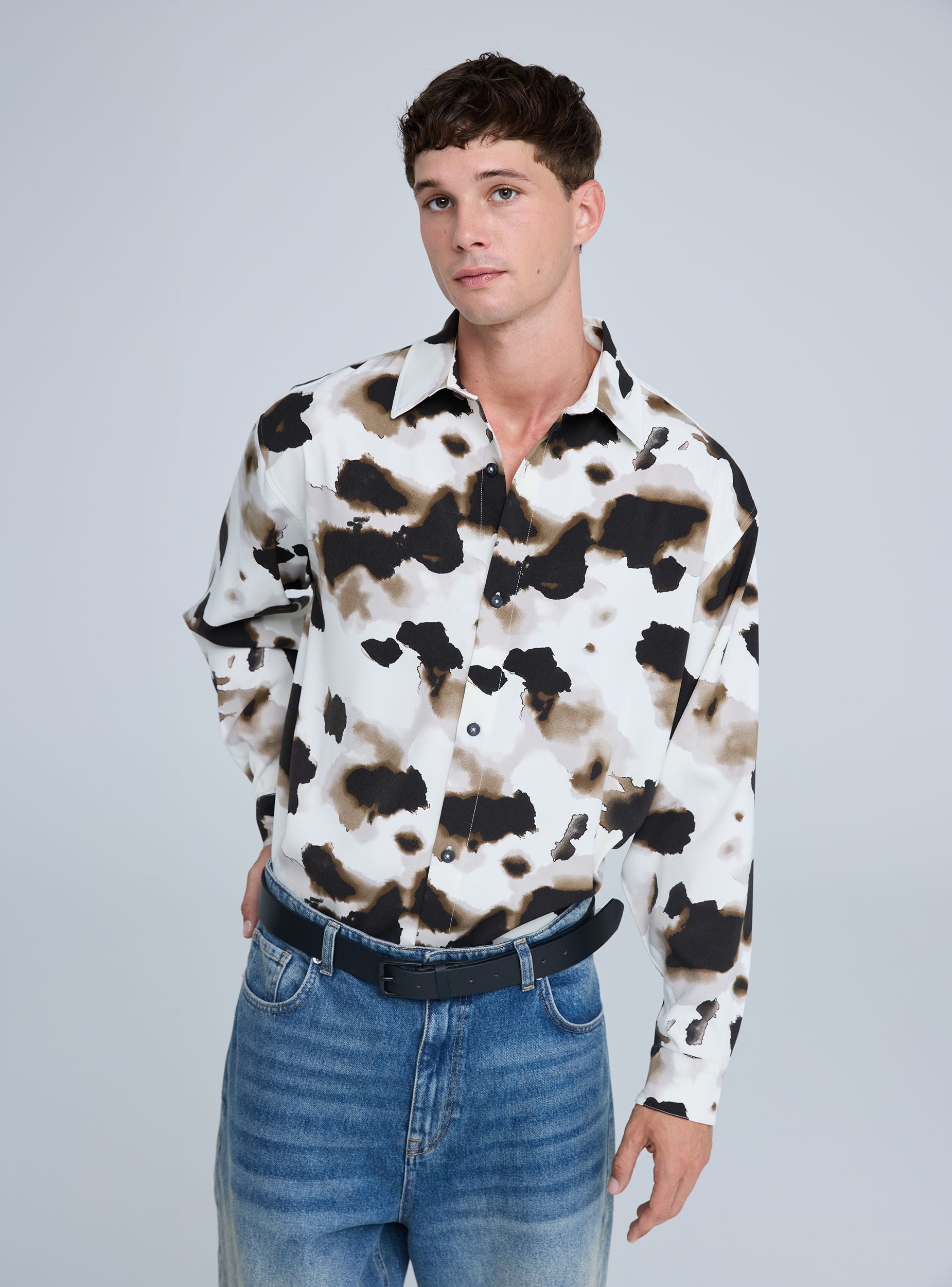 Pánska košeľa s potlačou, klasickým golierom a dlhými rukávmi, ideálna pre mestský a ležérny vzhľad. Predné zapínanie na gombíky a manžety so zapínaním na gombíky, regular strih, ktorý sa hodí na tričká alebo ľahké svetre pod sakom. Celoplošná potlač dodáva charakter a ľahko sa kombinuje s džínsami alebo chino nohavicami do neformálnej kancelárie alebo na voľný čas. Univerzálny kúsok na oživenie sezónneho outfitu.