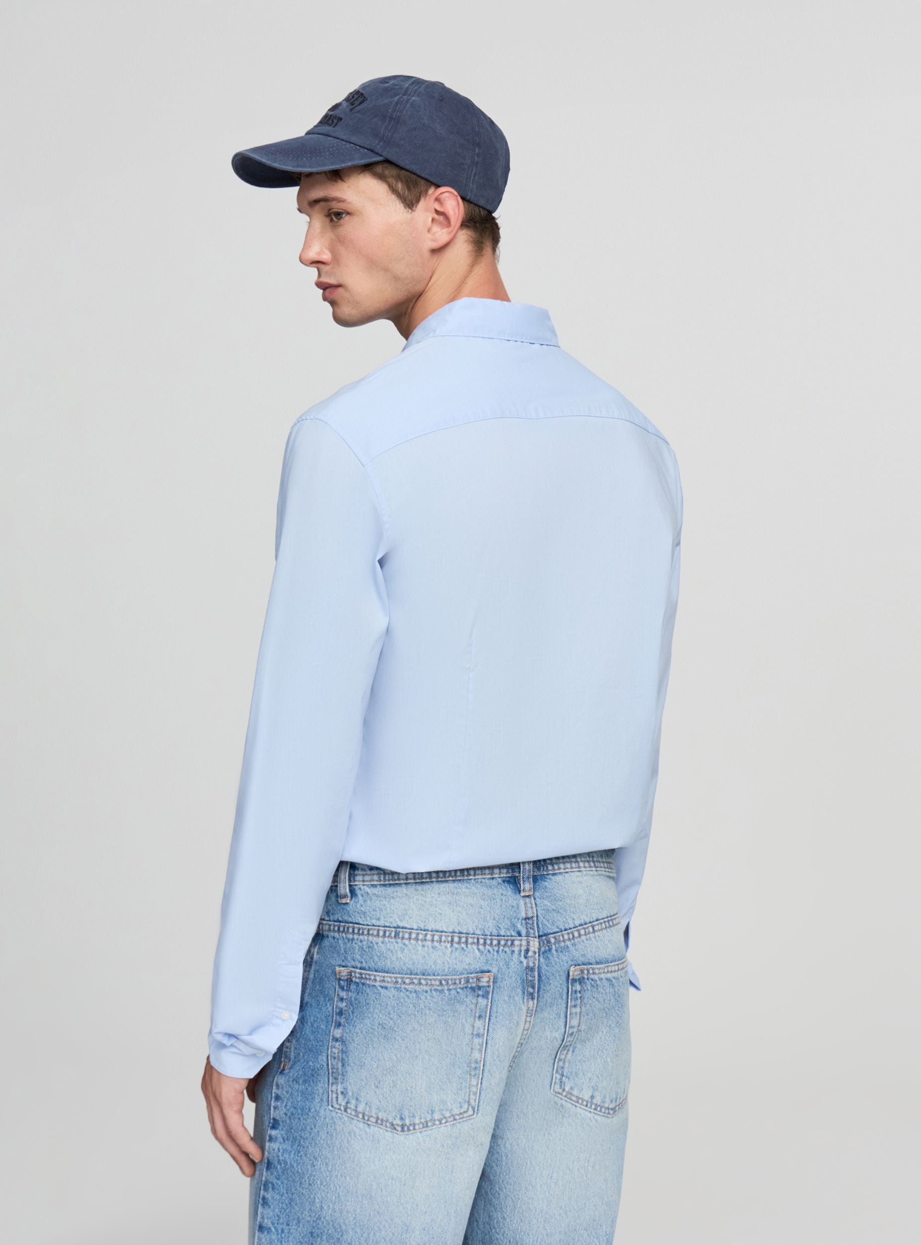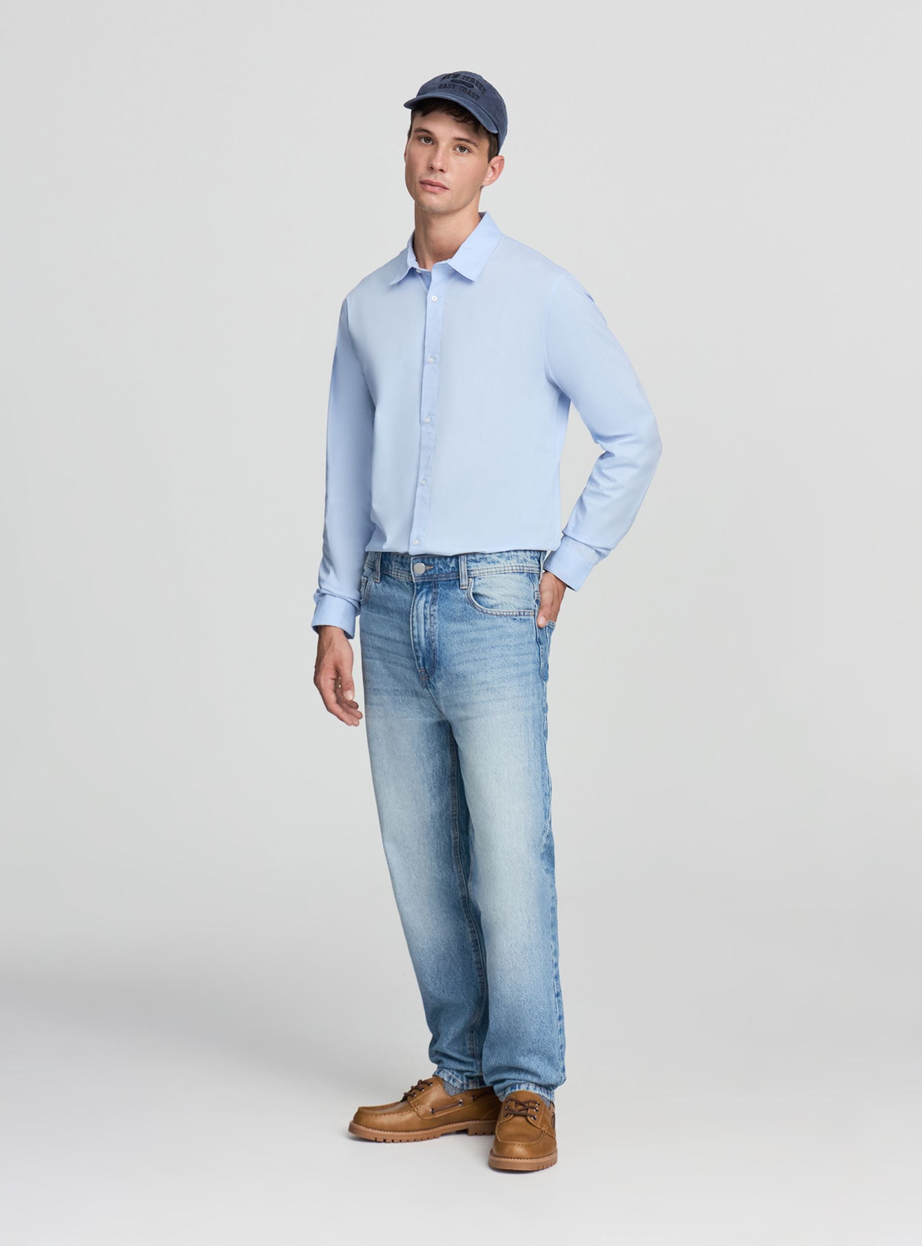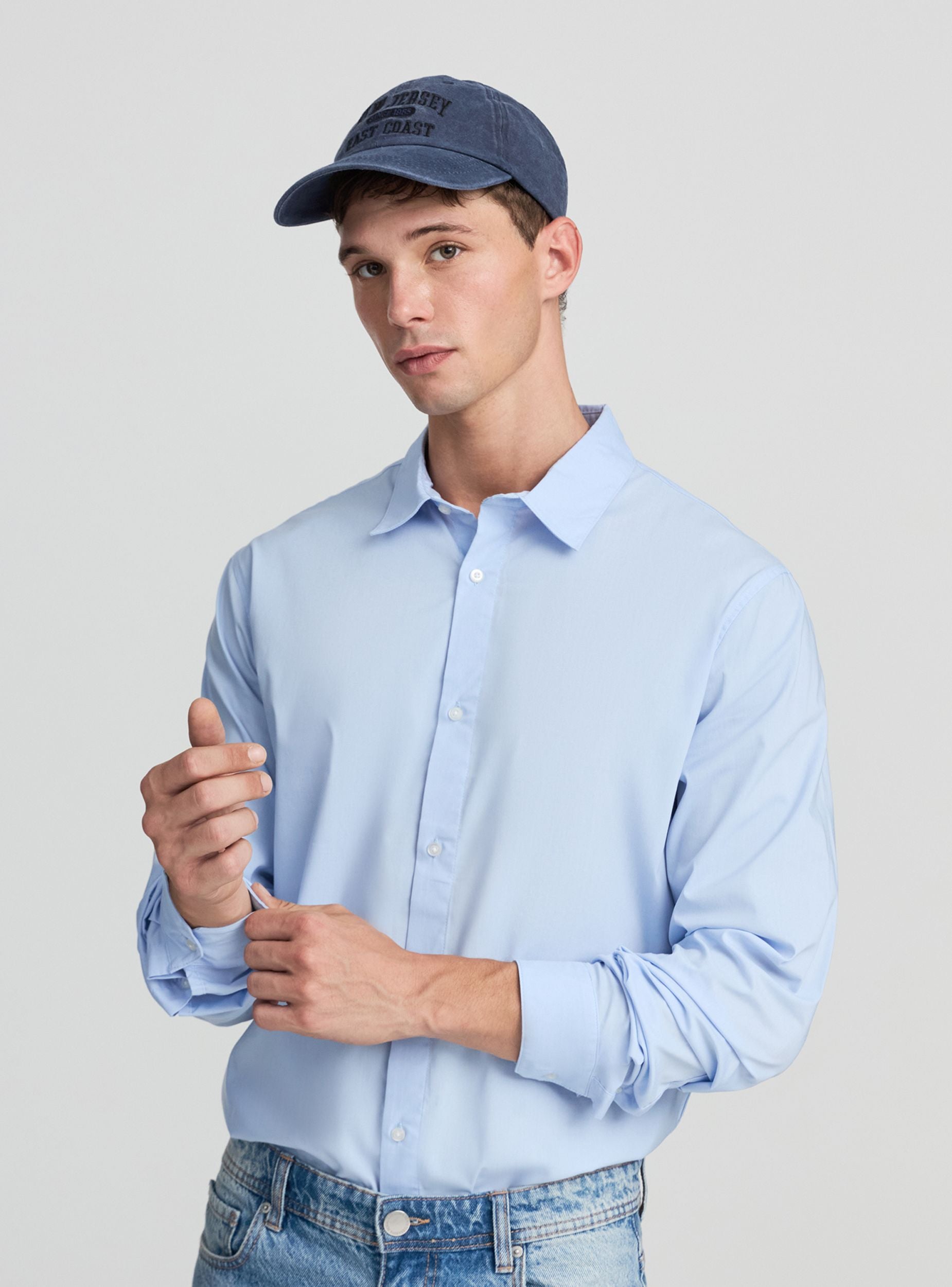 Pánska košeľa v jednofarebnom prevedení, ideálna na formálne a profesionálne príležitosti. Dizajn obsahuje klasický golier, dlhé rukávy s gombíkmi na manžetách a predné zapínanie na gombíky. Normálny strih zabezpečuje pohodlie počas celého dňa. Perfektná na nosenie s elegantnými nohavicami alebo pod sakom pre upravený a všestranný vzhľad.Detaily