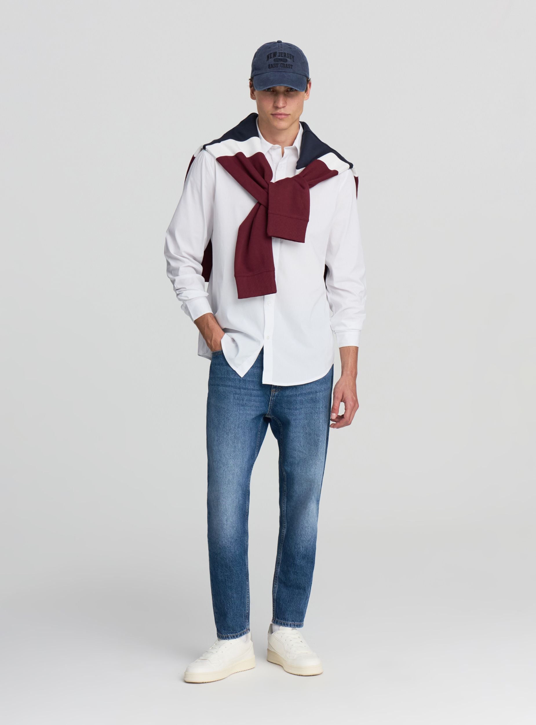 Pánska košeľa v jednofarebnom prevedení, ideálna na formálne a profesionálne príležitosti. Dizajn obsahuje klasický golier, dlhé rukávy s gombíkovými manžetami a predné zapínanie na gombíky. Štandardný strih zabezpečuje pohodlie po celý deň. Perfektná na nosenie s elegantnými nohavicami alebo pod sako pre upravený a všestranný vzhľad.