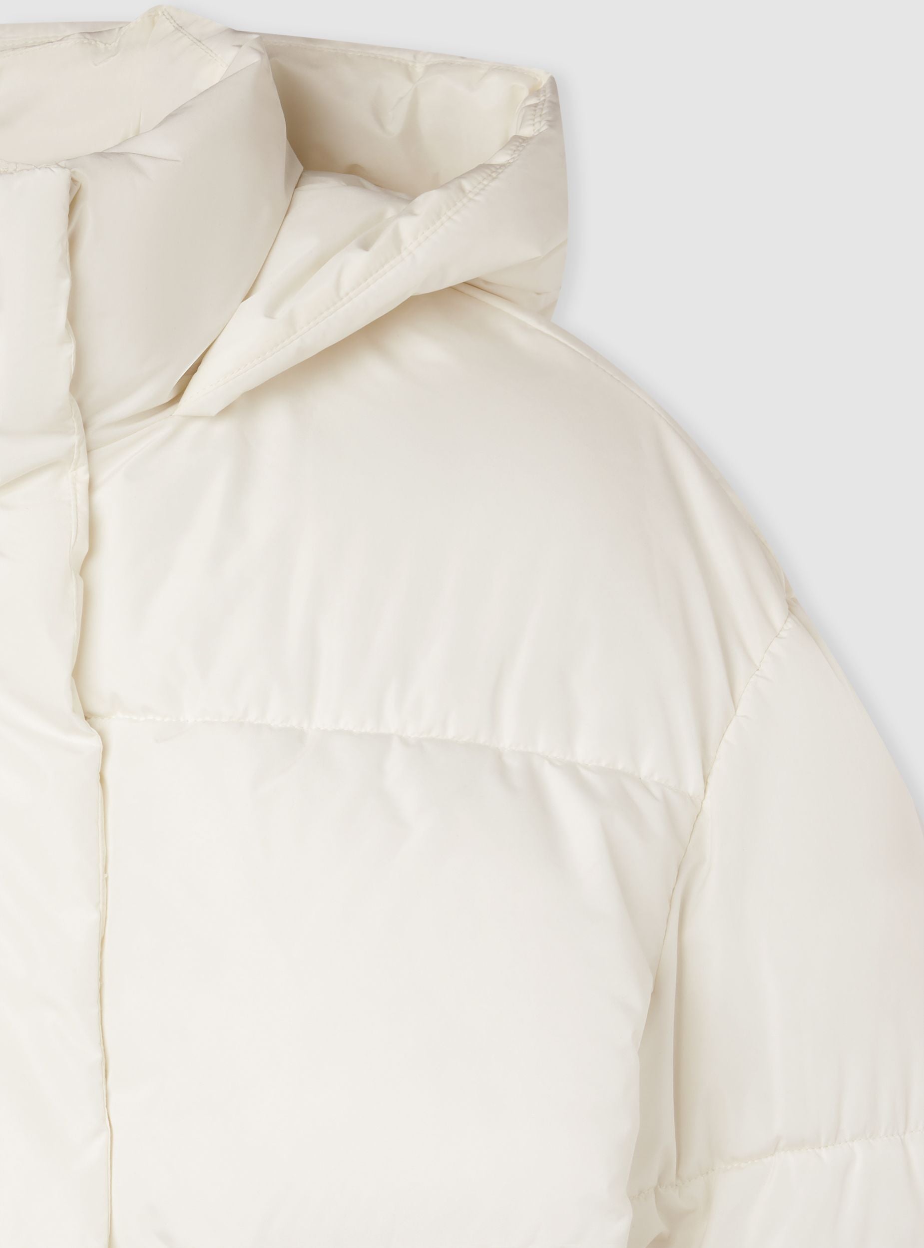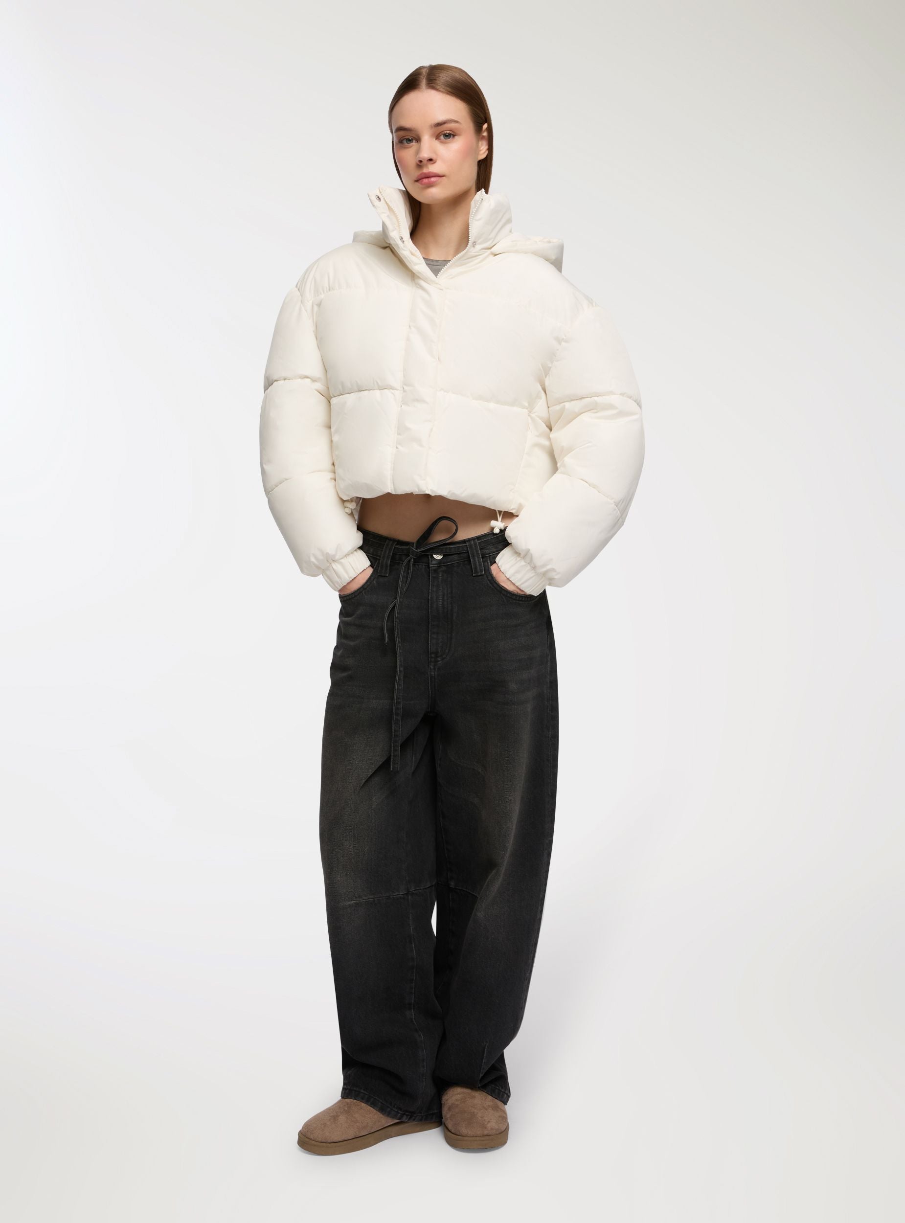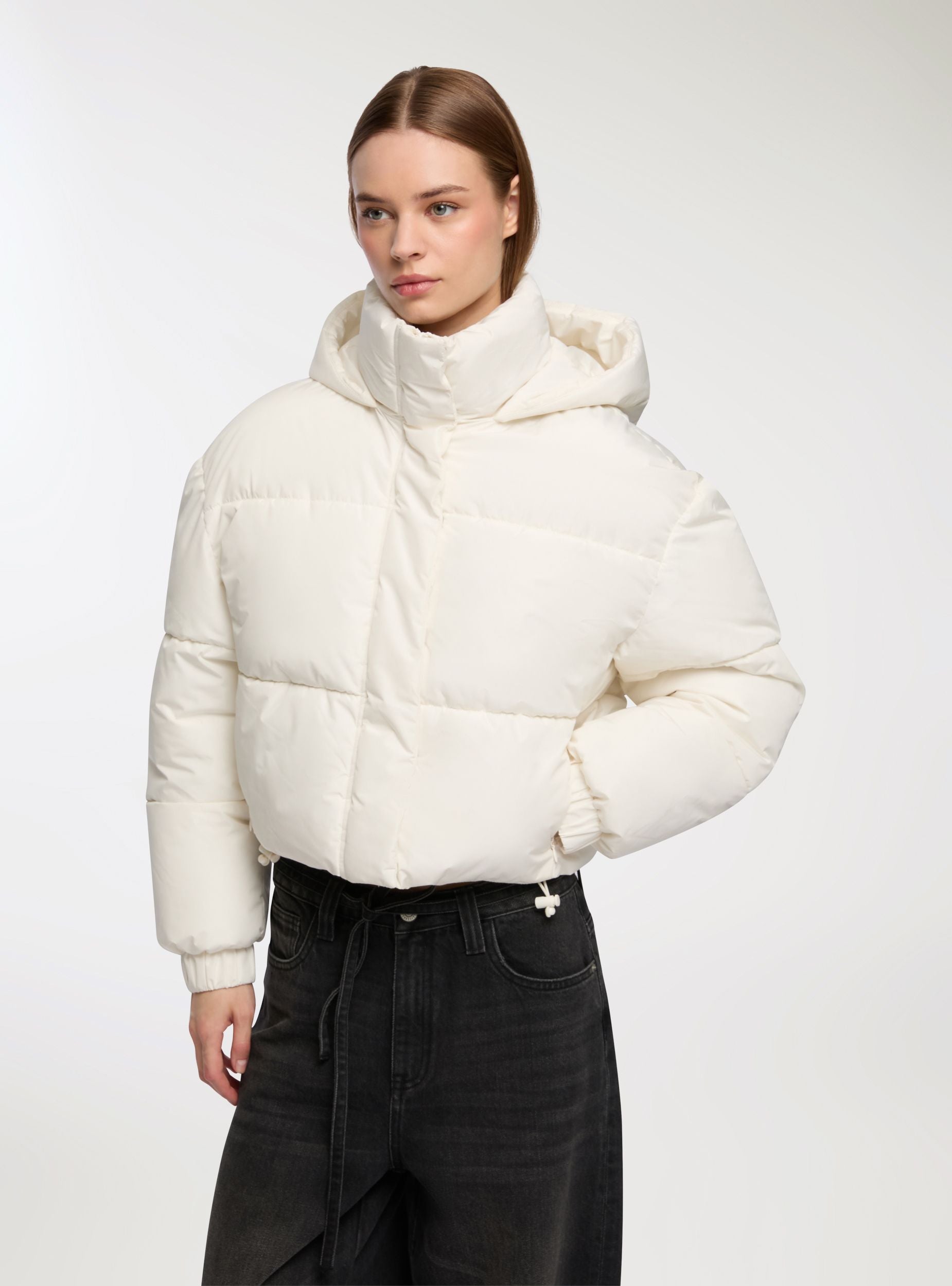 Dámska prešívaná bunda s kapucňou, ideálna pre ležérny a moderný vzhľad. Tento crop top má skryté zapínanie na zips a patentky, s jednofarebným prešívaným dizajnom, ktorý zaručuje pohodlie a štýl. Vybavená je neviditeľnými vreckami so zipsom. Perfektná na chladnejšie dni, ľahko sa kombinuje s džínsami alebo športovými nohavicami pre všestranný a módny outfit. Dlhé rukávy, vysoký golier, kapucňa a brzdiče pridávajú praktickosť a ochranu.Detaily