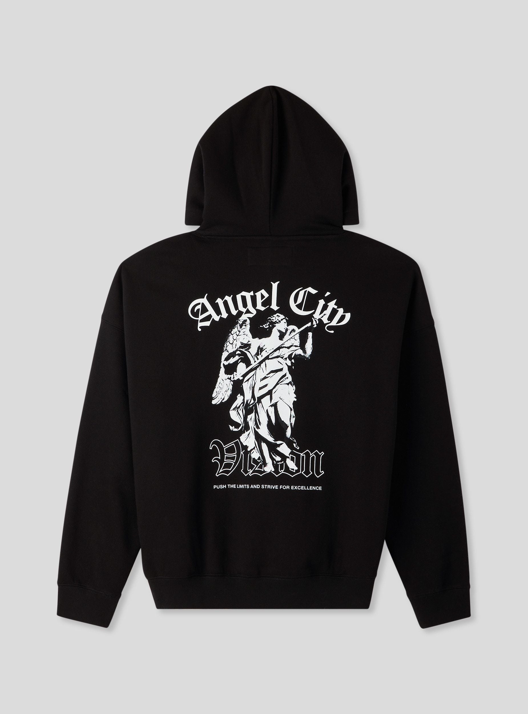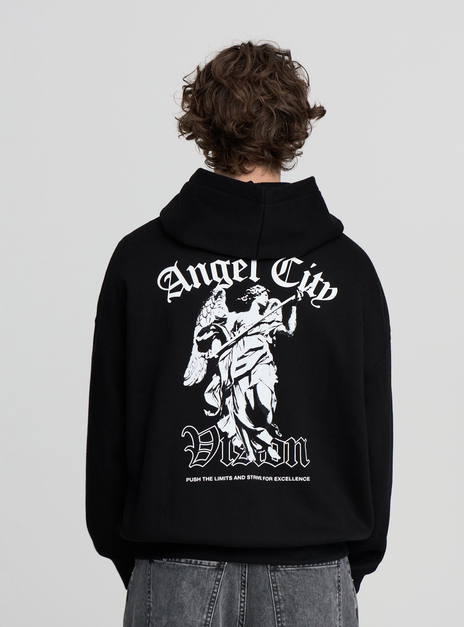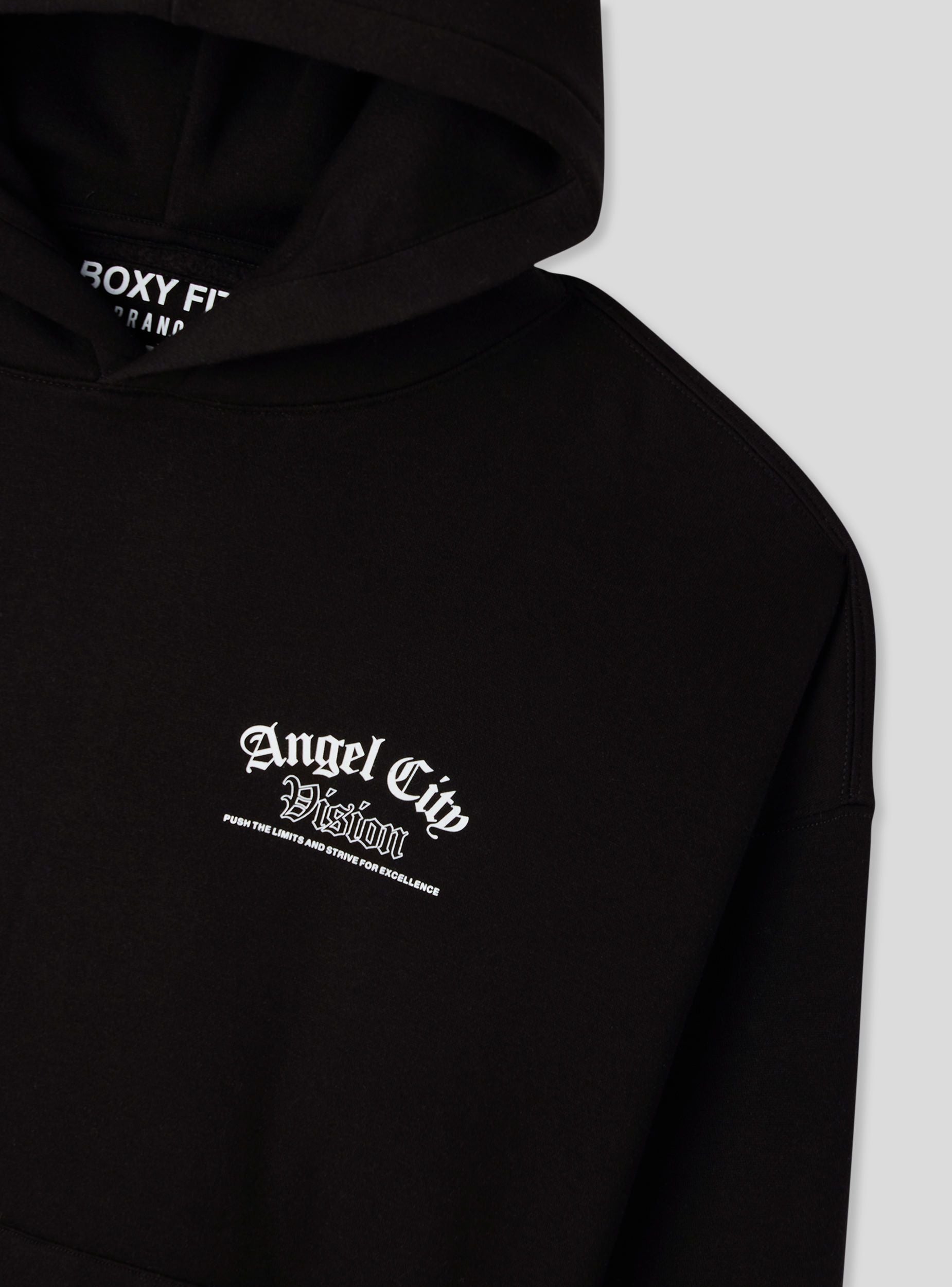 Mikina boxy fit s kapucňou a potlačou na prednej a zadnej strane