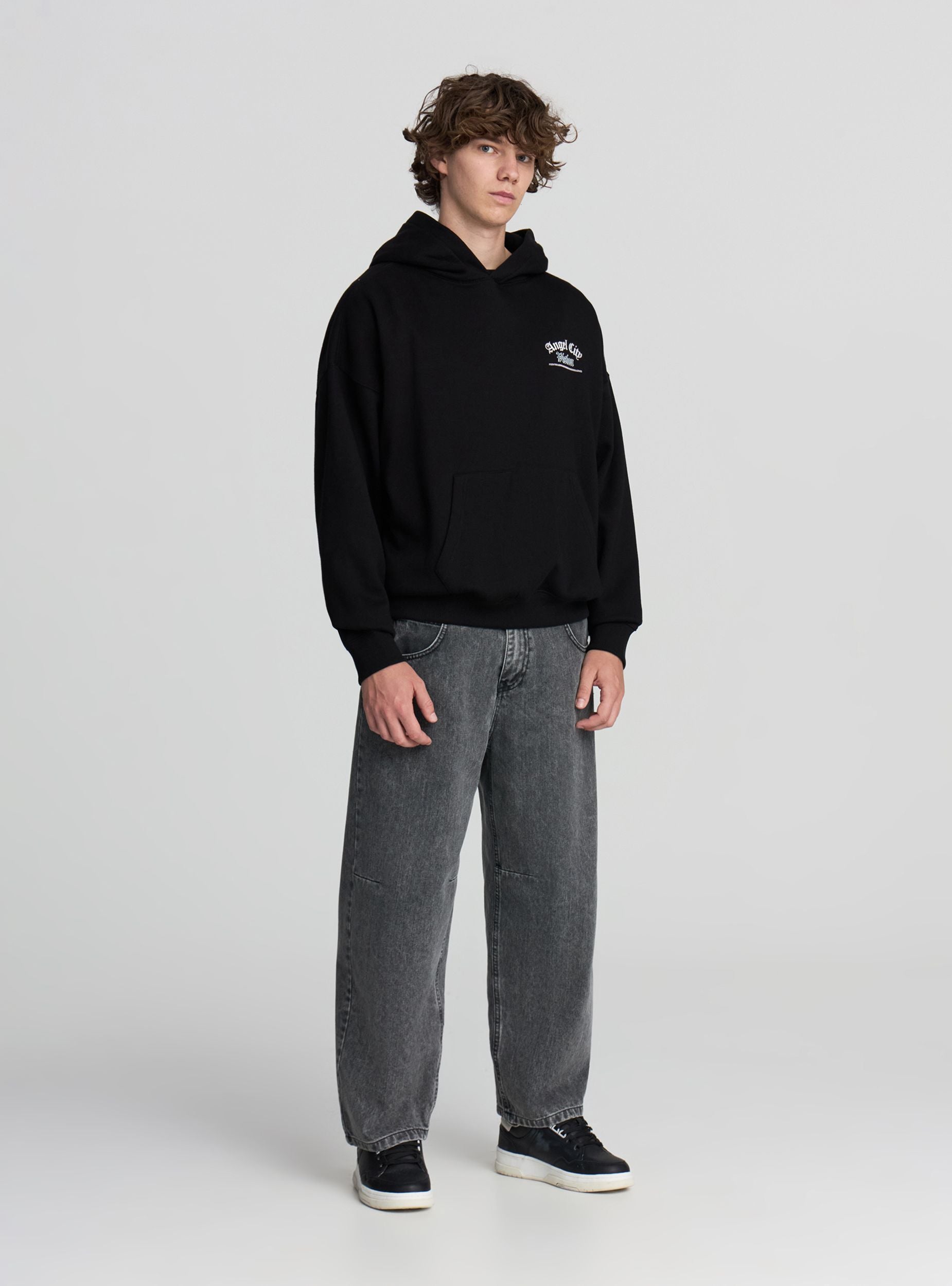 Pánska ťažká mikina s kapucňou a bez zipsu, ideálna pre ležérny a mestský vzhľad. Má grafický potlač na prednej a zadnej strane, čo pridáva osobitný dotyk k dizajnu. Perfektná na kombinovanie s džínsami alebo športovými nohavicami, táto mikina boxy fit ponúka pohodlie a štýl na voľný čas. Univerzálny kúsok na doplnenie moderných a dynamických outfitov.