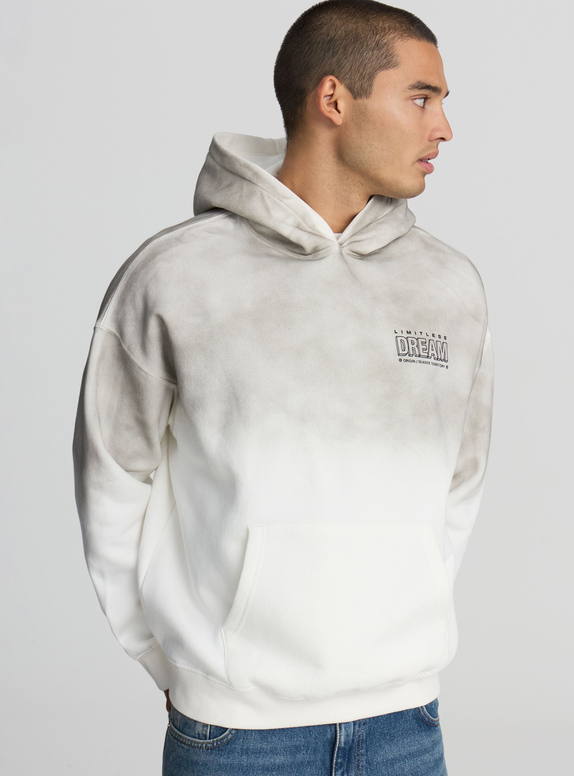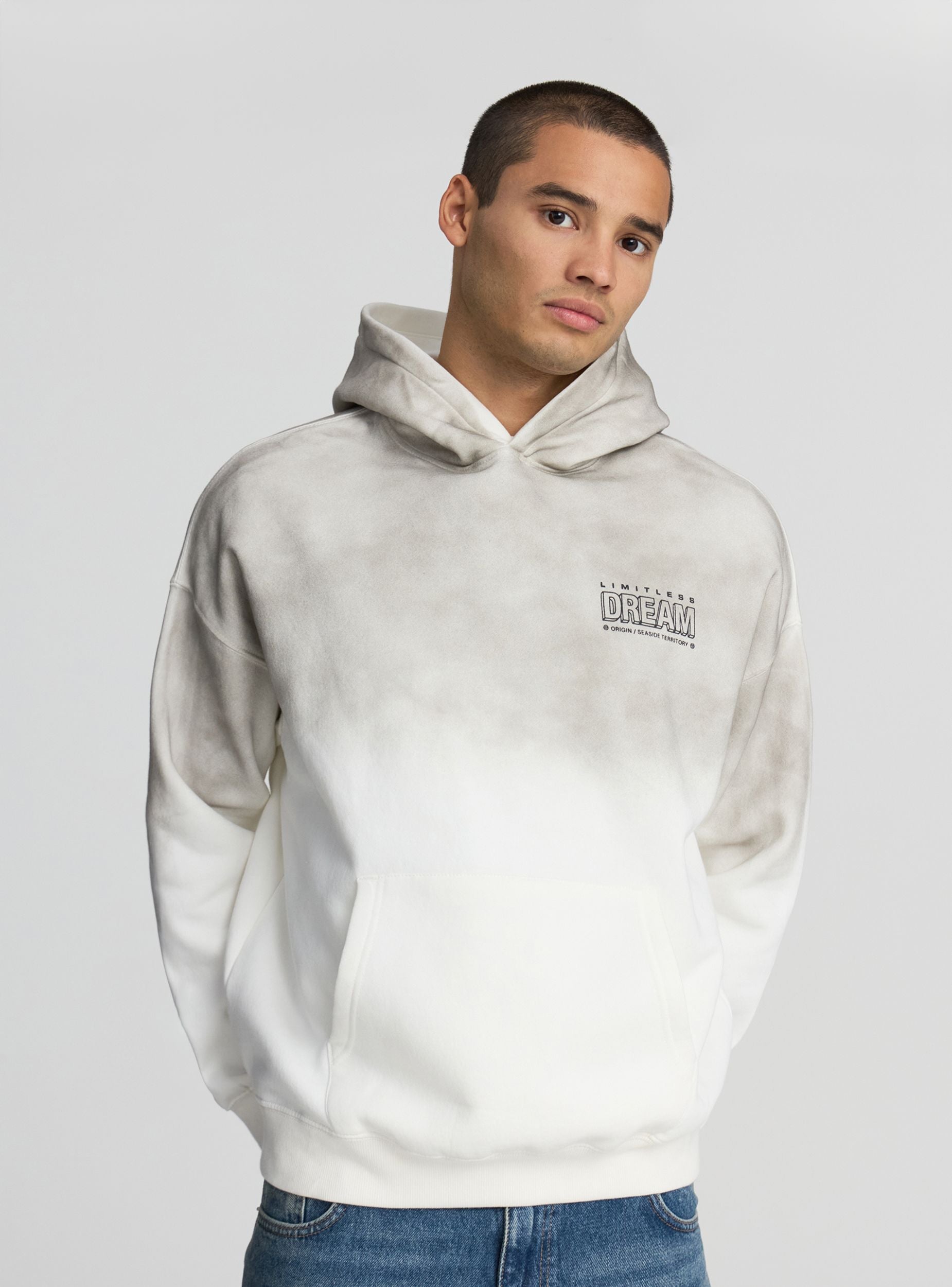 Pánska ťažká mikina s kapucňou a boxy strihom, ideálna pre mestské vzhľady zimy. Gradientový dizajn dodáva originálny a moderný nádych, zatiaľ čo predný potlač pridáva charakter a osobnosť. Model bez zipsu s klokankovou kapsou, dlhými rukávmi a spodným lemom so žebrovaním. Pohodlná a teplá, je ideálna na prekonanie chladných dní so štýlom a komfortom.Detaily