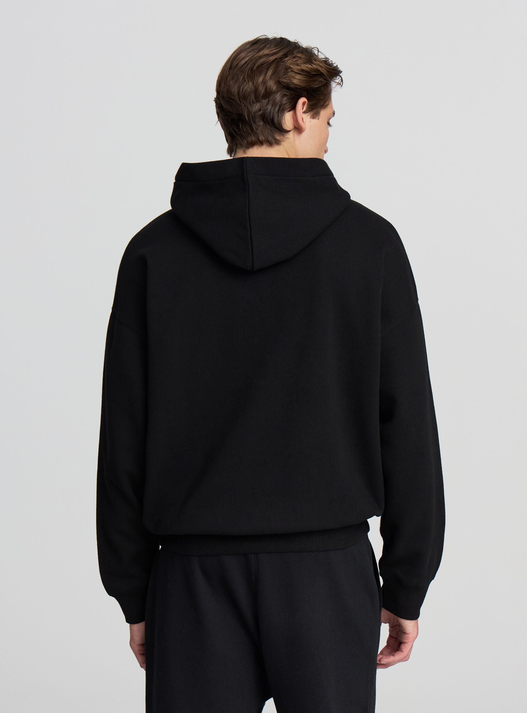 Pánska mikina v minimalistickom a súčasnom štýle, ideálna na prekonanie zimnej sezóny s pohodlím a praktickosťou. Vyrobená z ťažkého materiálu, má boxy fit strih, ktorý dodáva moderný a uvoľnený siluetu. Jednofarebný dizajn ju robí mimoriadne všestrannou, zatiaľ čo kapucňa a predná klokanie vrecko pridávajú funkčnosť. Perfektná pre mestský a neformálny vzhľad.