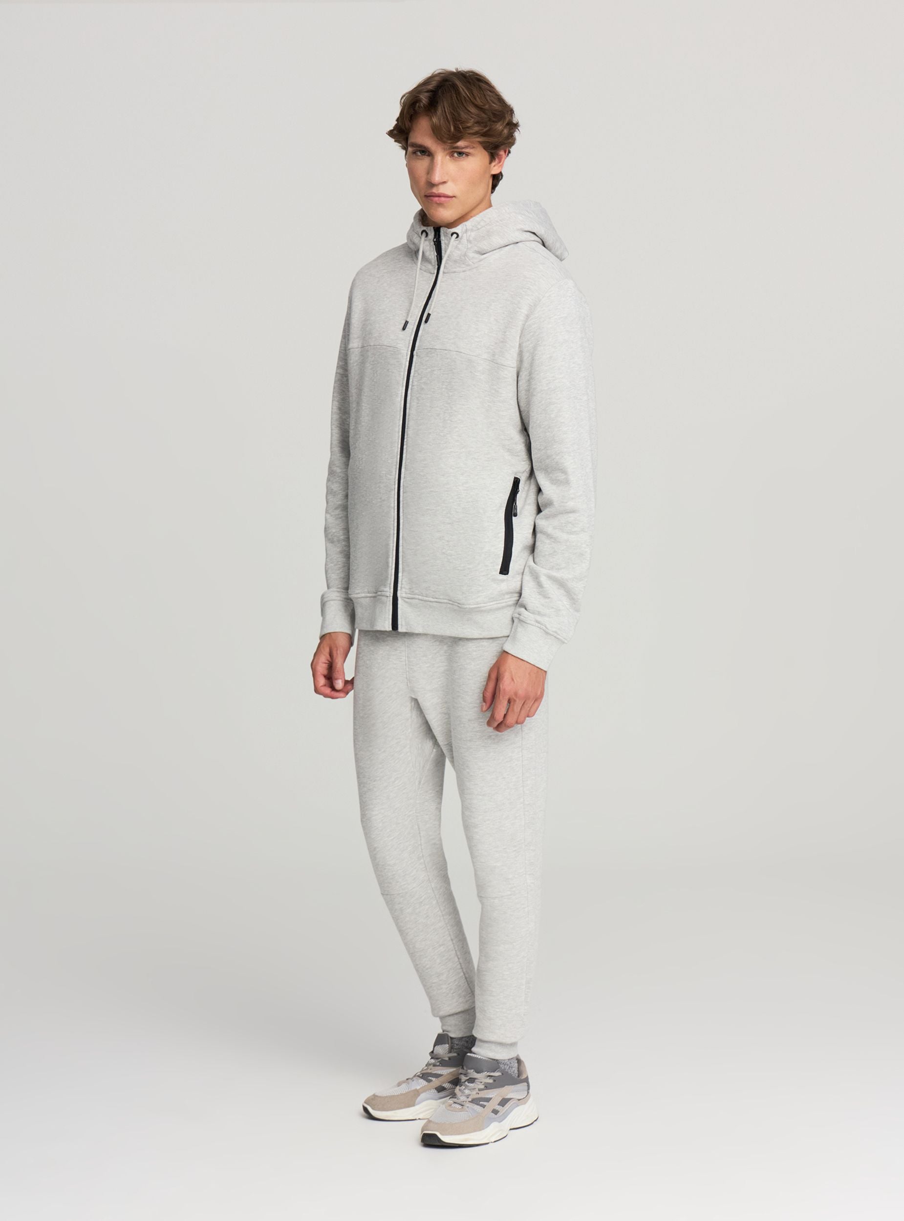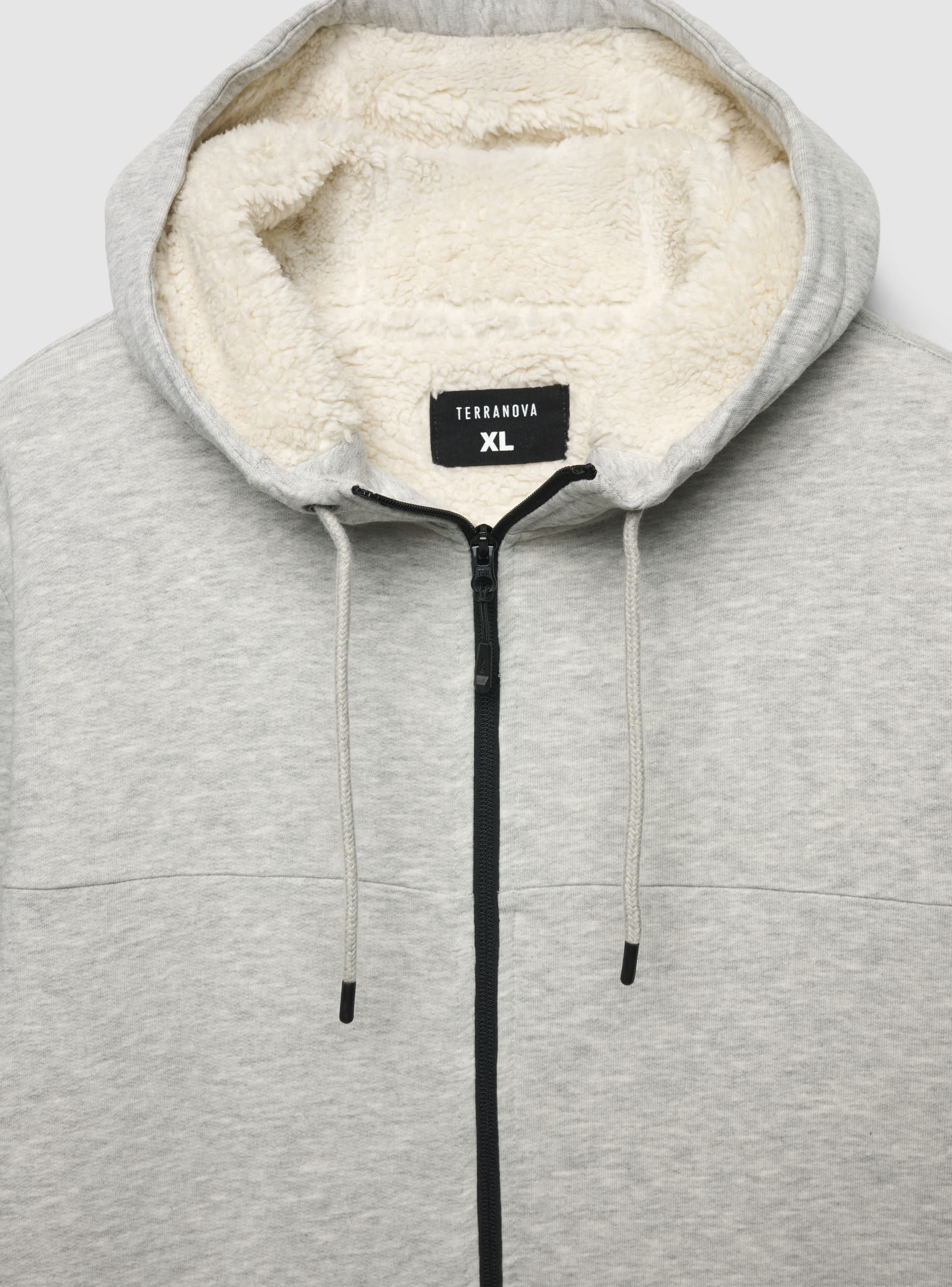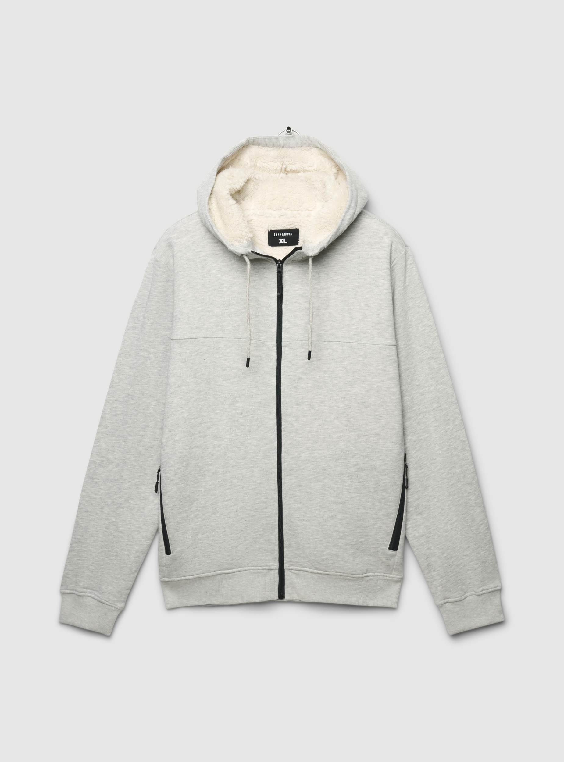 Pánska mikina s kapucňou, ideálna na chladné dni vďaka hrubému vnútornému materiálu z mäkkej tkaniny, ktorý zahreje a udrží teplo. Predné zapínanie na zips, manžety a spodok s rebrovaným lemom pre pohodlné nosenie. Bočné vrecká na zips. Jednofarebný dizajn, perfektný k džínsom a teniskám na voľný čas alebo k teplákom pre ležérny vzhľad.Detaily