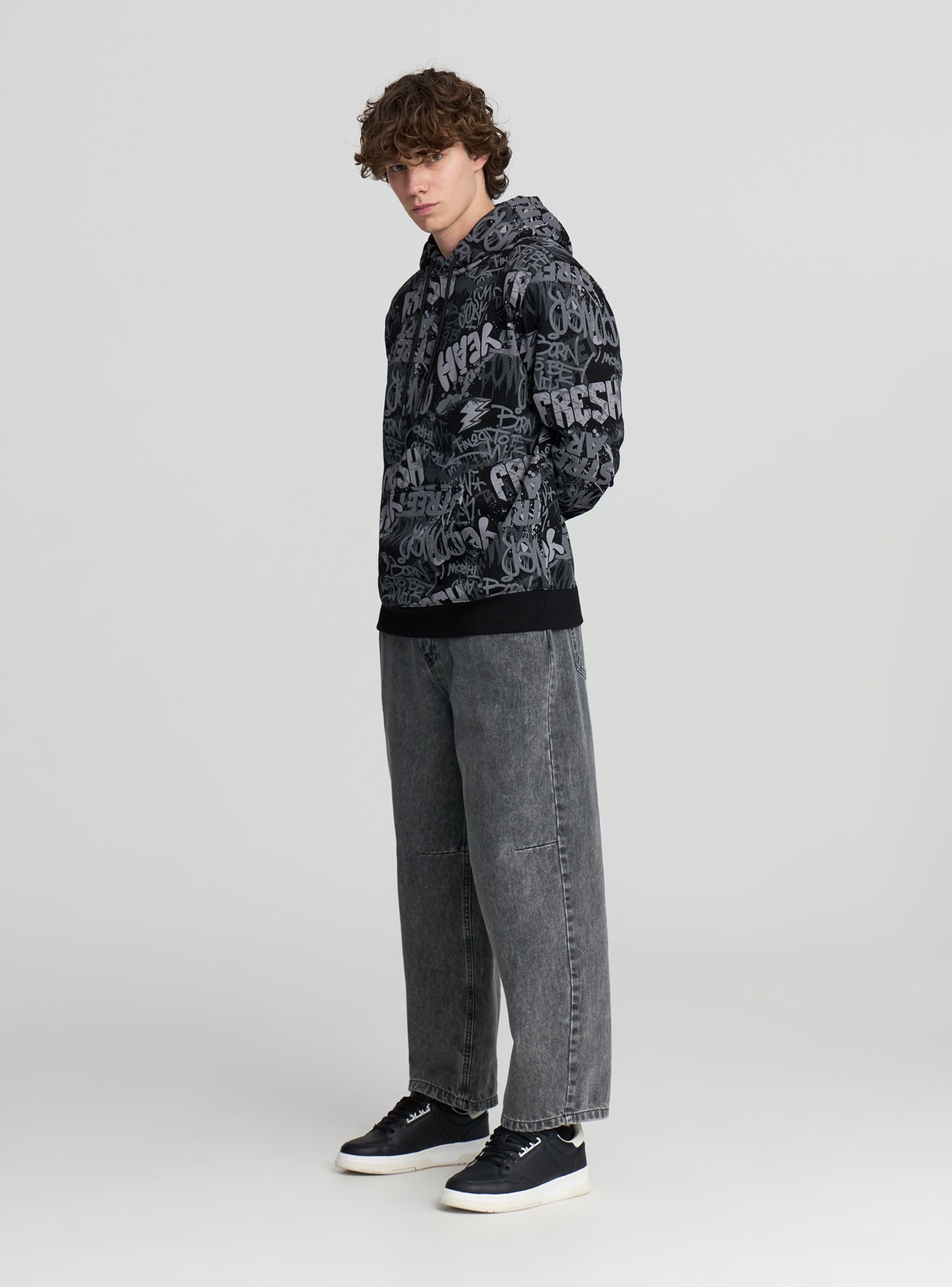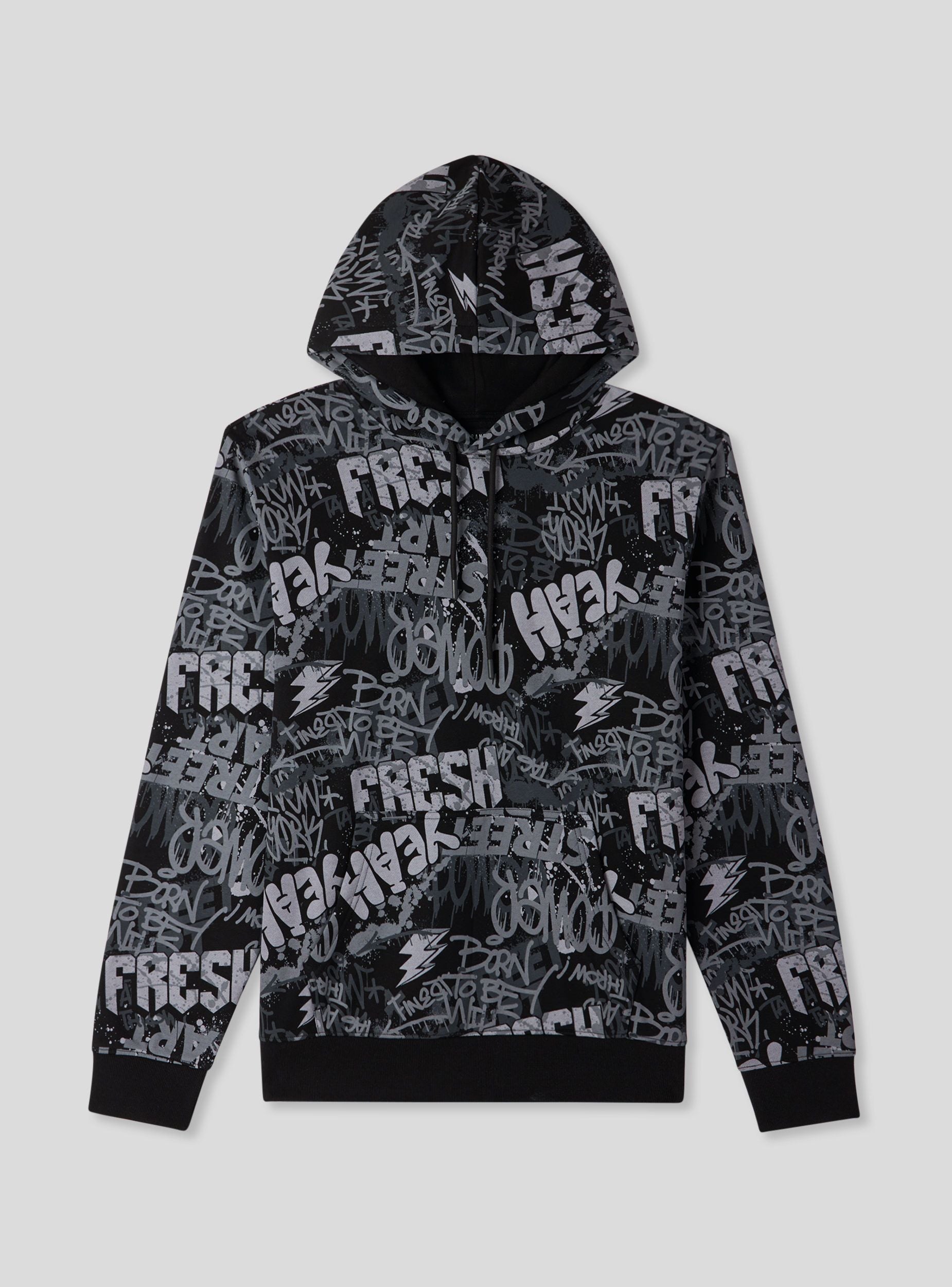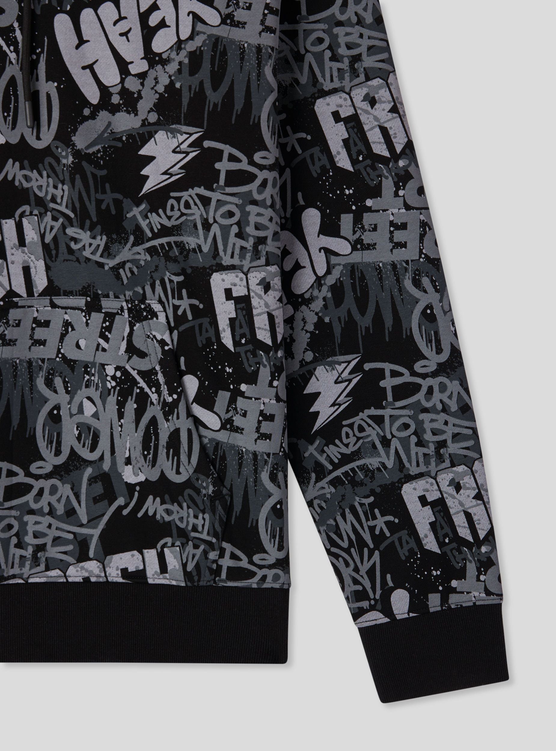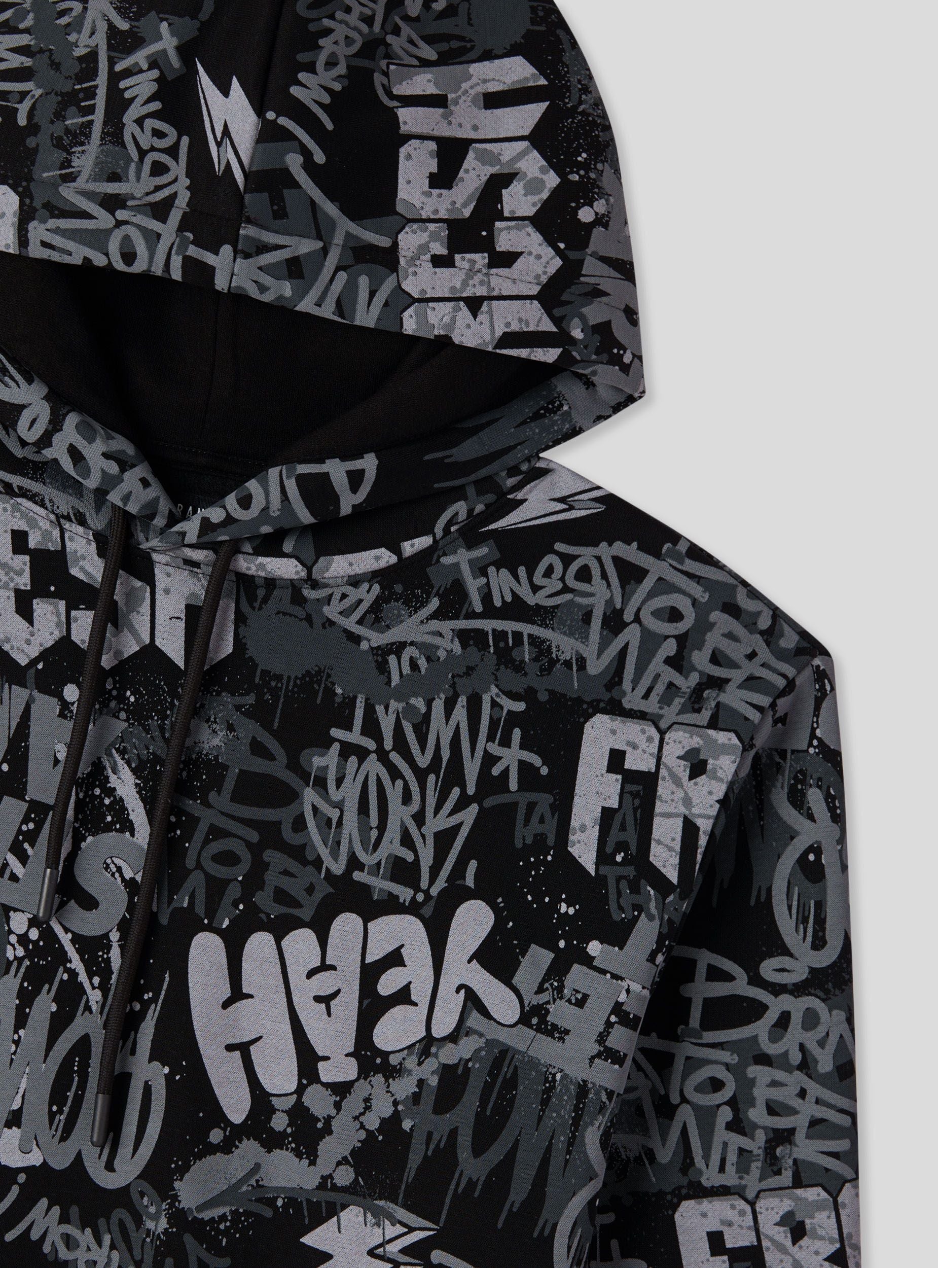 Mikina s kapucňou a celoplošnou graffiti potlačou