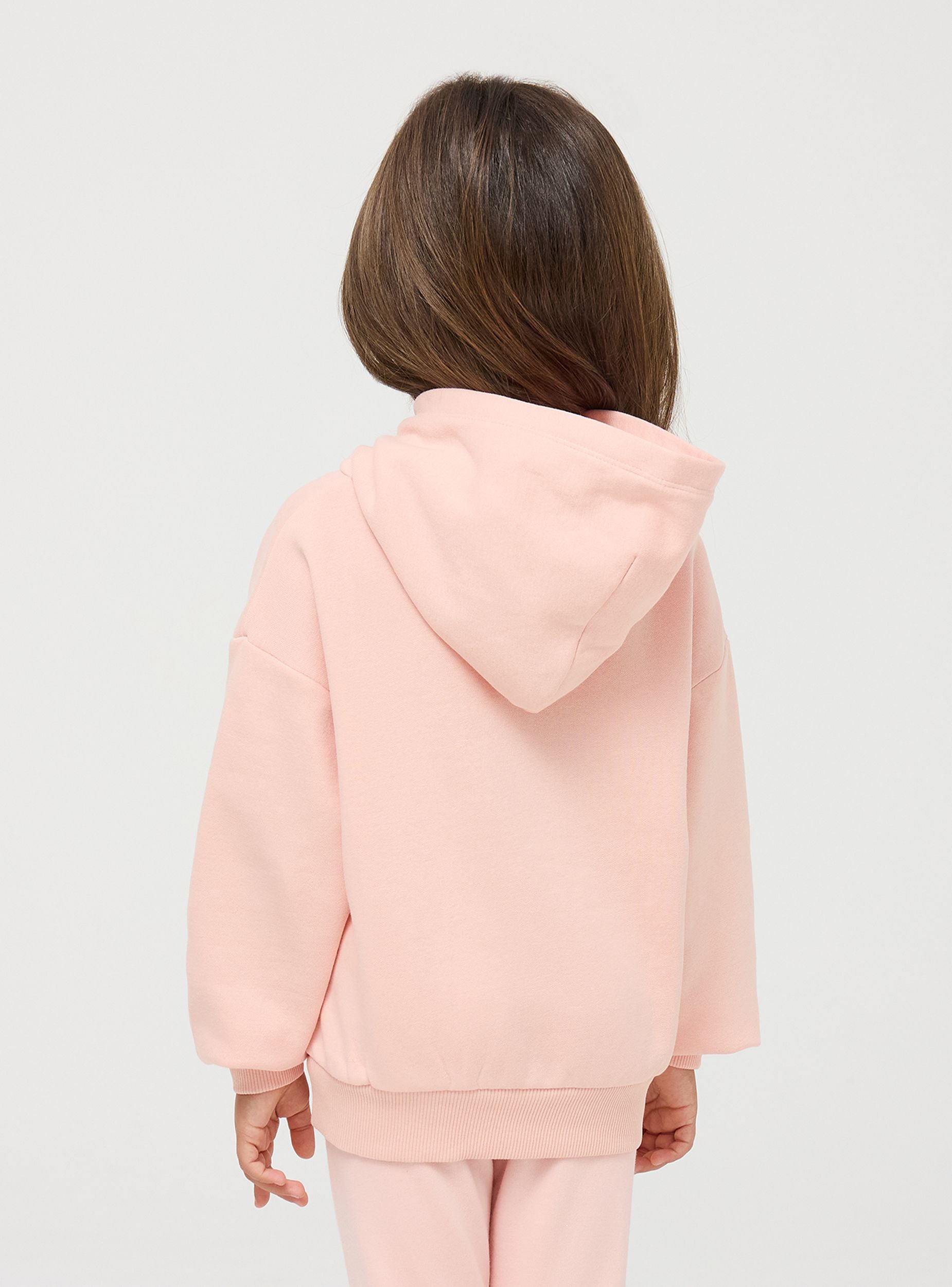Mikina pre dievčatá s kapucňou, z ťažkej tkaniny v jednofarebnom prevedení s prednou potlačou troch roztomilých mačiatok a nápisov. Perfektná na ležérny a hravý vzhľad. Regular fit.