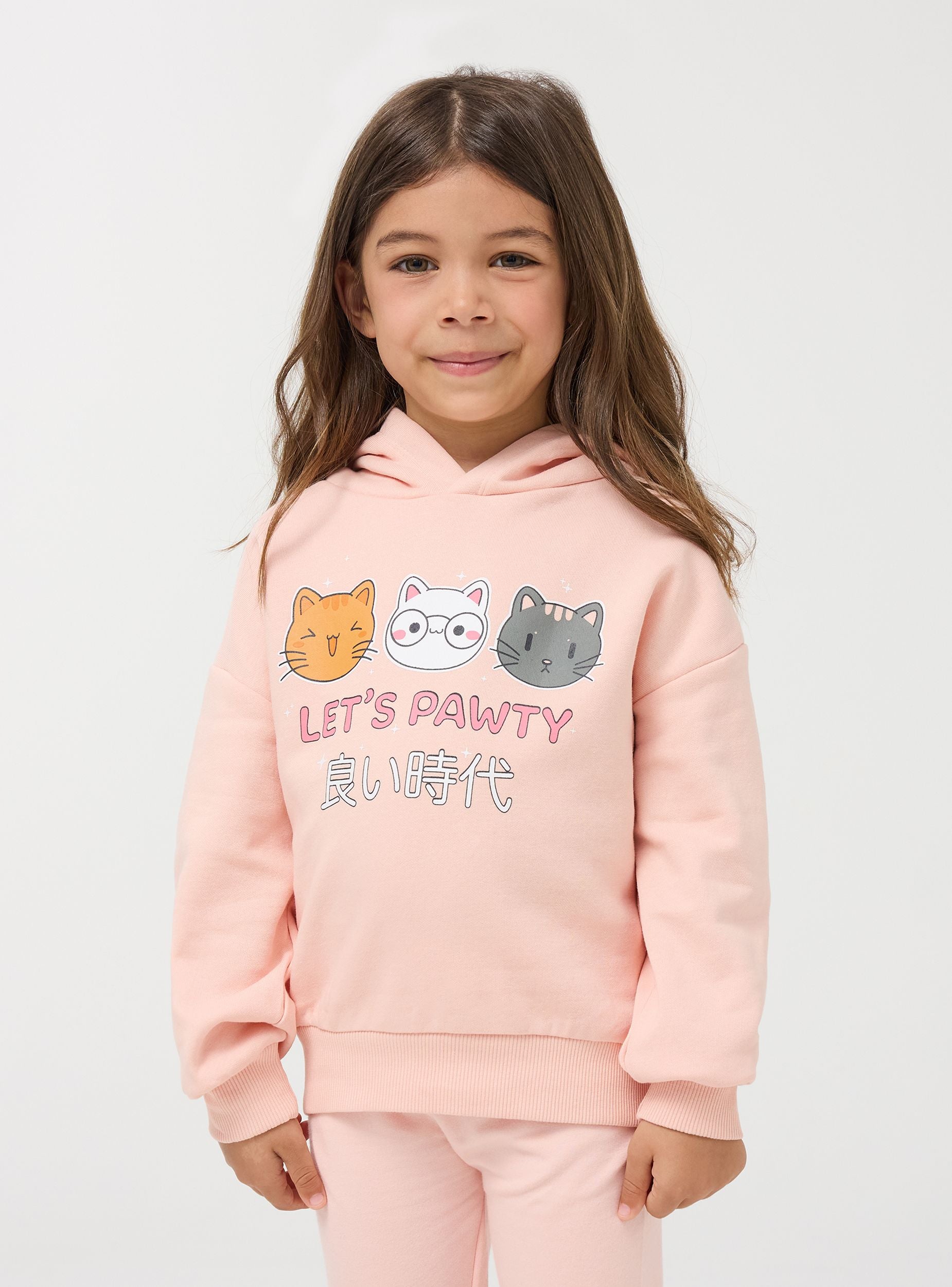 Mikina s kapucňou vysokej gramáže s potlačou mačičky