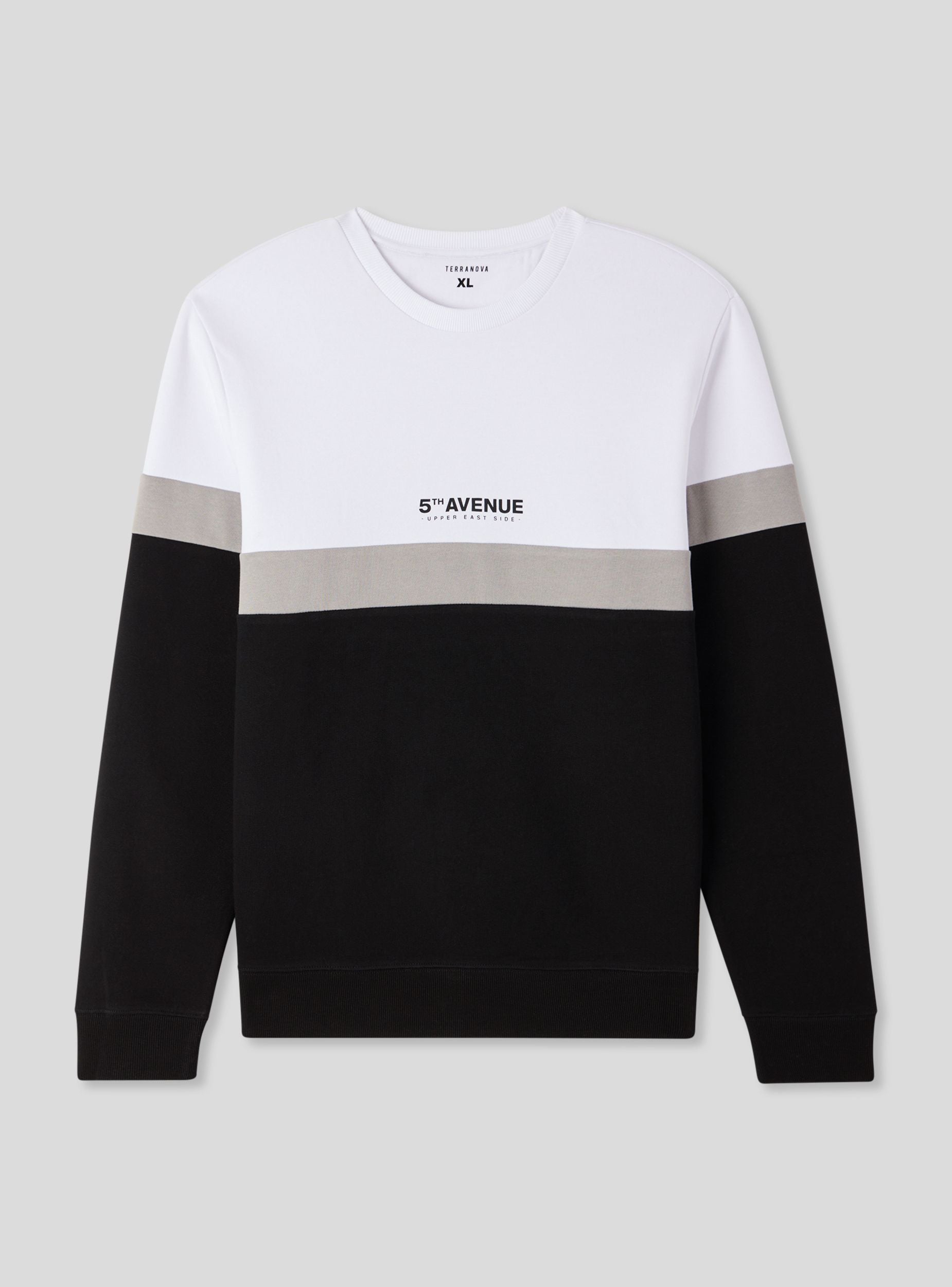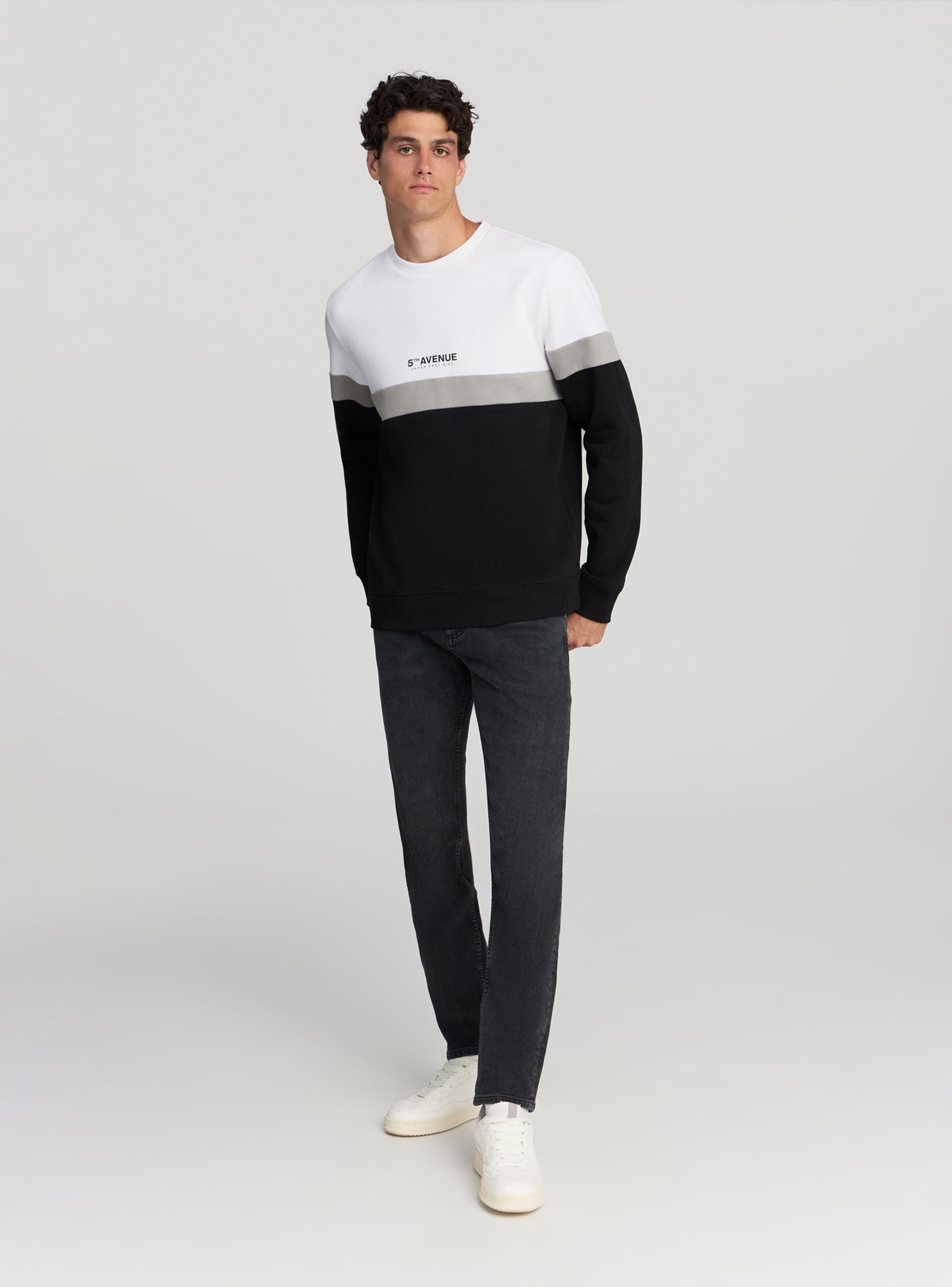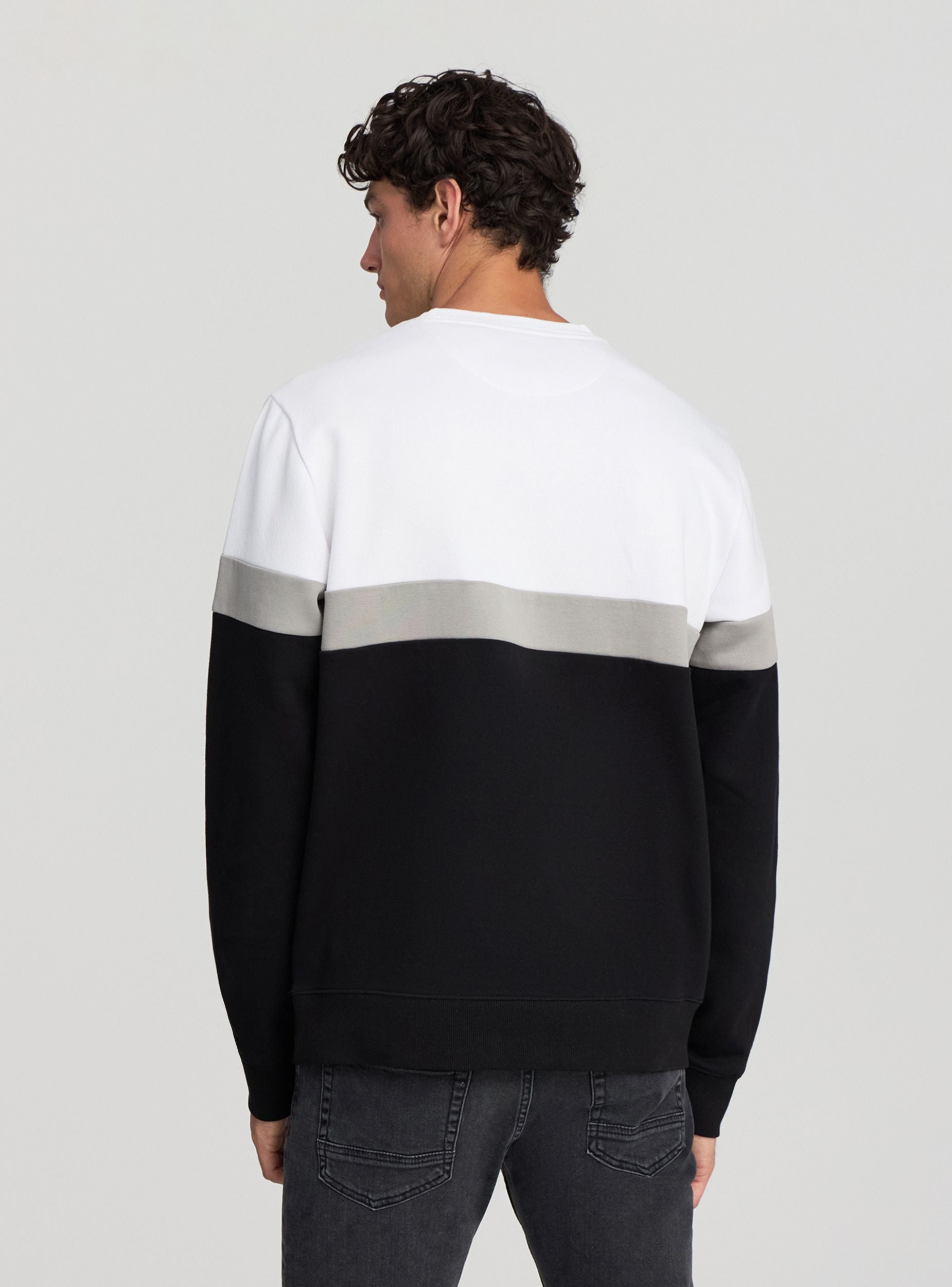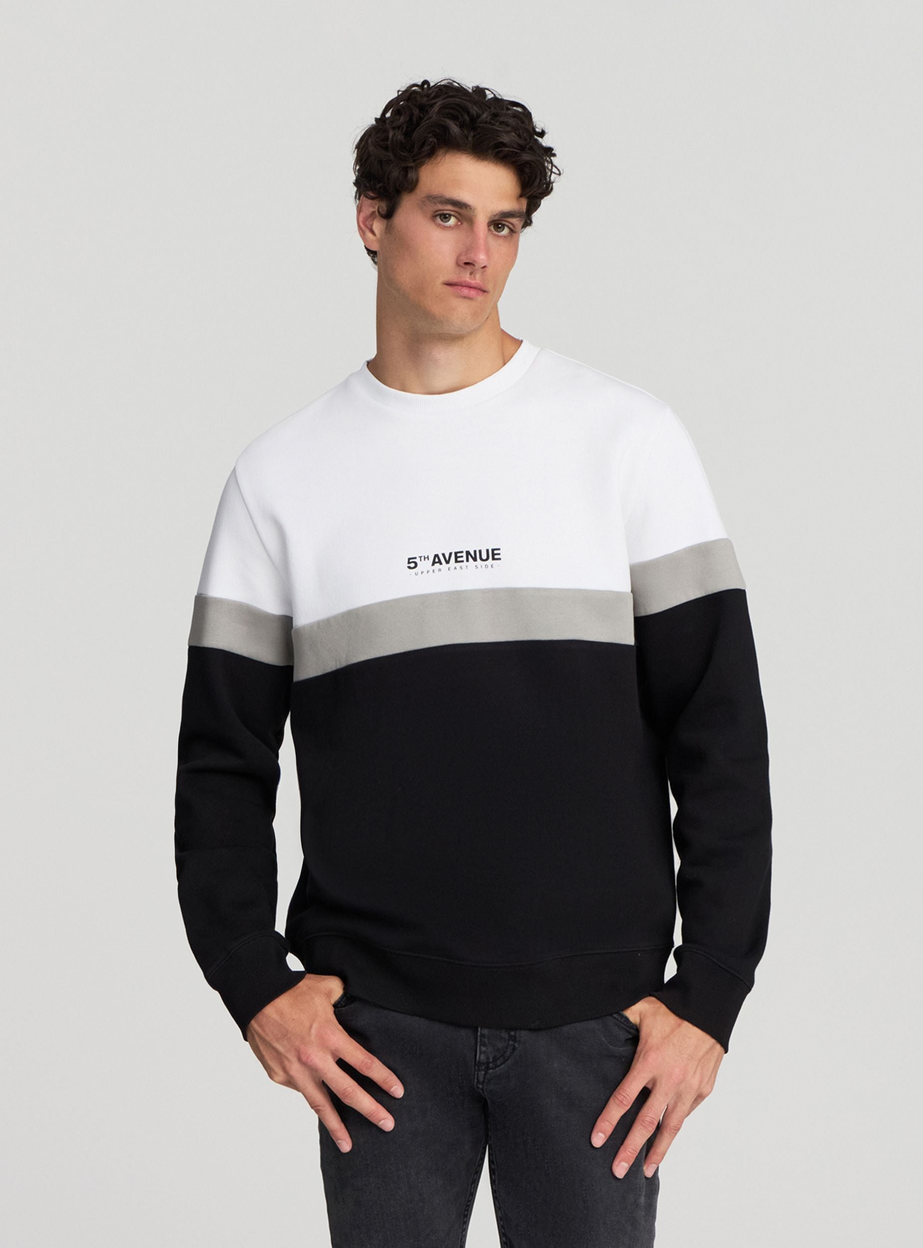 Pánska ťažká mikina ideálna pre ležérny a všestranný vzhľad, perfektná na voľný čas alebo na doplnenie mestských outfitov. Má regular strih, okrúhly výstrih bez kapucne, bez zipsu a dlhé rukávy. Dizajn je charakterizovaný kontrastnými farebnými blokmi a potlačou s nápisom na prednej strane. Rukávy a spodný lem sú zakončené ribovaním pre väčšie pohodlie a zadržiavanie.Detaily