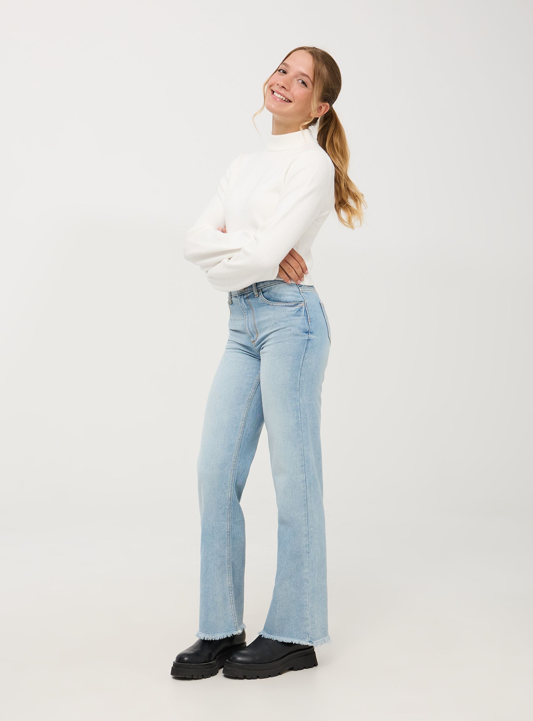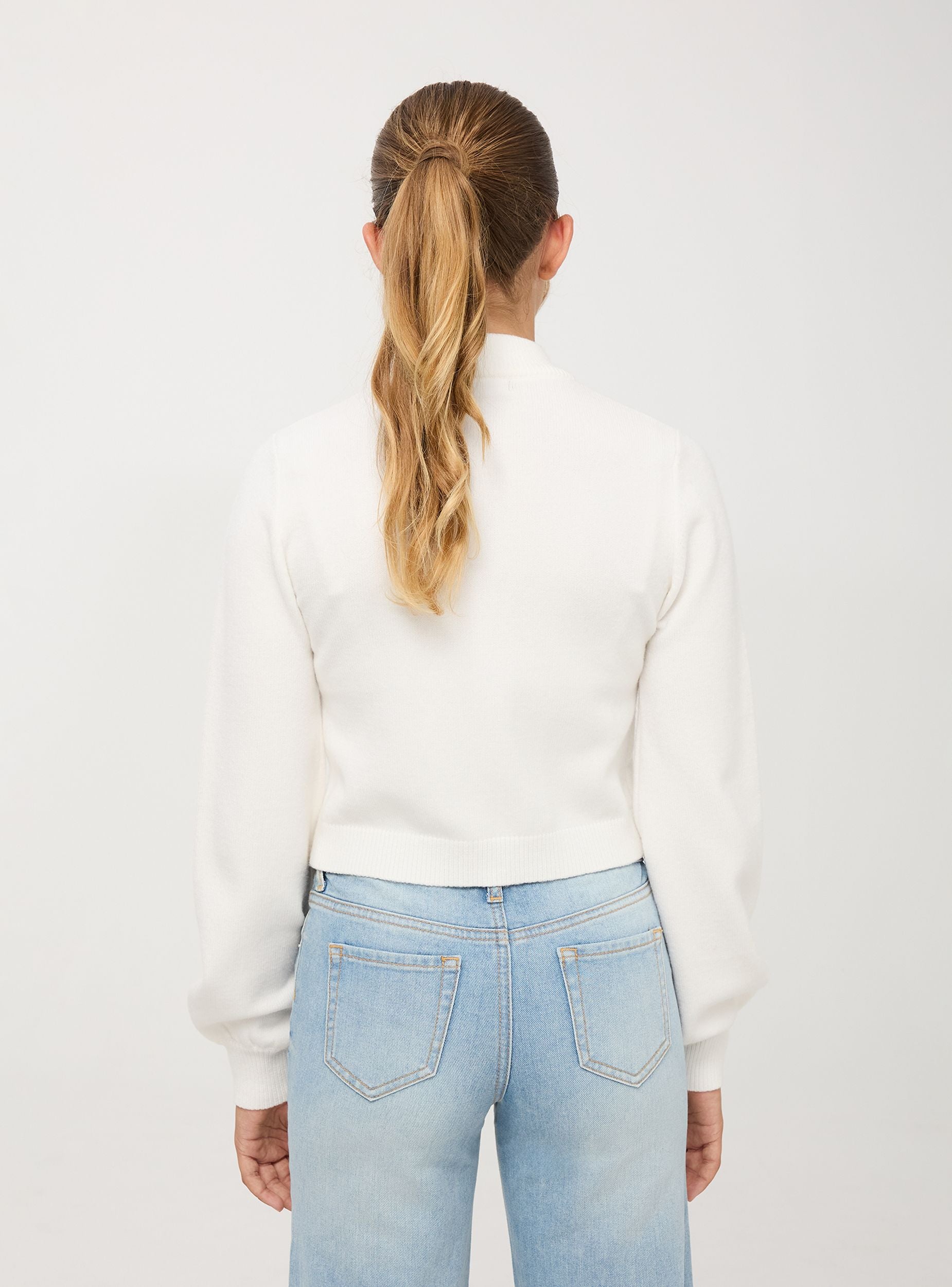 Dievčenský sveter s vysokým golierom a dlhými rukávmi. Jednofarebná tkanina je mäkká a pohodlná. Tento základný kúsok je nevyhnutnosťou v šatníku každej dievčiny. Perfektné na každú príležitosť, od osláv po rodinné výlety, a na ležérne chic look do školy. Ľahko sa kombinuje so sukňami alebo nohavicami, ponúkajúci všestrannosť a štýl.Detaily