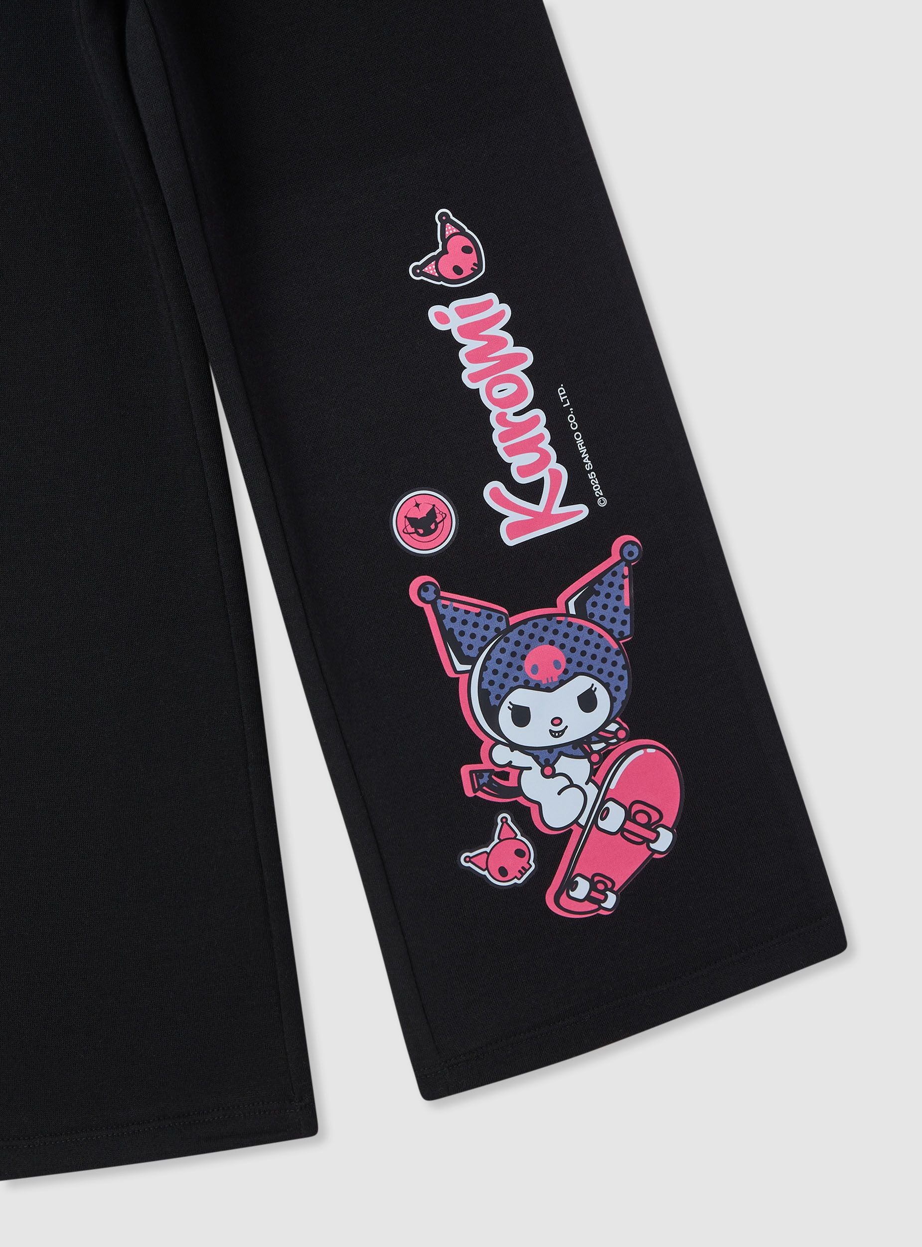 Dievčenské športové nohavice so širokými nohavicami a rovnými lemy. Pás so sťahovacou šnúrkou pre pohodlné nosenie počas voľného času a športu. Bočné šikmé vrecká. Potlač s Kuromi® a nápis, ktorý pridáva zábavný dotyk. Ľahko sa kombinujú s mikinami a teniskami pre ležérny vzhľad.