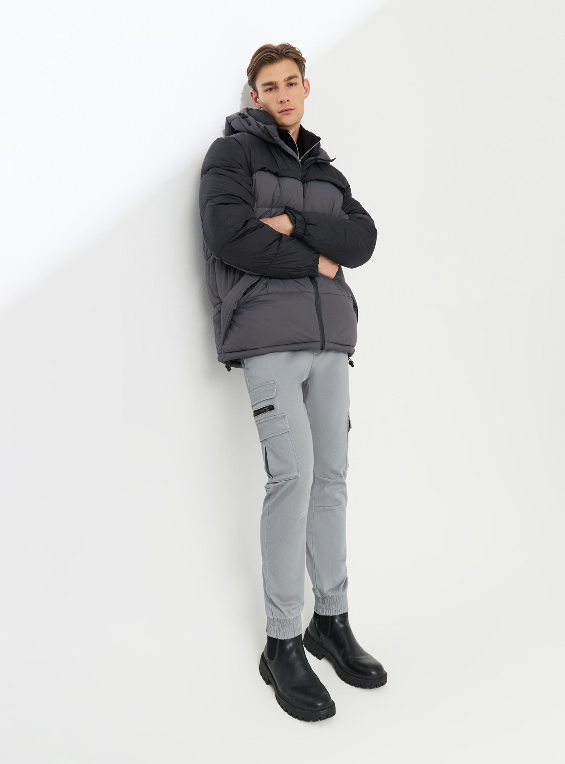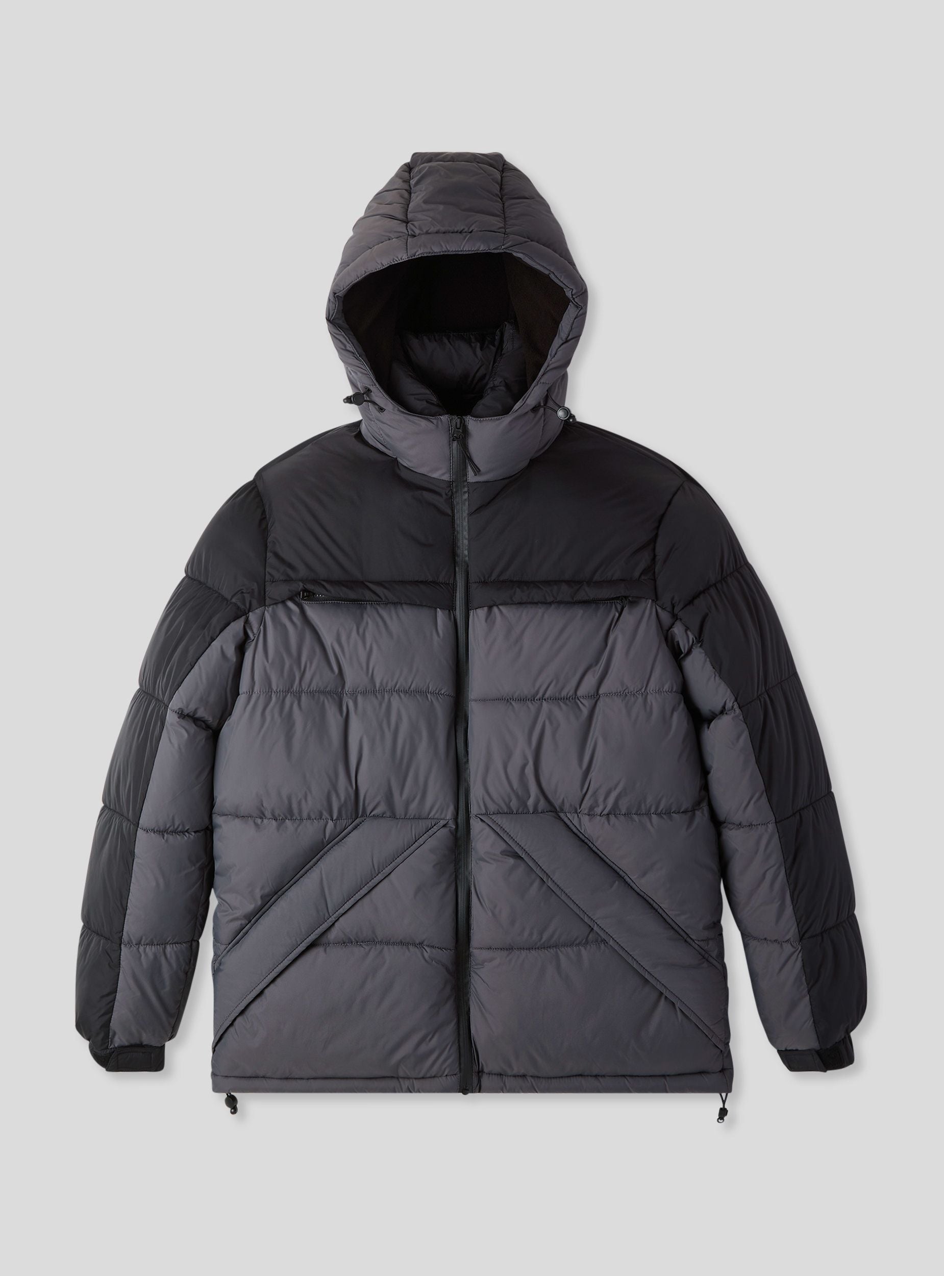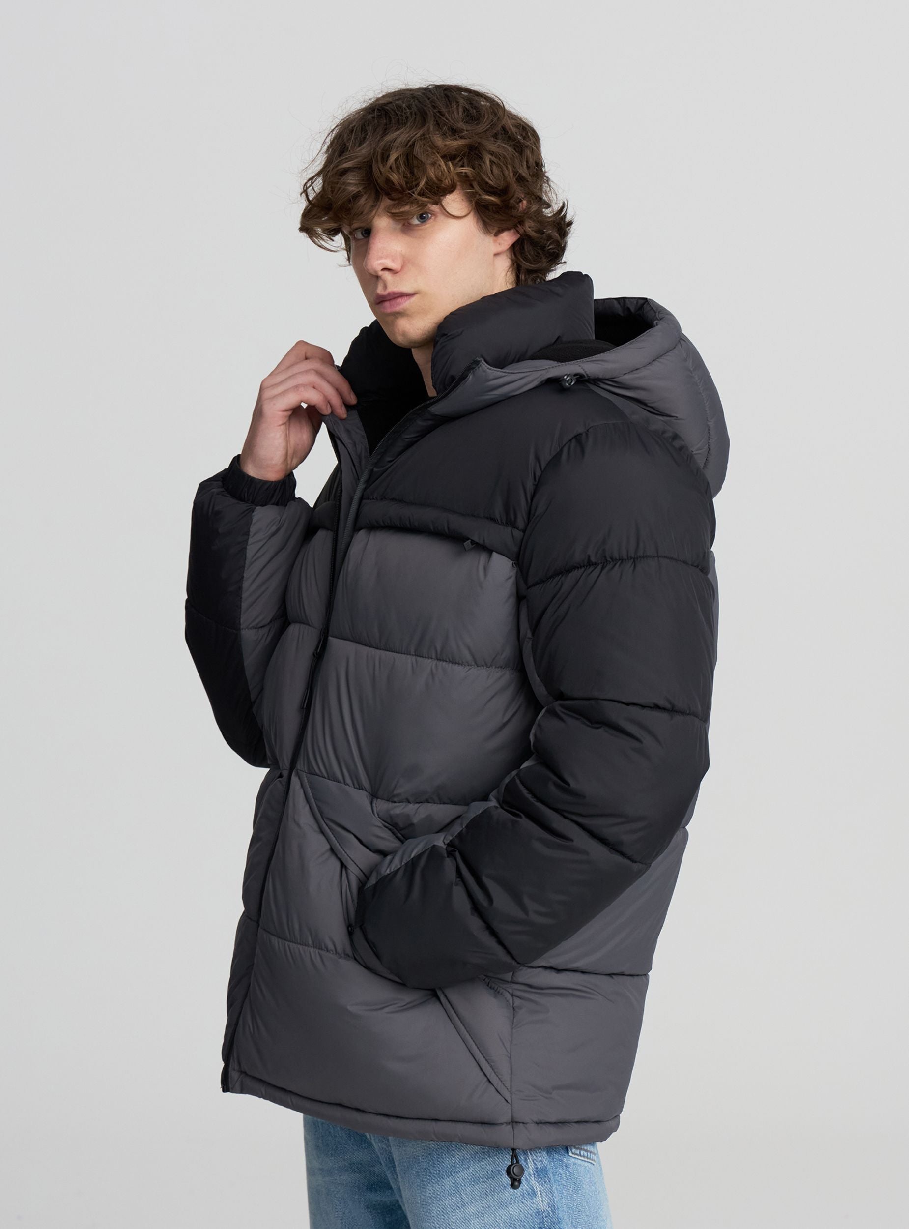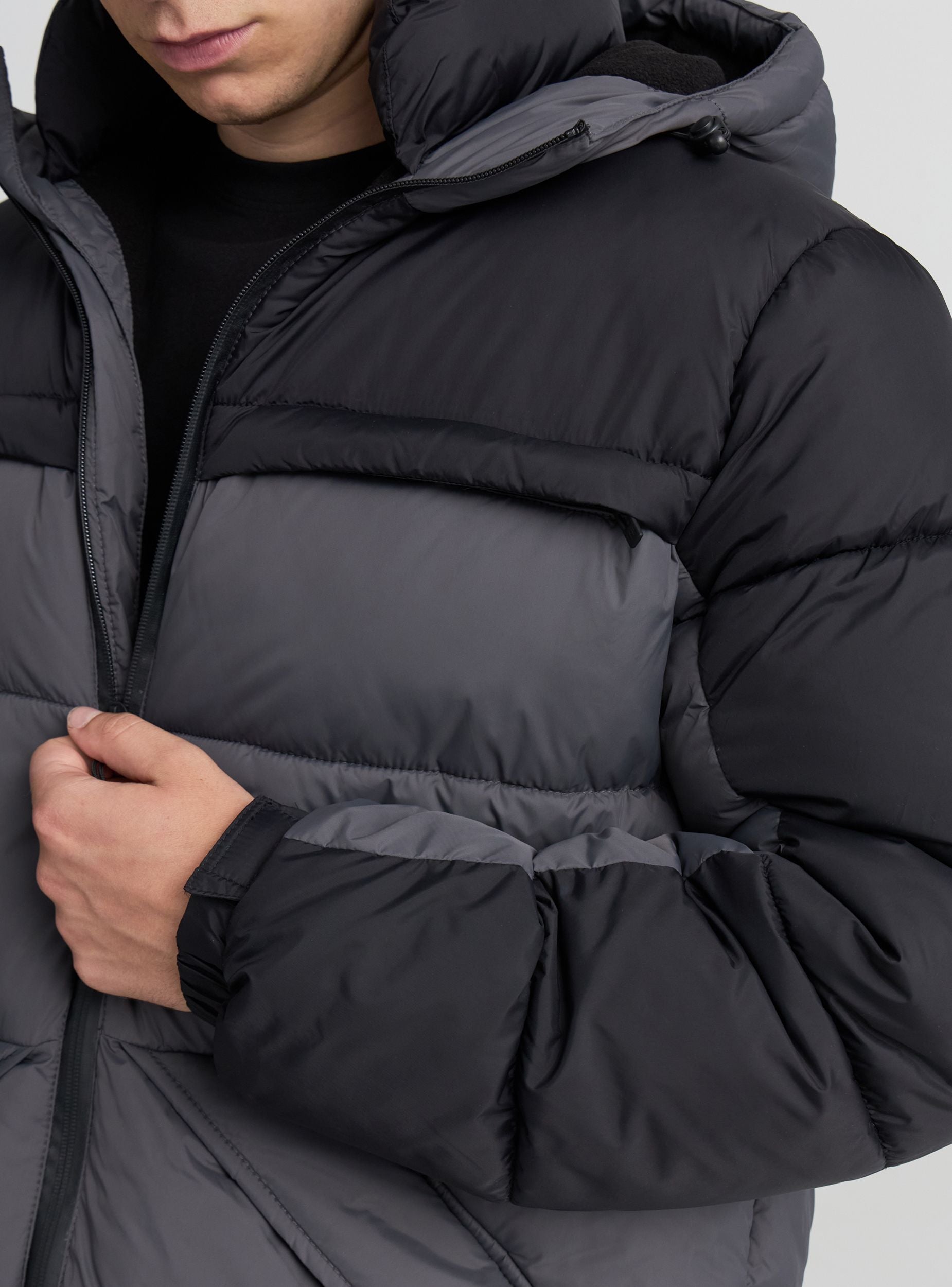 Pánsky prešívaný kabát ideálny na zvládanie chladnejších dní so štýlom. Dizajn obsahuje farebný blokový vzor a pohodlný strih, ideálny na nosenie cez svetre alebo mikiny. Vybavený nastaviteľnou kapucňou, odolným vodoodolným zipsom, náprsné vrecká so zipsom a šikmé bočné vrecká so skrytými patentnými gombíkmi, nastaviteľné manžety, stoper na spodnej časti a vnútorné vrecko so suchým zipsom, ponúka ochranu a funkčnosť. Nastaviteľné manžety. Vhodný ako do mesta, tak aj na voľný čas.Detaily